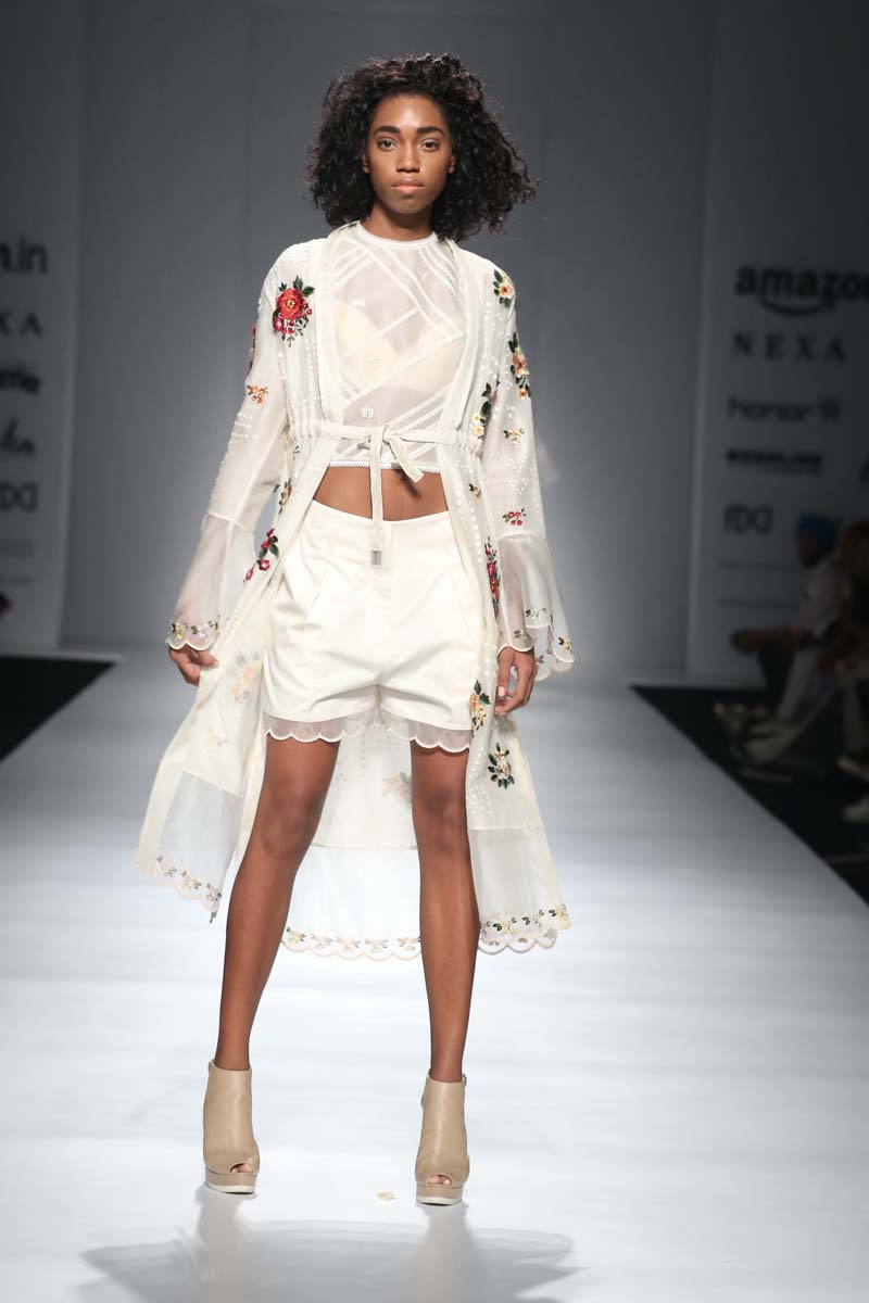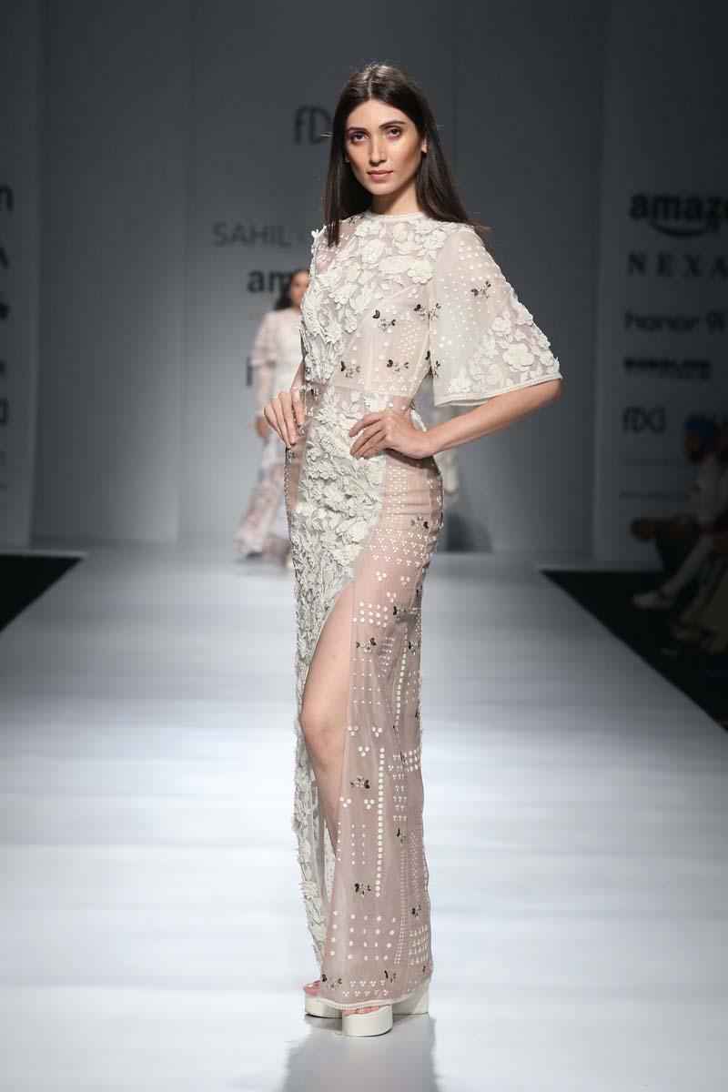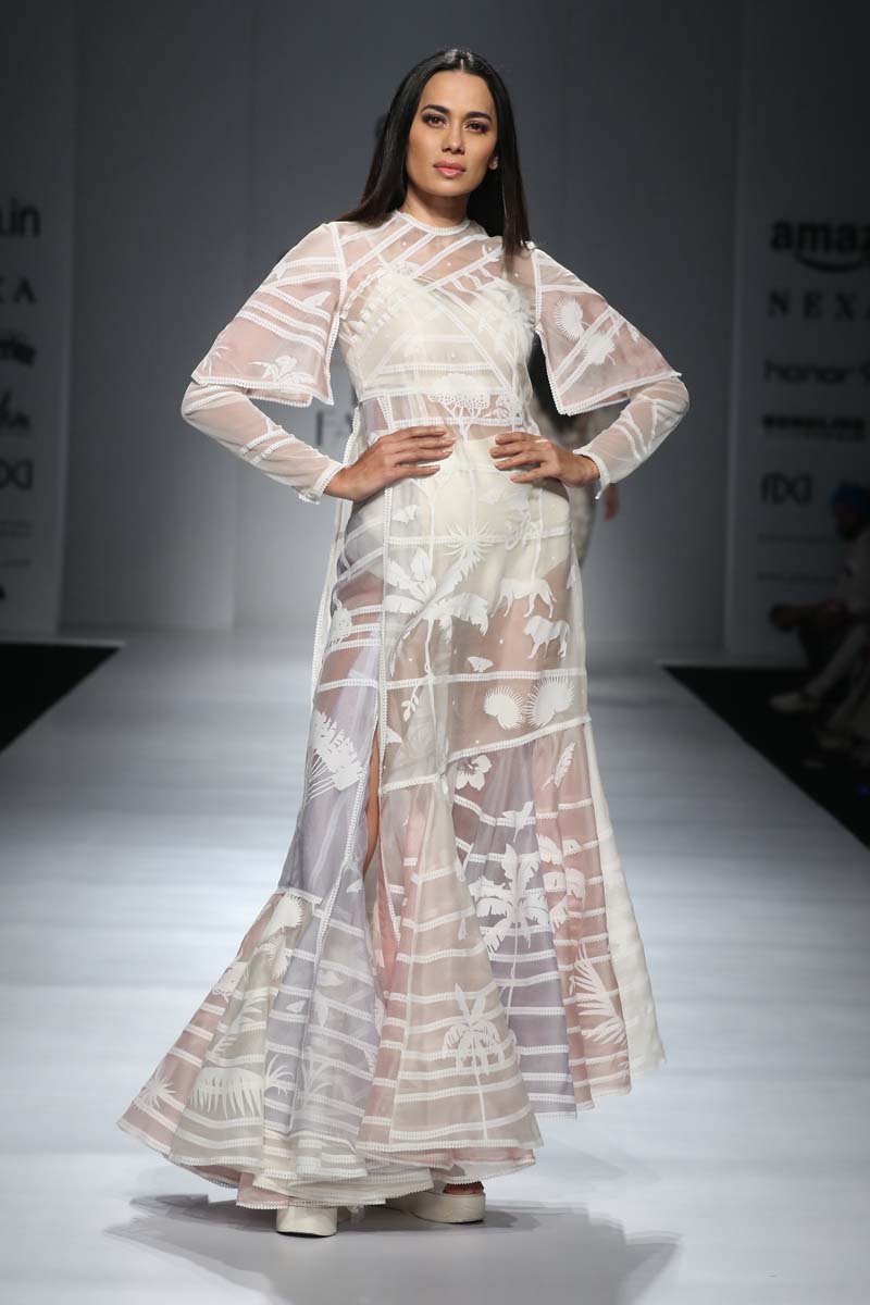 nSahil Kochhars Spring/Summer 2018 collection is an ethereal rendition of the tropical jungles of India, juxtaposed with 3d floral appliqué and colorful Silk Floss embroidery.