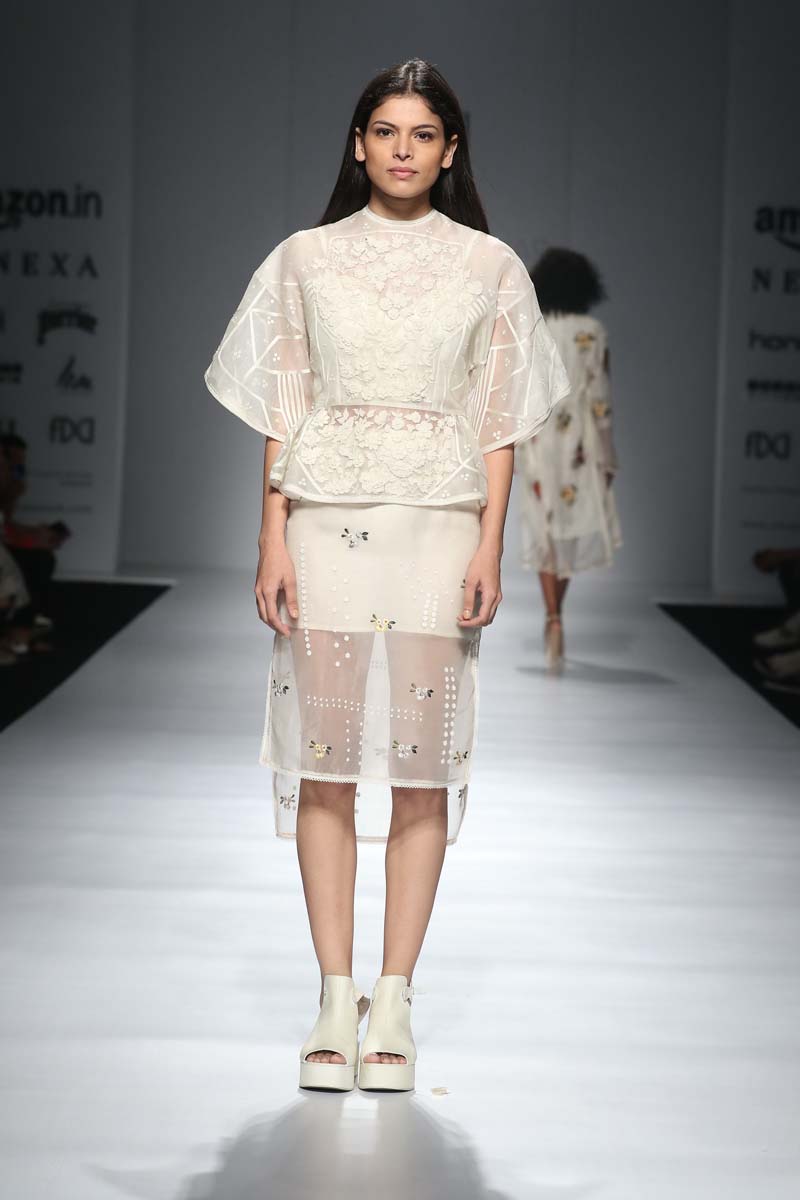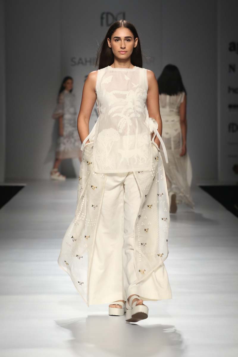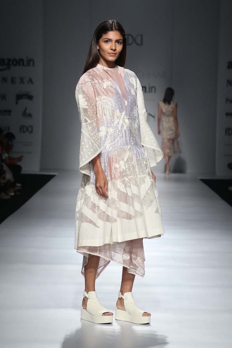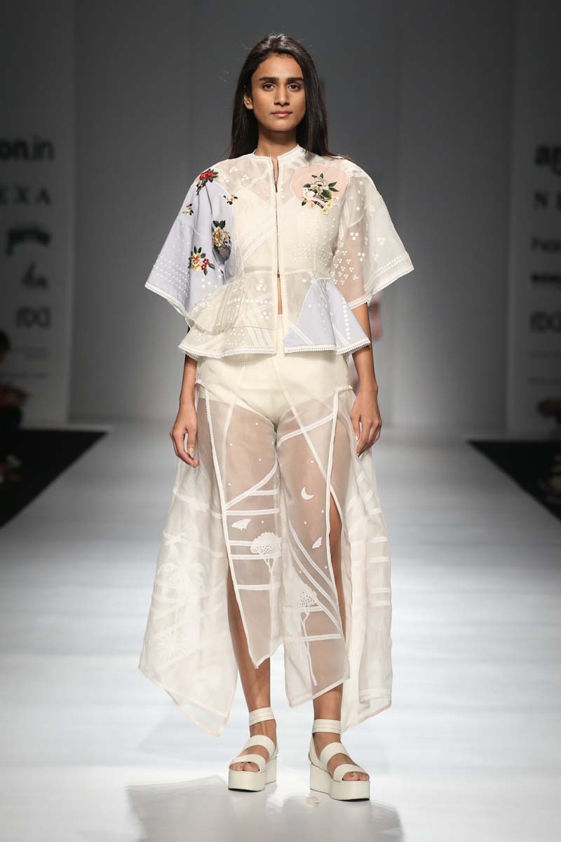nSahil Kochhars Spring/Summer 2018 collection is an ethereal rendition of the tropical jungles of India, juxtaposed with 3d floral appliqué and colorful Silk Floss embroidery.