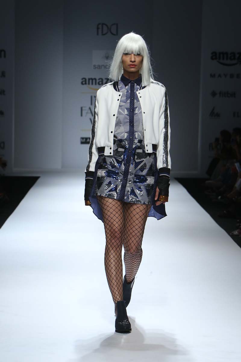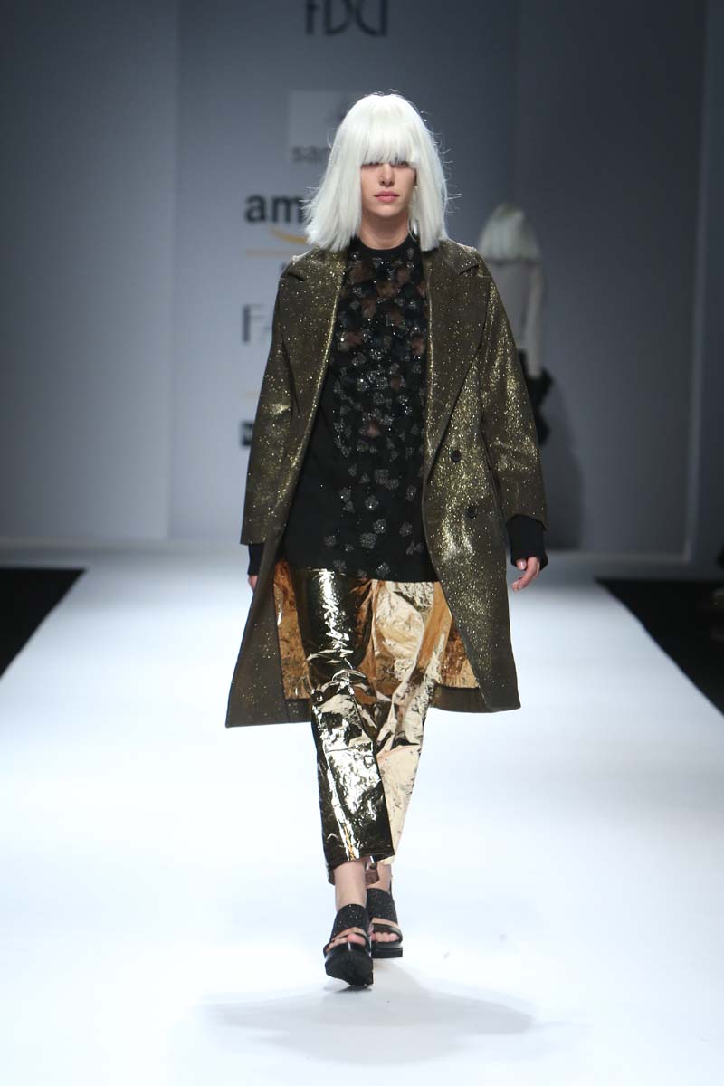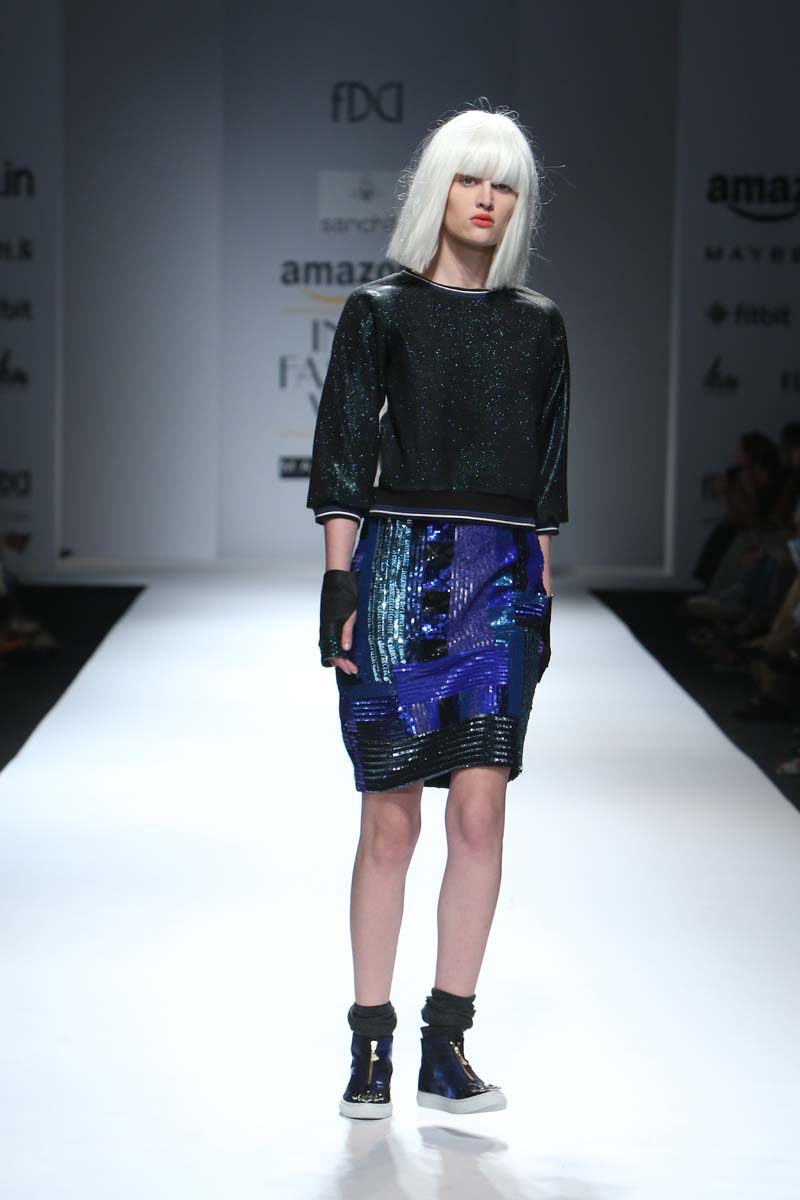 A mélange of the Memphis art movement and the Milky Way, Sanchita creates a collection in her inimitable signature that plays with the boundaries of gender and combines feminine nuances with strong and courageous undertones. A smattering of athleisure, intricate embellishment and decadence complete a chic yet edgy aesthetic.