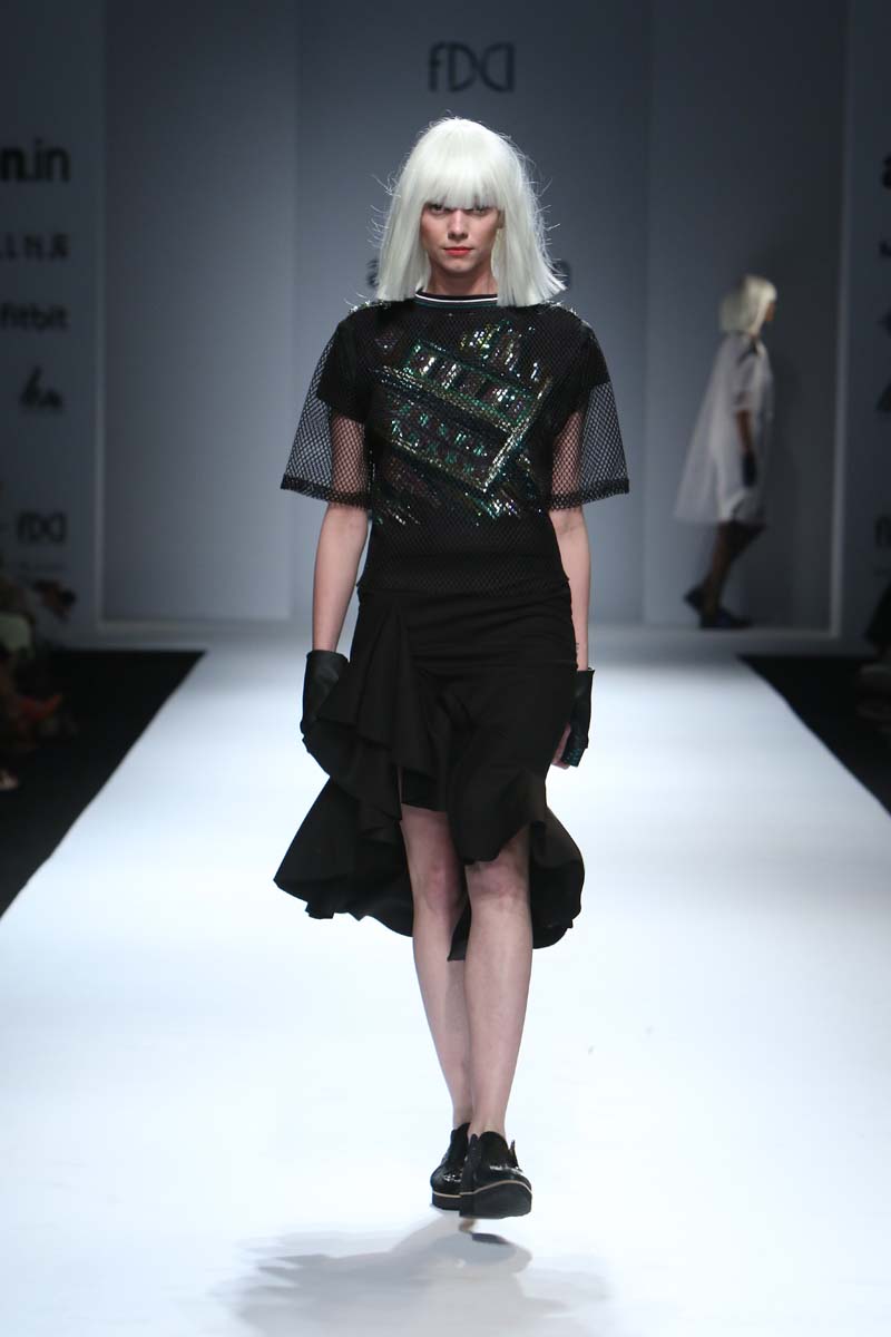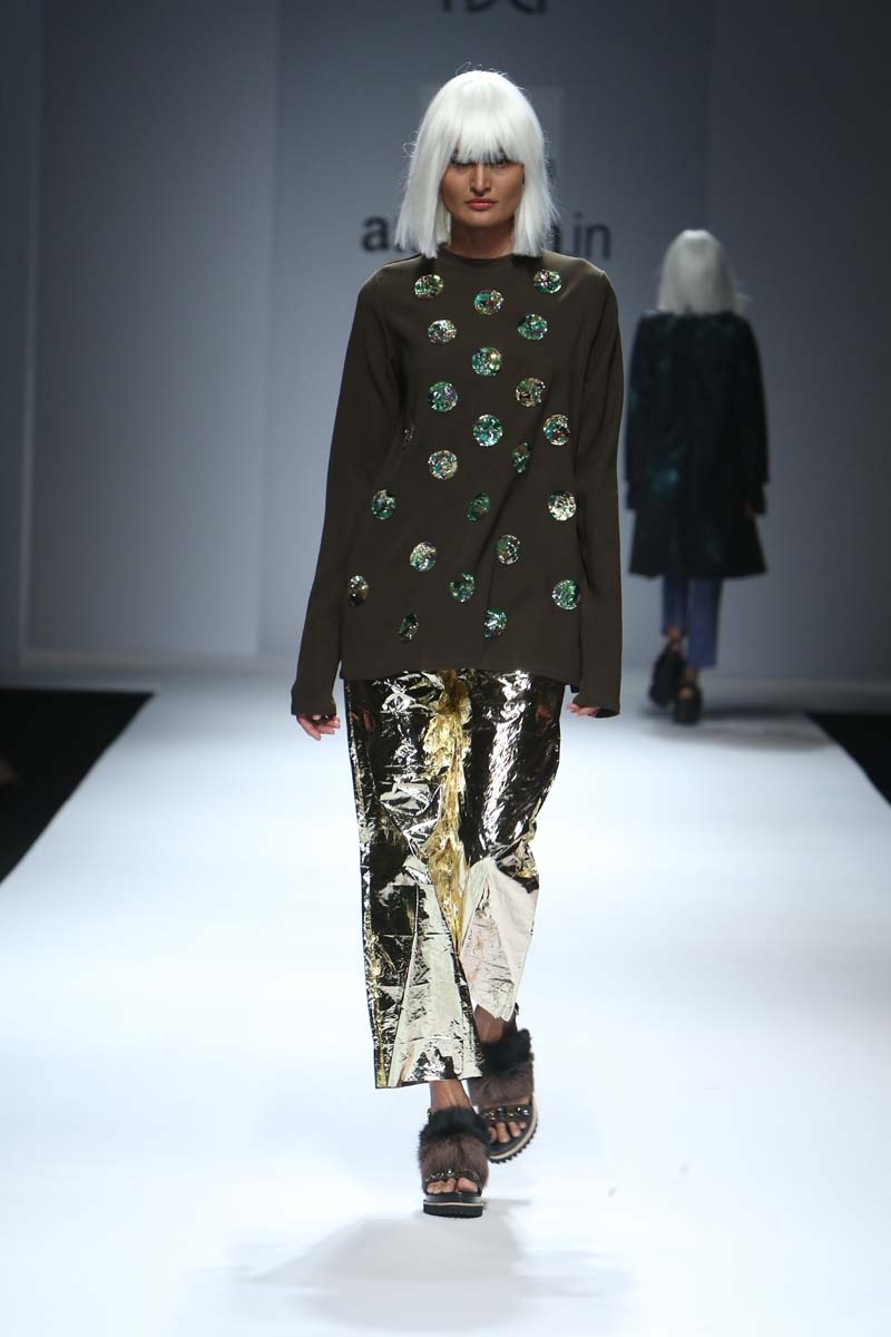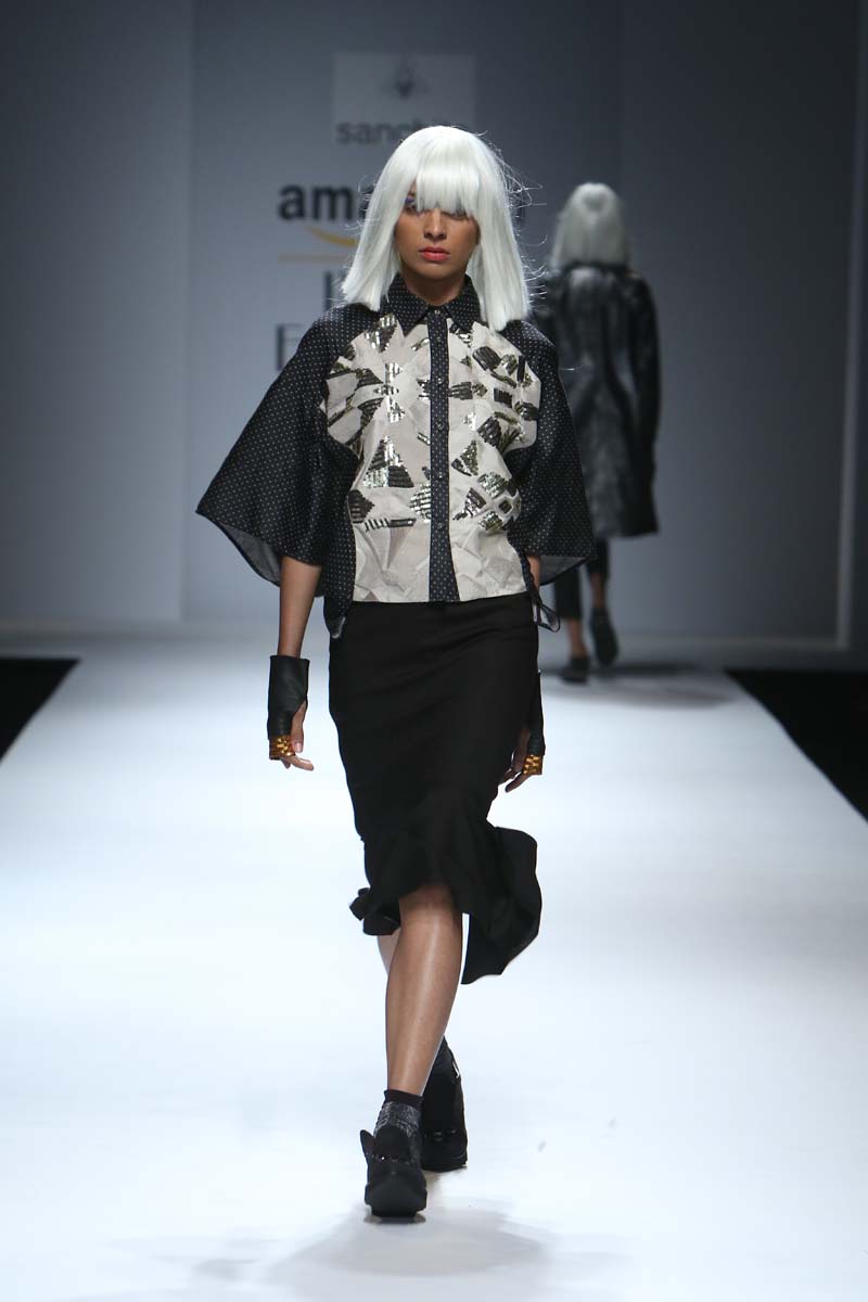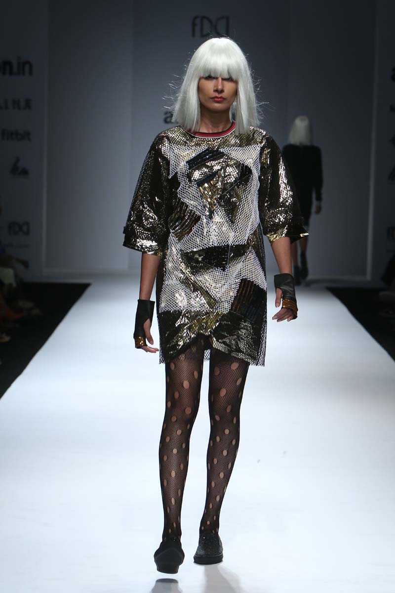 A mélange of the Memphis art movement and the Milky Way, Sanchita creates a collection in her inimitable signature that plays with the boundaries of gender and combines feminine nuances with strong and courageous undertones. A smattering of athleisure, intricate embellishment and decadence complete a chic yet edgy aesthetic.