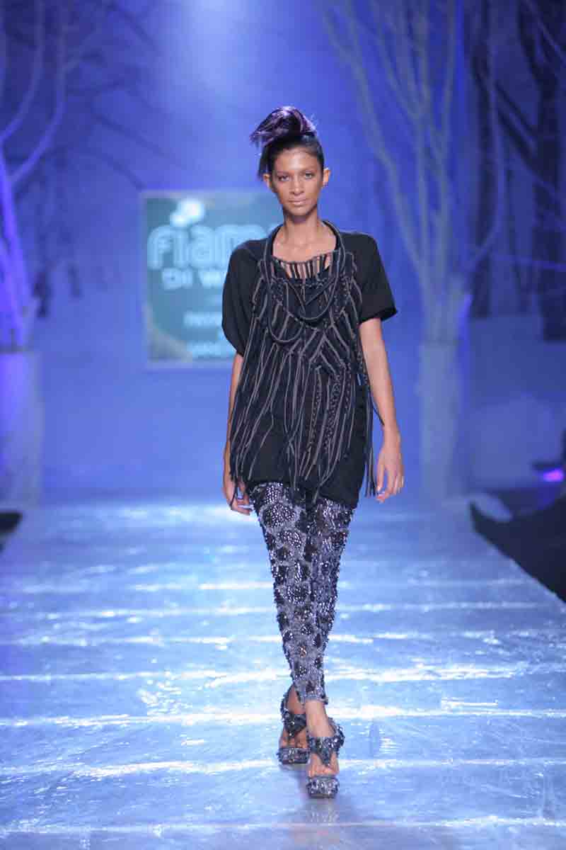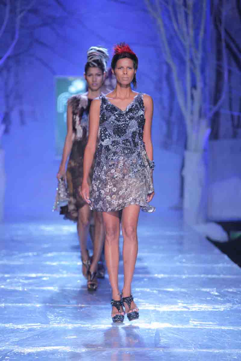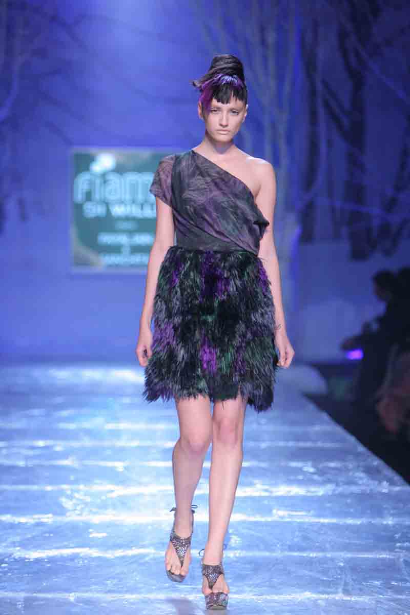 A dimensional play of cuts, layers, textural expressions andnkinetic elements creates avant-garde forms and modular piecesnof infinite perspectives. Clothes that deepen the bond betweennart and fashion in a mix of utilitarian detail and hi-tech artsnand crafts with a focus on body shape. Ovoid and trapeze formsnare the canvas for a subversive commentary interspersed withnJapanese influences and colours, kirigami, degrade and meshnembroideries, printed chiffon, fur and chiffon-covered foil printsnthat translate into a unique urban vibe.