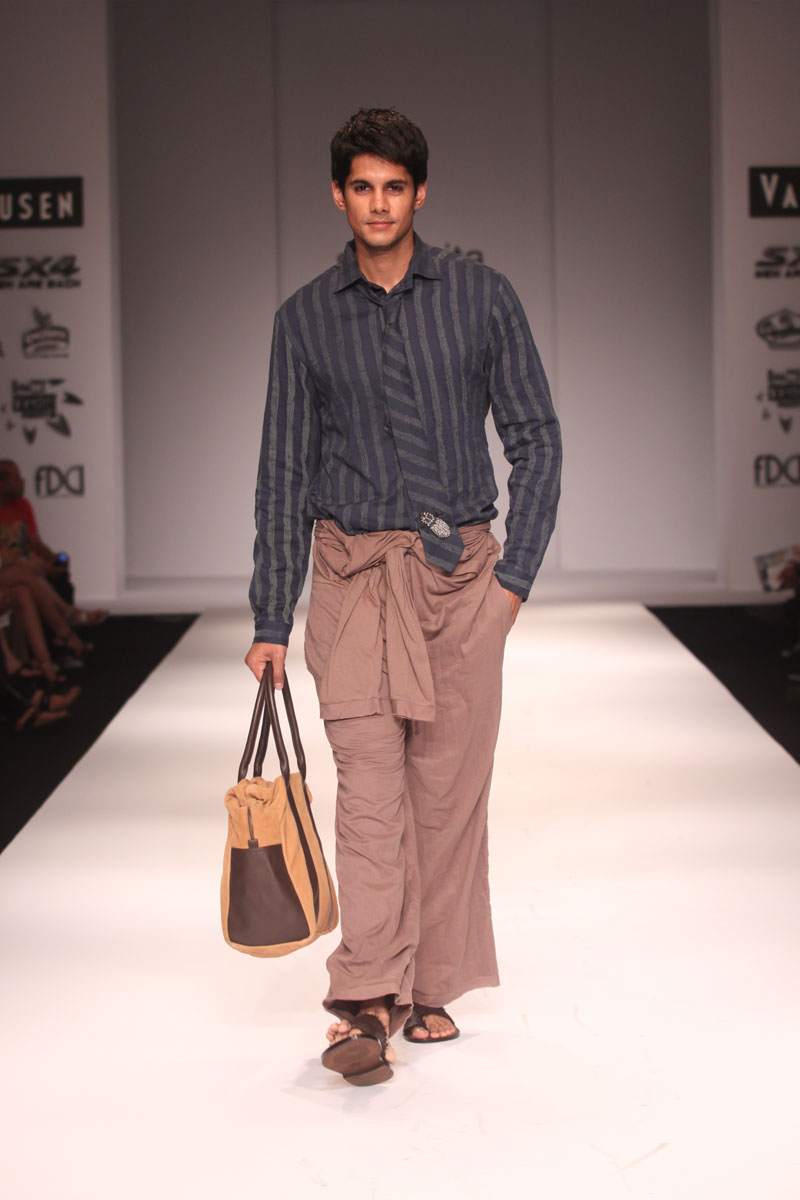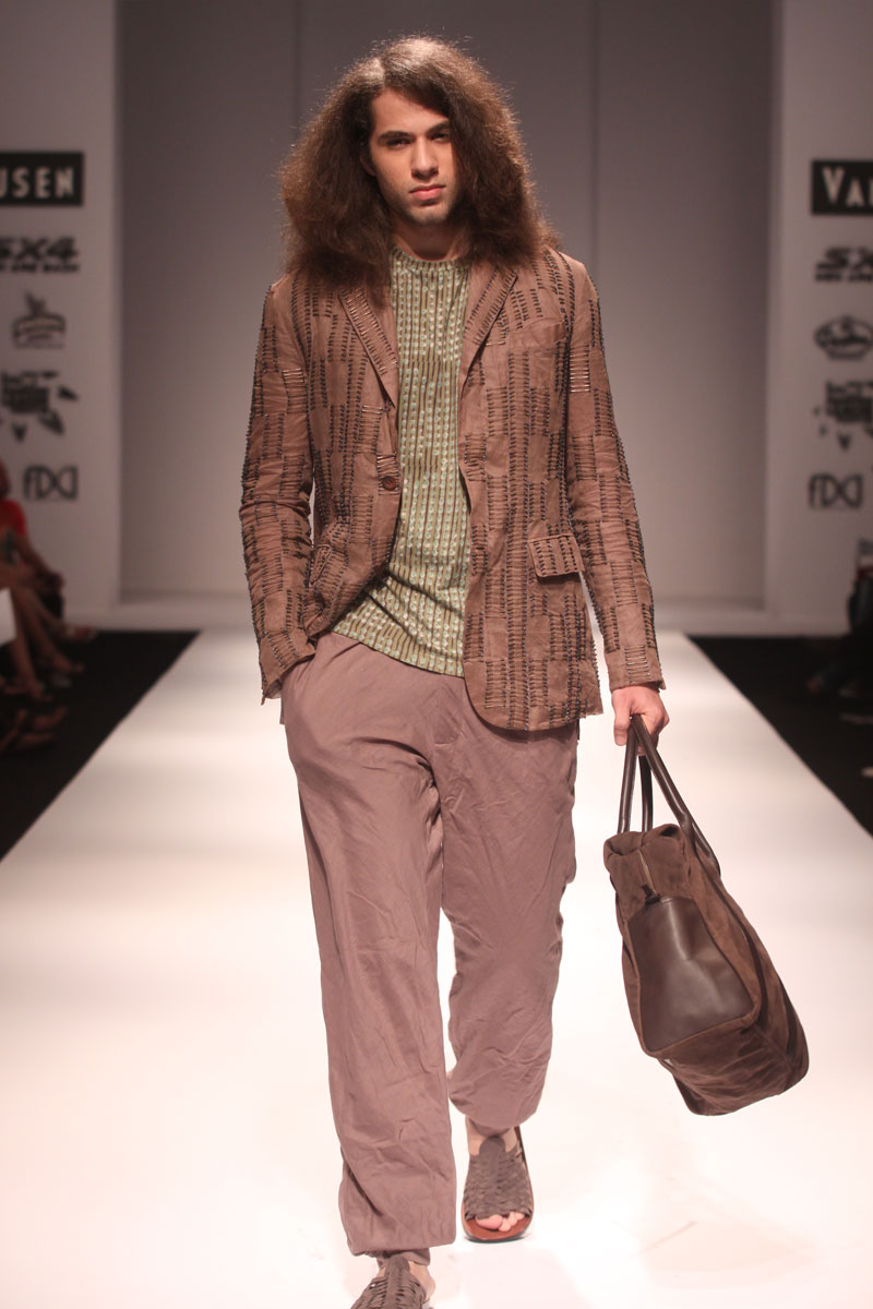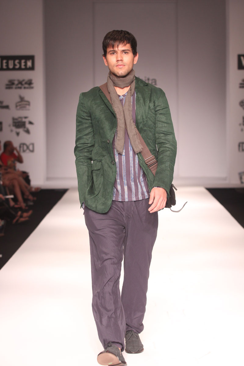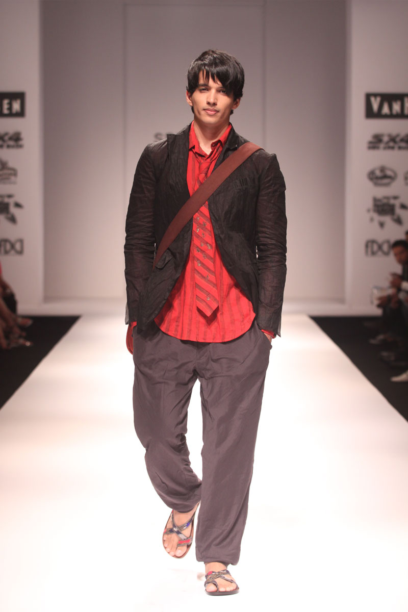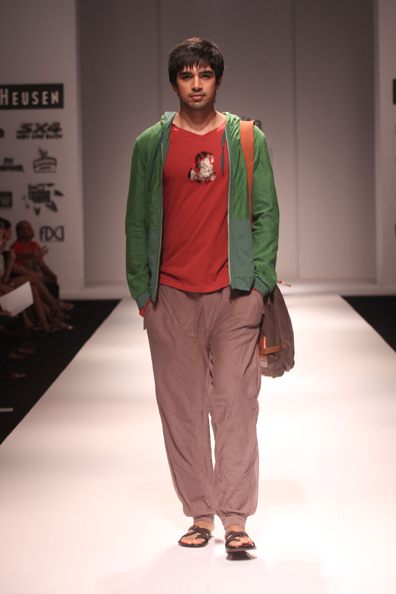 A modern take on the classic and bomber jackets, with finely tailored, deconstructed and collapsible random shapes in jerseys, coupled with relaxed pants in washed drills and twills.