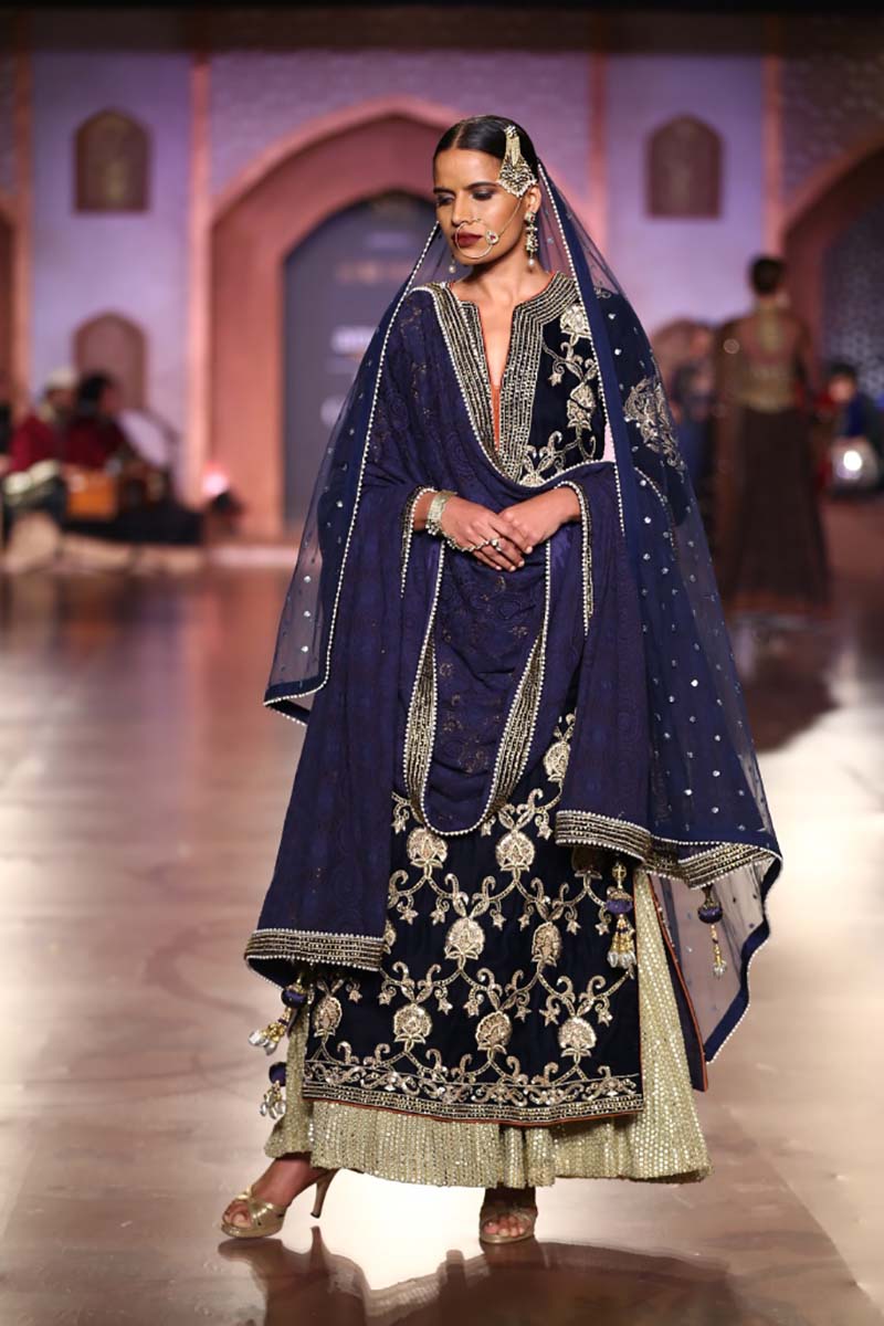 Some people extend their passion and make it into a profession. It is at that point they completely enjoy every moment of work. Such is the case with Reynu Taandon whose clothes exude a great deal of spirit and energy through the colour and embellishments she indulges in. The hallmark of each of her designs is elaborate draping, exquisite construction and immaculate finish.n nReynu Taandon is all set to revive the sartorial splendour of Persia and present an ode to womanhood by visually translating the story behind the Purdah. Through her collection, Reynu Taandon expresses power, peacefulness and sensuality, which she experienced in her study of iconic Persian Empresses.n nThe collection is a series of period creations, each with a story to tell such as the shararas, anarkalis and lehengas with intricate gold embellishments adding to the magnificence of each garment. The fabrics range from lightweight georgette to rich velvet. The collection displays a heavy use of zardozi gold embroidery, royal blue and wine hues combined with understated yet luxurious mirror work inspired from Persian culture and architecture. n n”Our Shahbanu muse is a dream-like vision straight out of the royal courtyard with mesmerizing beauty reflecting through her accentuated eyes and statement jewelry.”n n nBuyers ContactnReynu Taandon/ Nikhita TaandonnM: +91 9811016638/+91 9899104122nE: mdrenutandon@gmail.com / nikhitatandon@gmail.com nMedia ContactnRashi Rohatgi / VineetnM: +91 9810174614/ +91 9818119569nE: rashi@wfive.in / vineet.wfive2@gmail.com