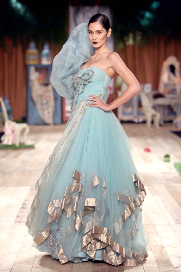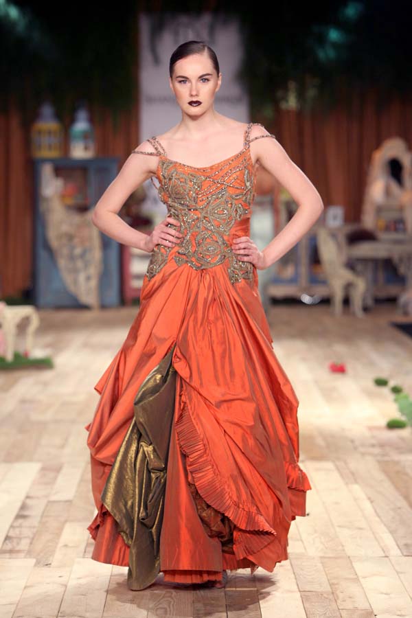 Culling the essence and emotions of Indian culture and marrying it with a modern western sensibility, Shantanu & Nikhil have a deeper, less obvious take on this new exotic fusion. With a unique subtext of delicate details, simple harmonies and rich textural formats, the brand has come to epitomize refinement and luxury in fashion. While keeping the handwriting essentially subtle with Indian monochromatic tones, the language is most definitely contemporary and silhouette centric.n nIt’s every woman’s living dream to add a touch of vintage royalty and a hint of exuberance to her contemporary surroundings as she gets ready to embrace the long-lasting dream of supreme happiness. She is the modern woman and a tale of sorts for many a bride who wish to break the shackles of the by-gone traditions and emerge an uninhibited person living her one chance to glory on a canvas of vivid realities depicting childhood fantasies bearing serene and natural expressions of love and everlasting memories. Her persona, draped in delicate textures & fluid fabrics in hues of Baby Pink, Aqua Blue & Dusty Orange sets the tone for the collection.n n nBUYERS CONTACTnSonal Agarwal nM: +91-9871816161nT: +91 120 4777800nE: sonal@shantanunikhil.comnW: www.shantanunikhil.comn nPRESS CONTACTnAnjali BatranM: +91 9873467803nT: +91 11 64726729