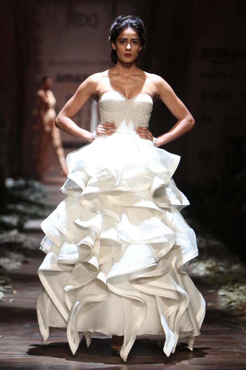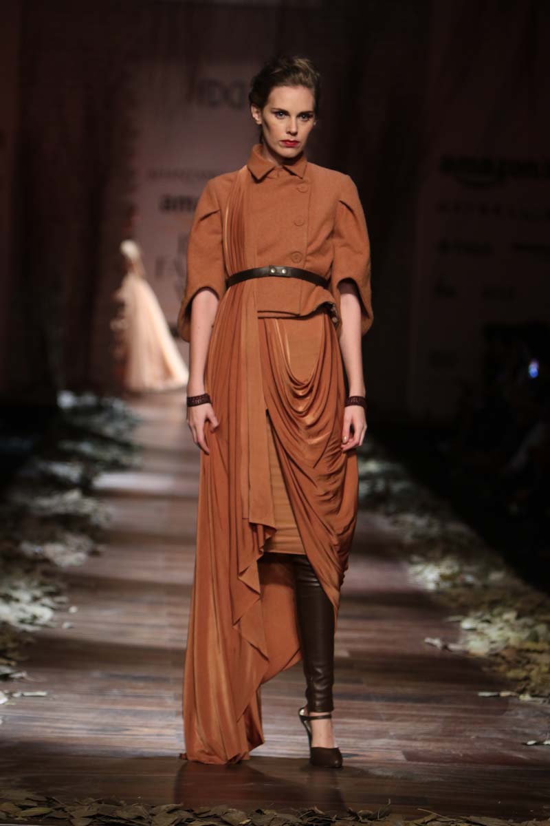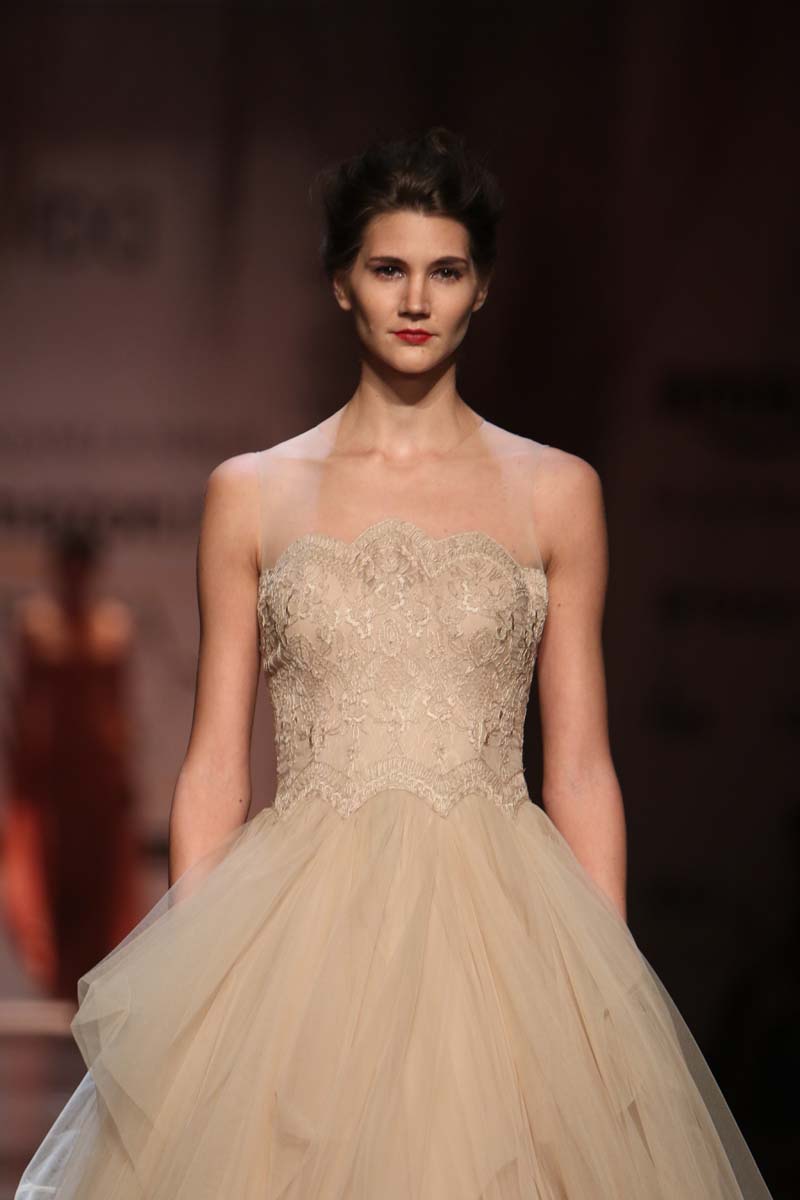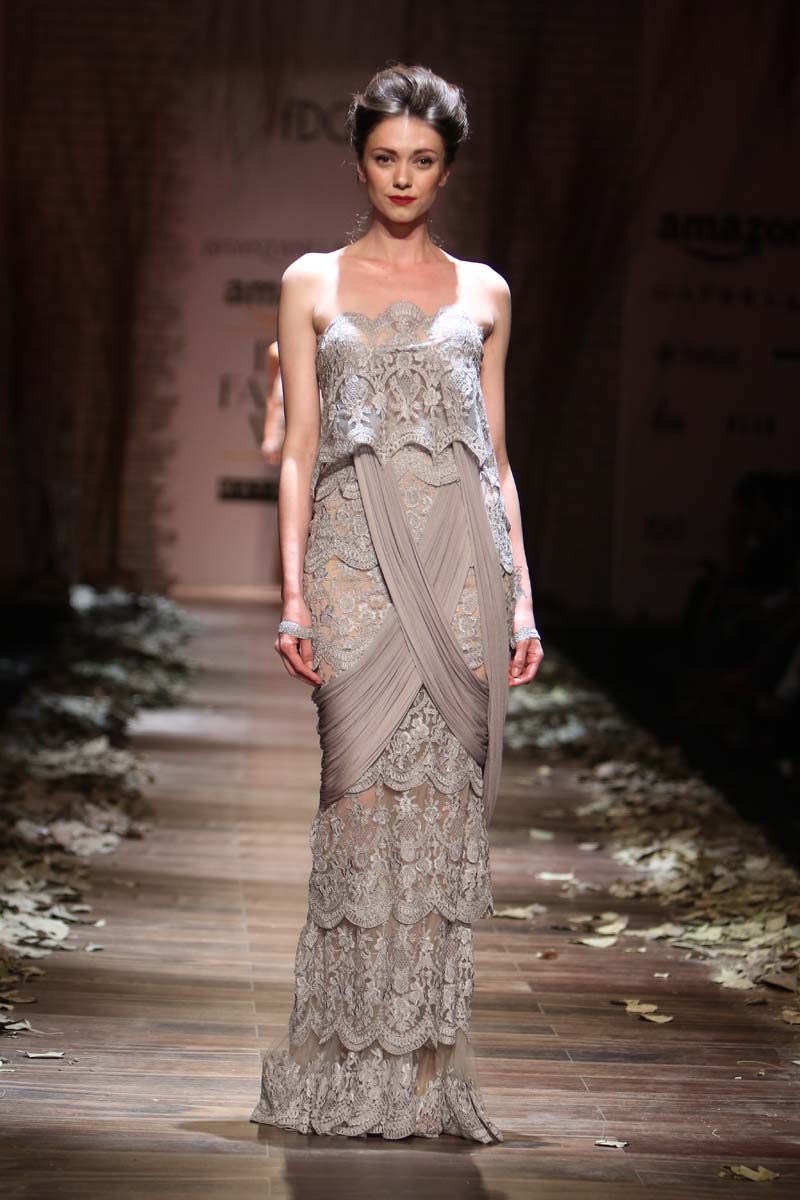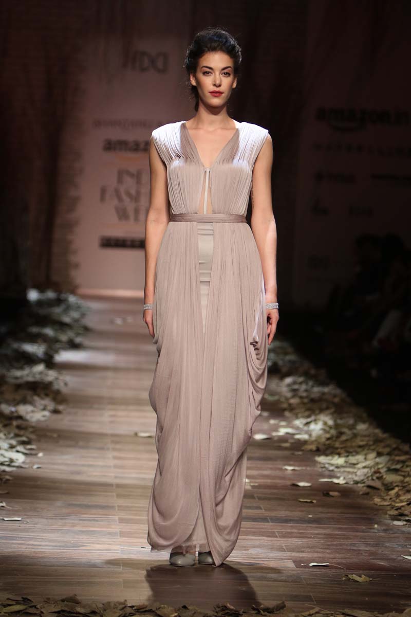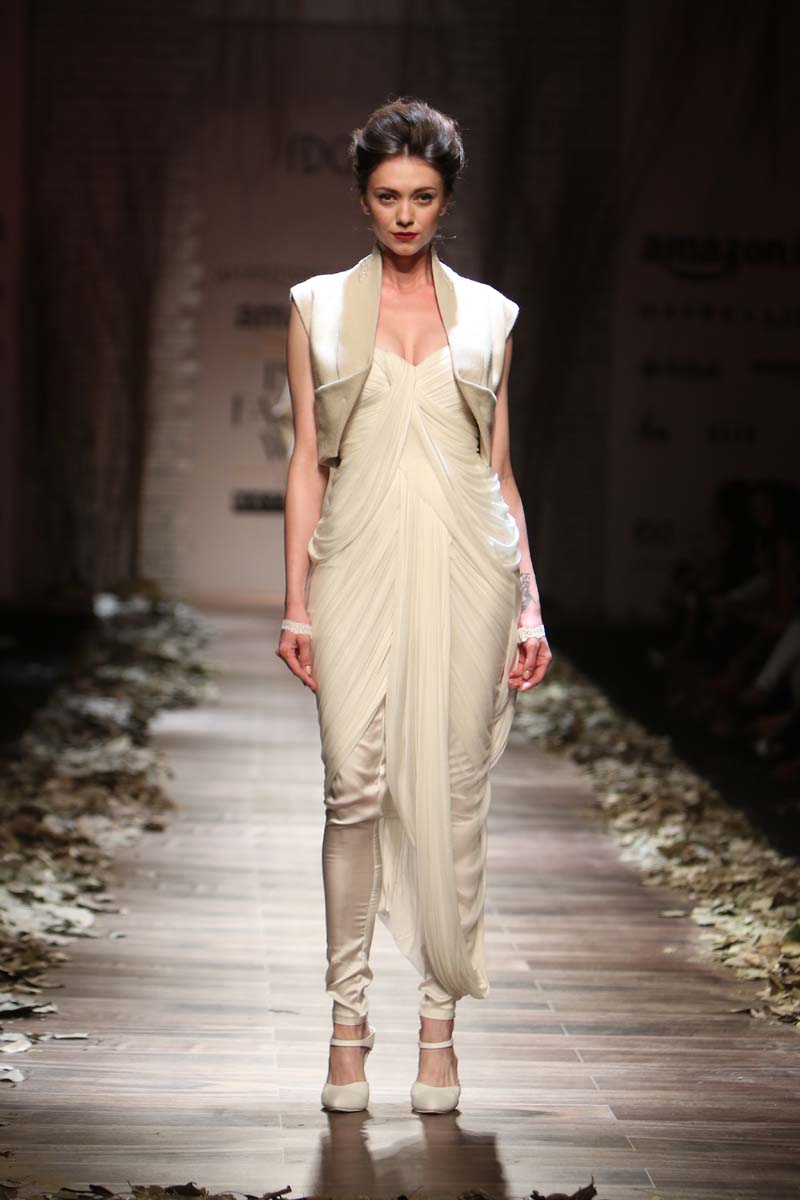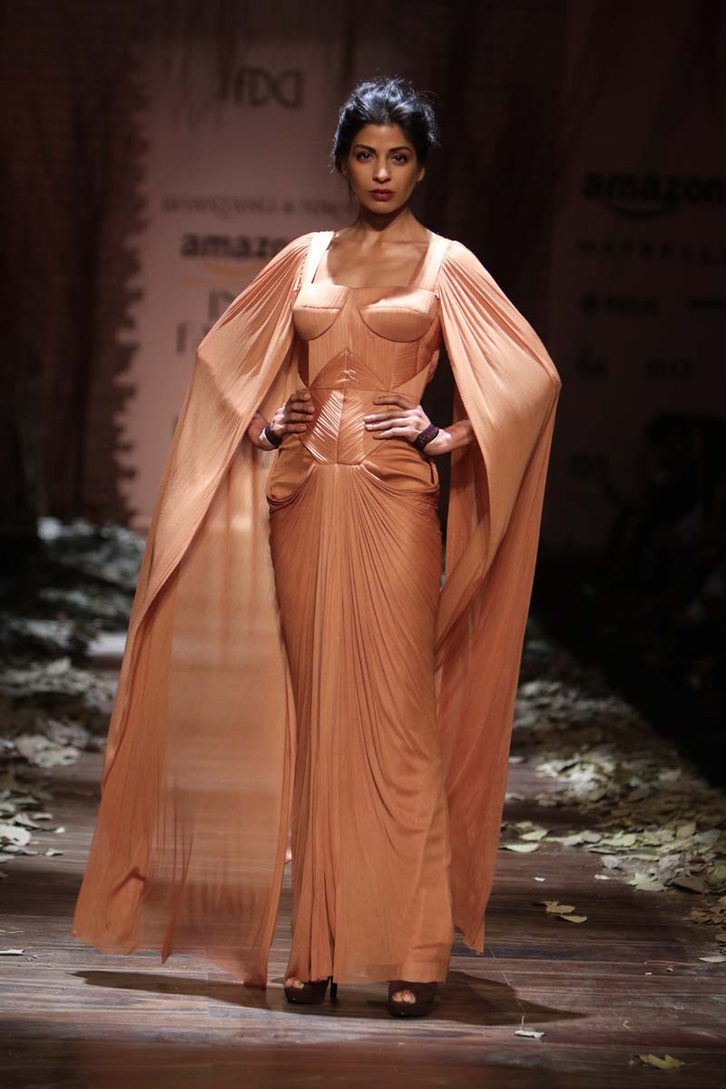 Always known to play contemporary in different shades of emotions, This season Shantanu & nikhil takes you through the unseen depths of mysticism and eerie opulence of a soul, once adorned by the most desired and entrancing woman of her time, a surreal portrayal of the undying luxury, the very essence of our muse. Capturing this essence through signature drapes and fluid fabrics teamed with the rich hues of reds and tonal beiges, ornate with delicate tonal textures, Shantanu & Nikhil present to you “The Last Walk”.