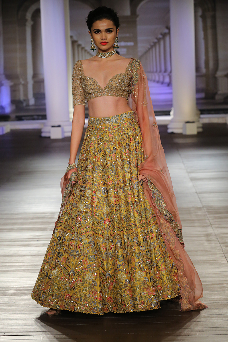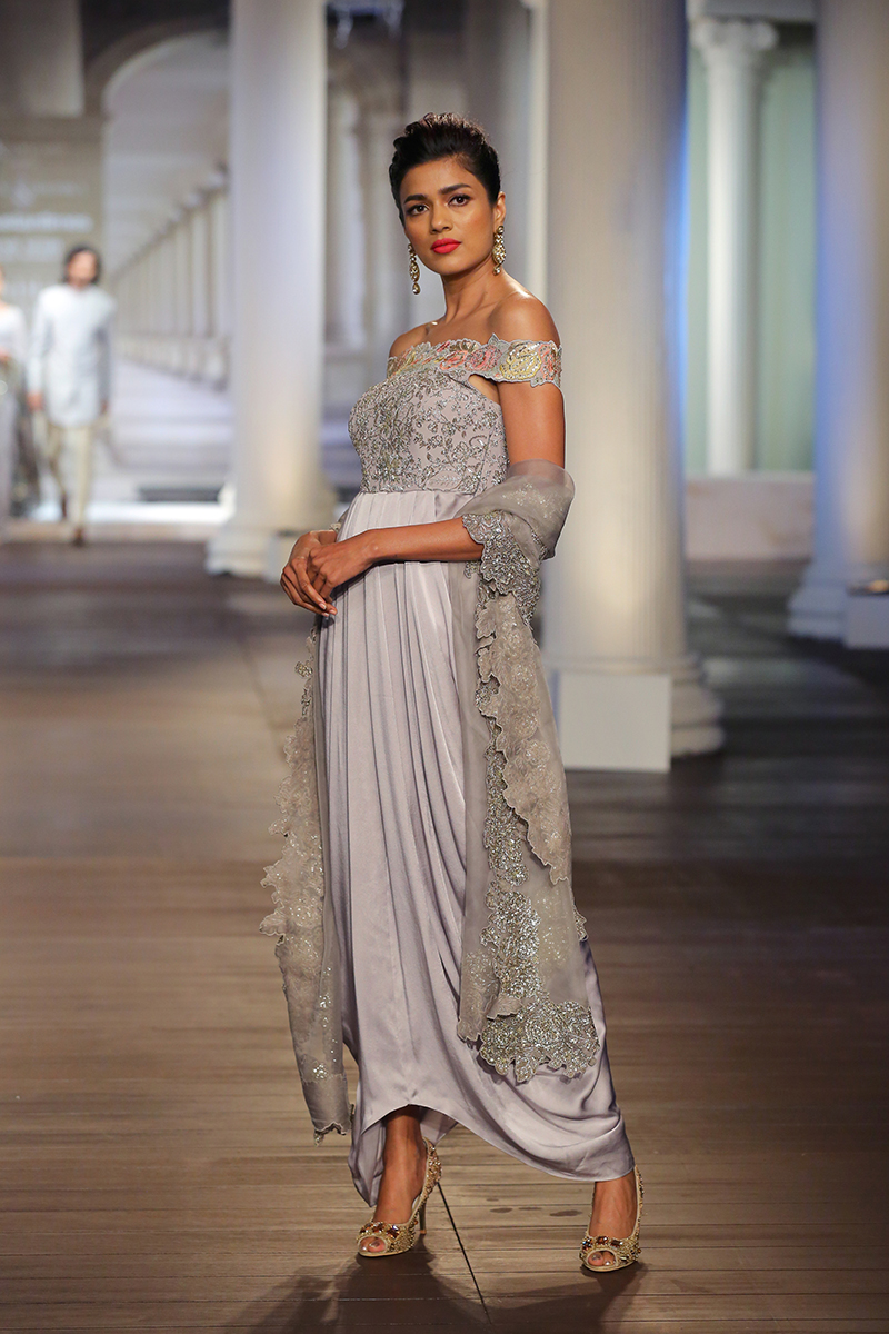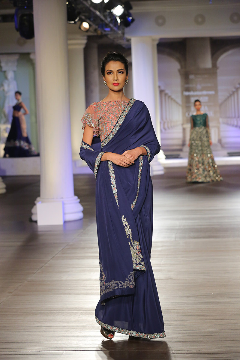 Manifesting an ode to handcraft that epitomizes culture, time and passion; she embodies virtues of a heritage that is time immemorial. Every thread woven, every stitch sown, every pearl encrusted, encounters a blissful stir that chants soft hymns.