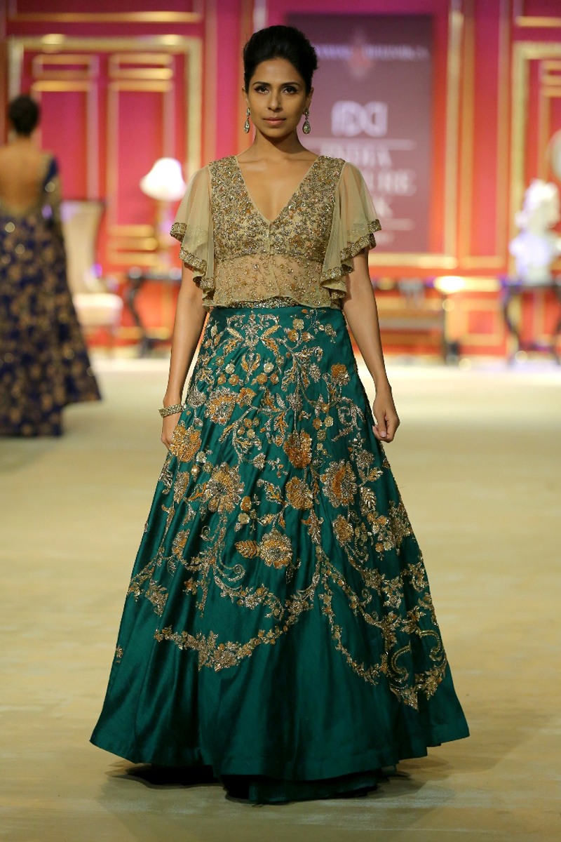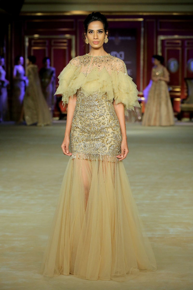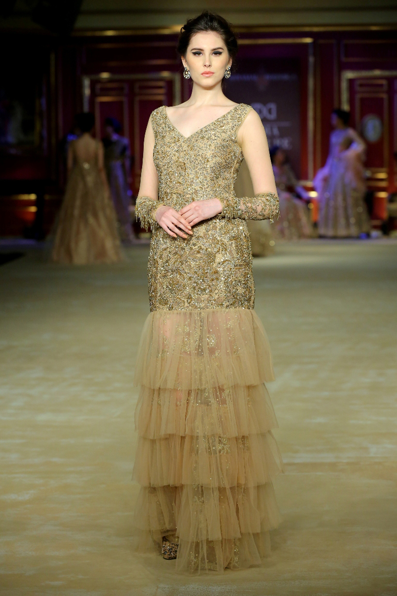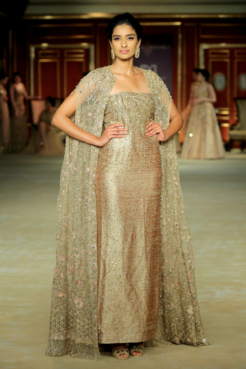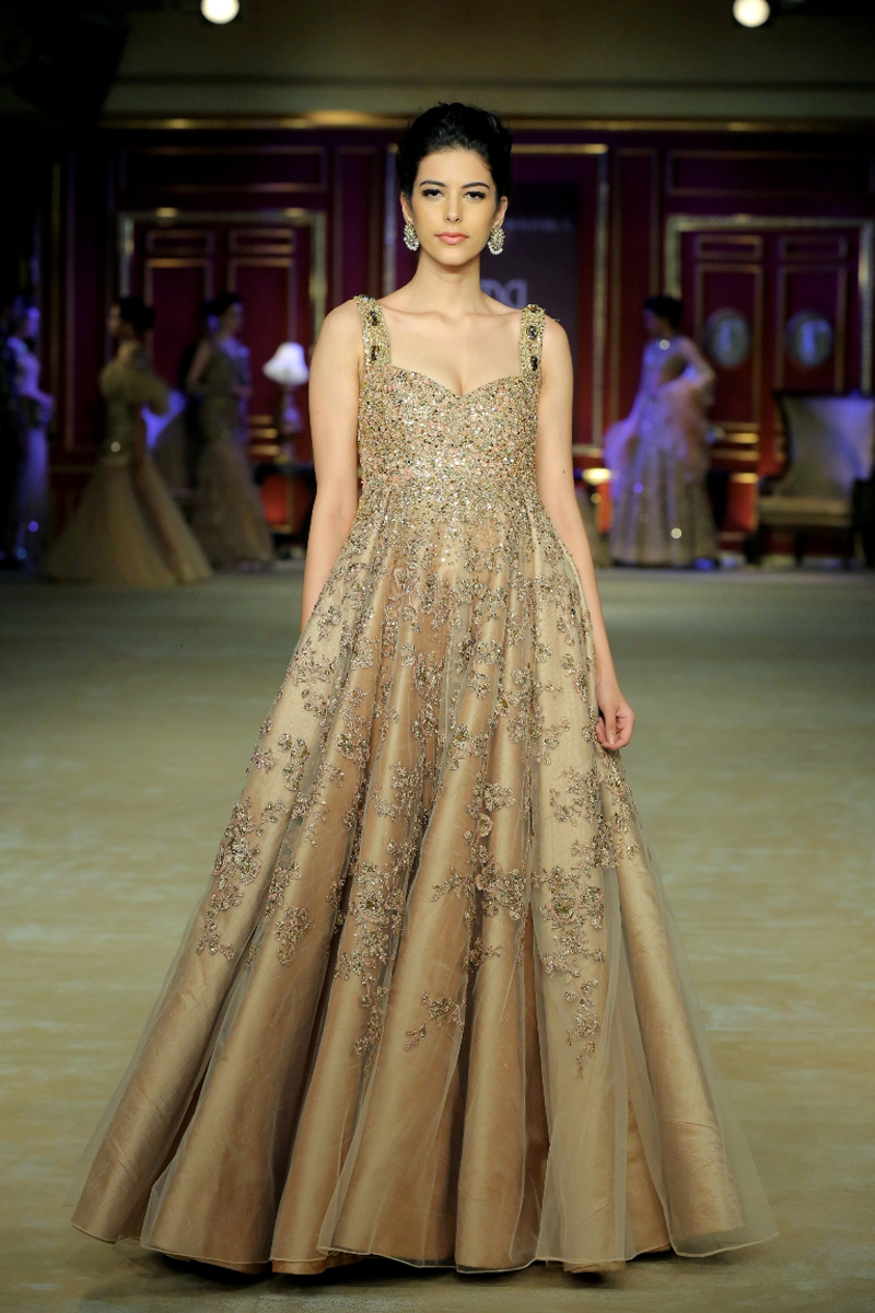 India Couture Week 2017 collection The Merchant Princess : She calls for a soiree in reverence of her beautiful journeys to the world beyond; to the numerous memories shed brought back home and to all the wonderful people that stirred her heart on the way. Nostalgia twinkled in everyone’s eyes like the stars gleaming in the evening sky.