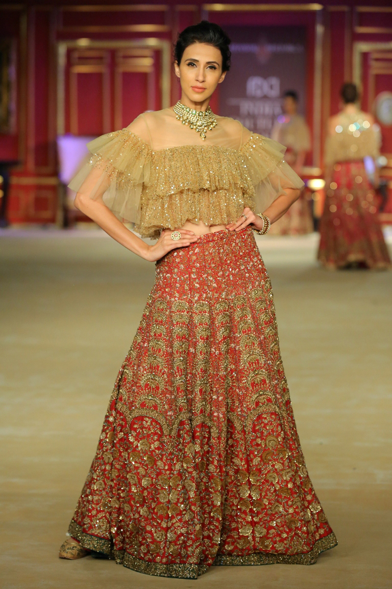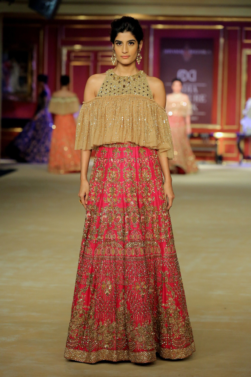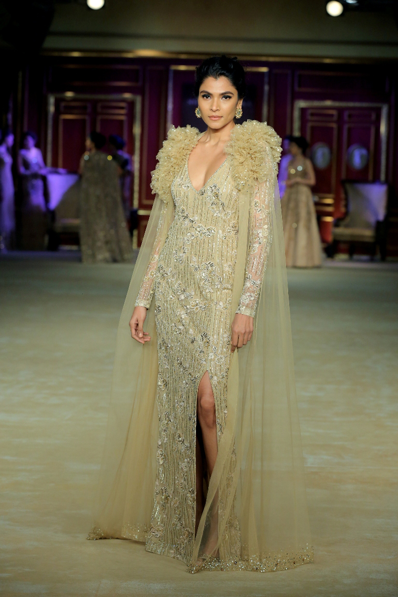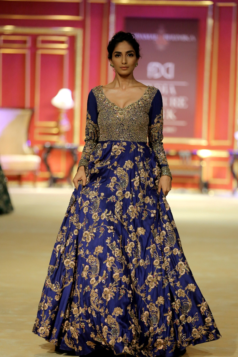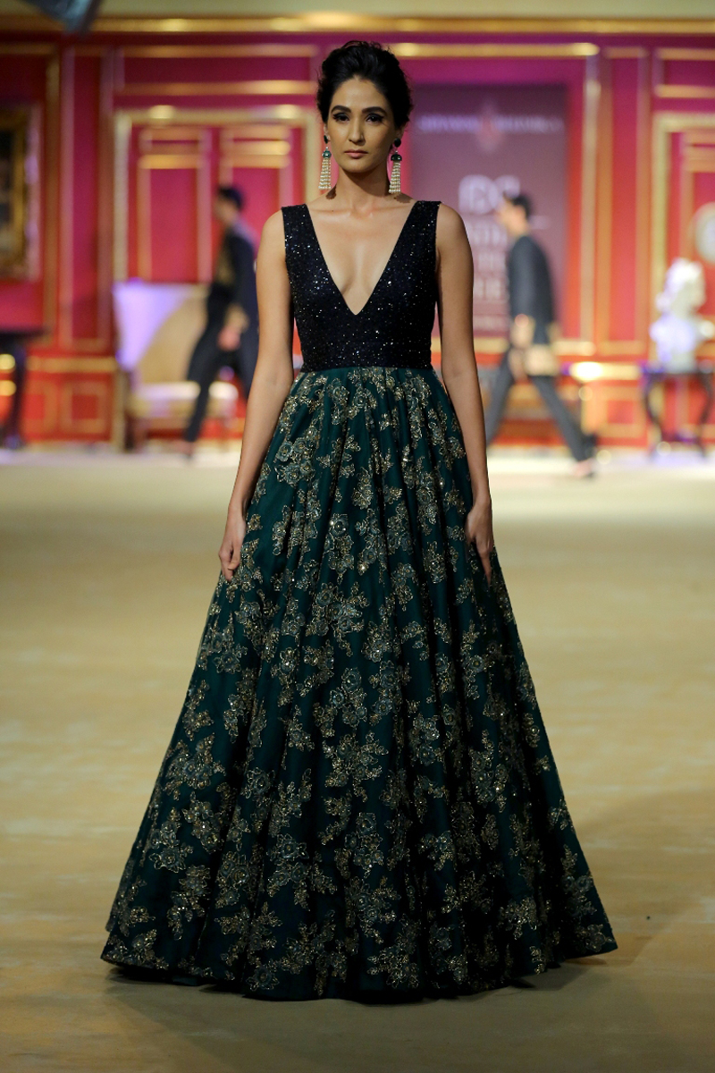 India Couture Week 2017 collection The Merchant Princess : She calls for a soiree in reverence of her beautiful journeys to the world beyond; to the numerous memories shed brought back home and to all the wonderful people that stirred her heart on the way. Nostalgia twinkled in everyone’s eyes like the stars gleaming in the evening sky.