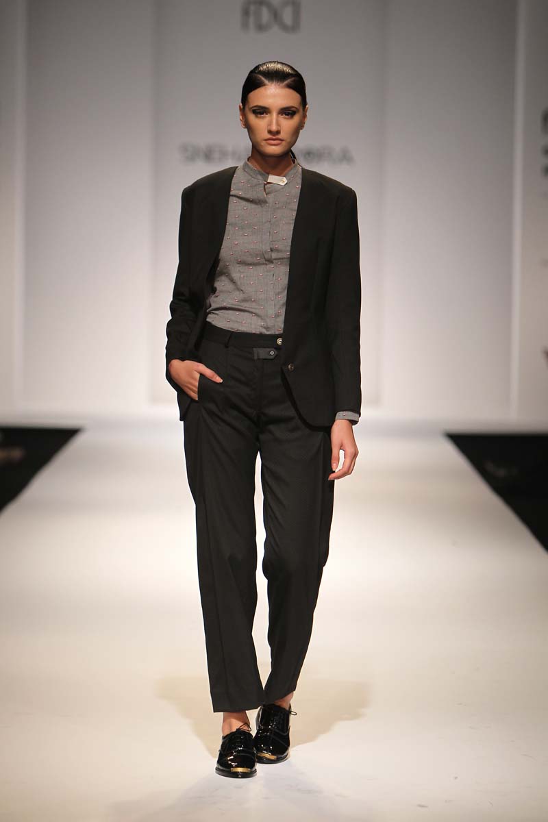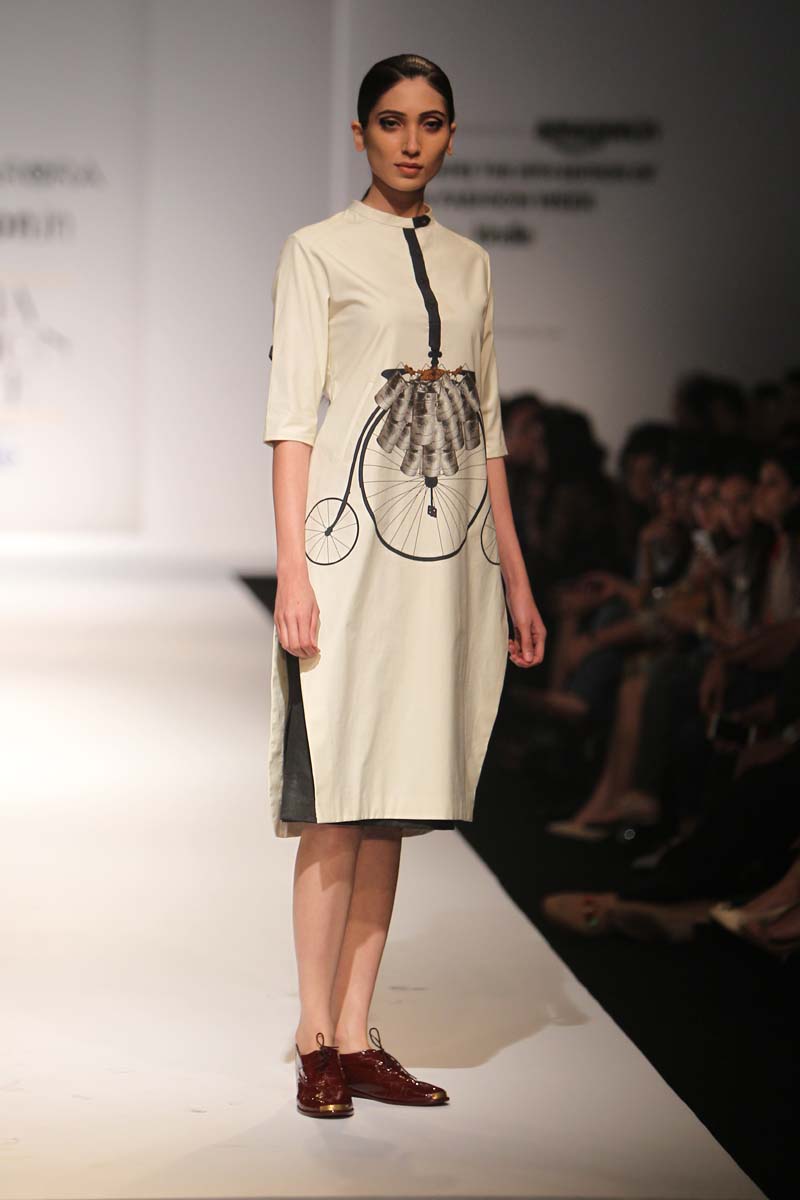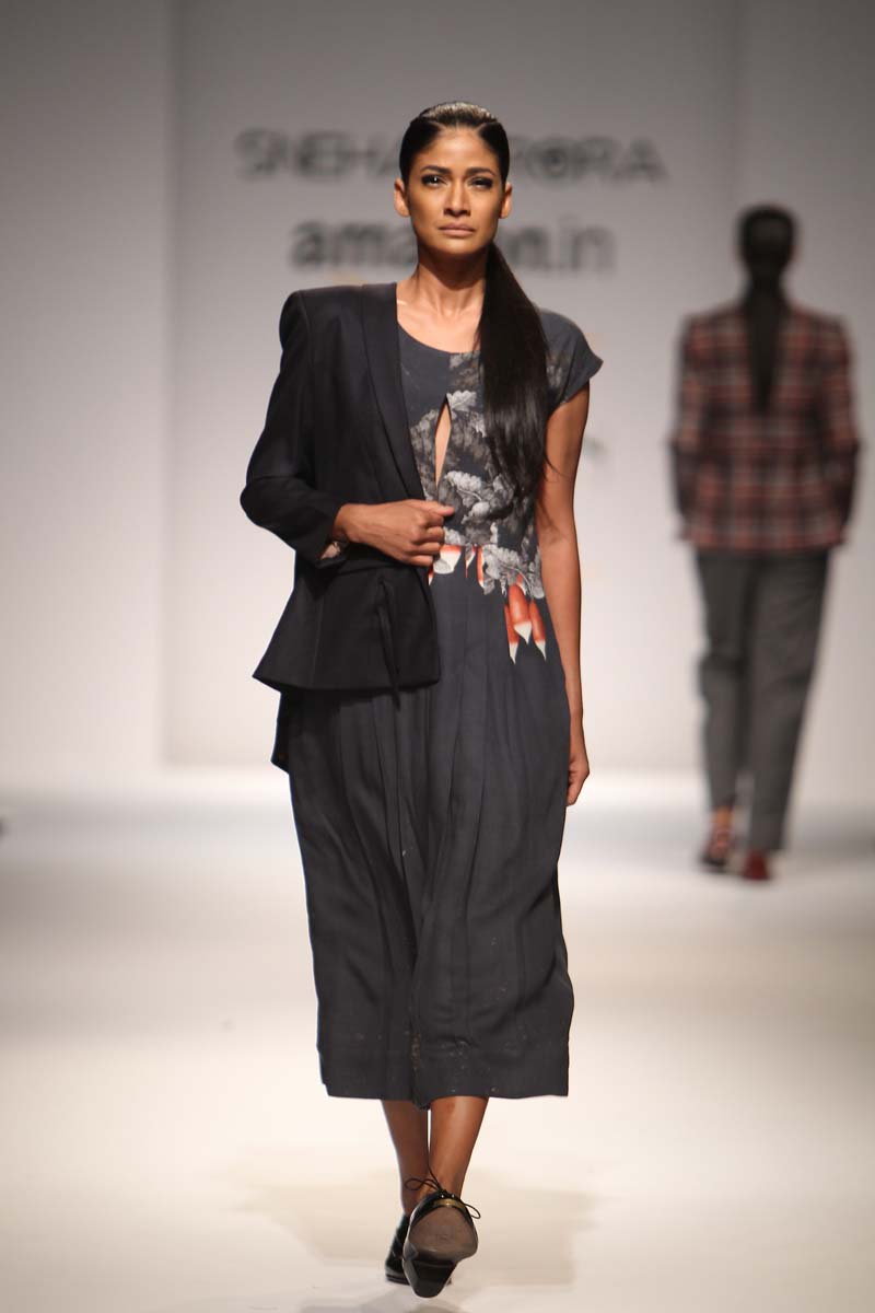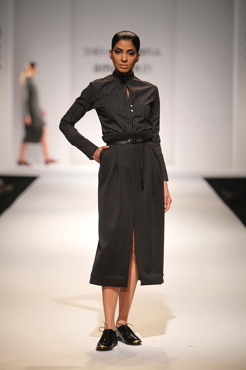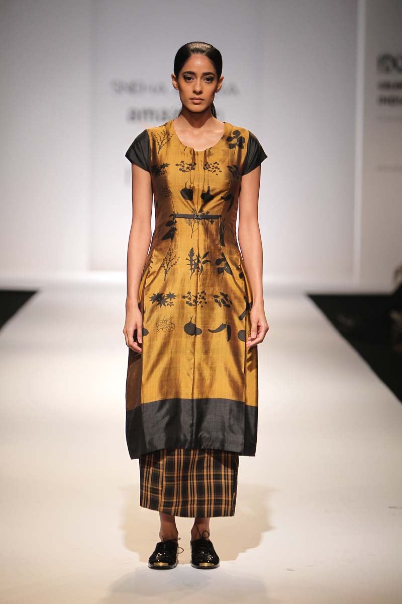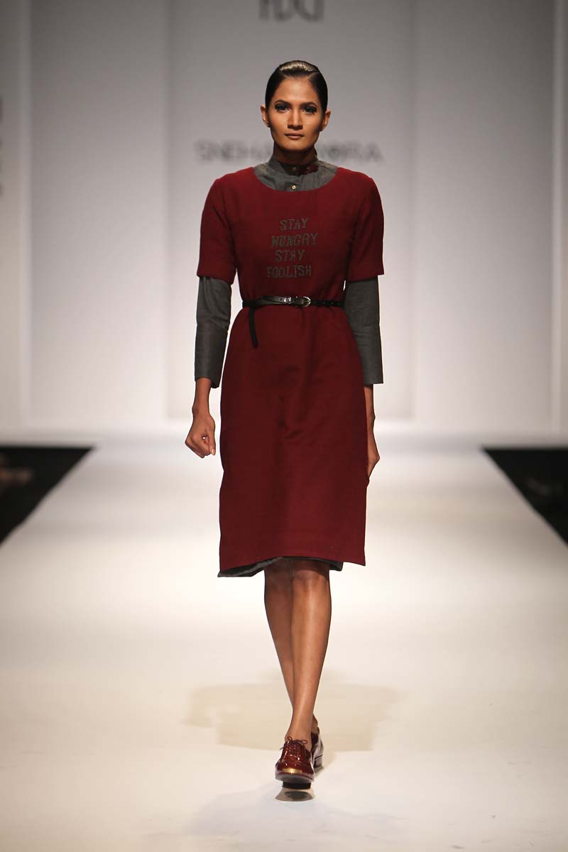 An alumnus of NIFT, Sneha Arora started her eponymous label in 2011 for the love of story-telling through design. The label recites a ladylike twist to masculine silhouettes. Staying true to their obsession for androgyny, the label addresses their clothes to young inspiring, self-dependent women. A combination of classic bodies with avante-garde detailing, structure with a flow, and modernity with a vintage twist, she loves combining contrasting elements to create love forever pieces.n n’APPETITE’- AW15 talks about food for thought…with prints ranging from the ‘mistress of spices’ to ‘knowing your onions’ the collection curbs your hunger for food and thought. So this autumn winter its time for some ‘EAT PLAY and LOVE’ cause if you STAY HUNGRY you’ll have to STAY FOOLISH.n n nBuyers Contact:nSneha AroranM: +91 9830372601nE: snehaarora08@gmail.comn nMedia Contact:nSneha AroranM: +91 9830372601