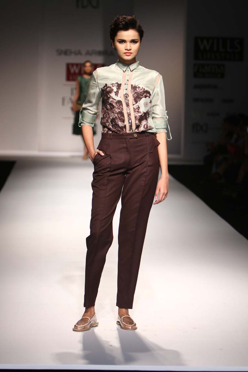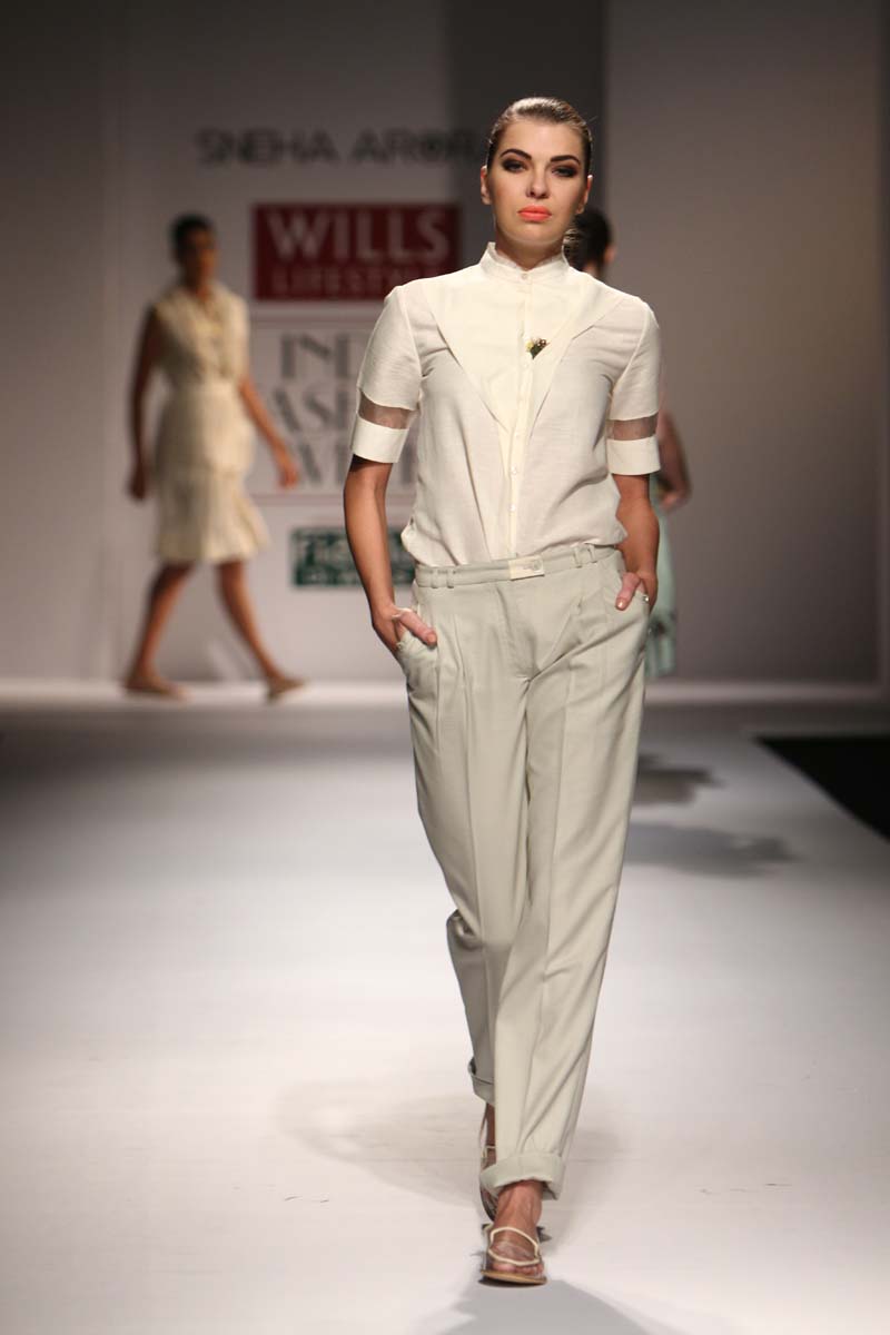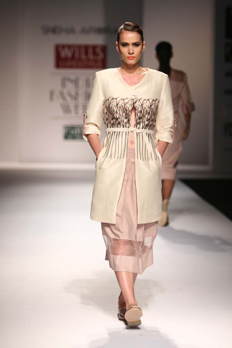 An alumnus of NIFT, Sneha Arora started her eponymous label in 2011 for the love of story-telling through design. The label recites a ladylike twist to masculine silhouettes. Staying true to their obsession for androgyny, the label addresses their clothes to young inspiring, self-dependent women. A combination of classic bodies with avante-garde detailing, structure with a flow, and modernity with a vintage twist, she loves combining contrasting elements to create love forever pieces. n nThe Spring Summer15 collection Disconnect SS15, talks about disconnecting from technology and going back to nature. Saving sometime to look around and breathing in fresh .. n nBuyers Contact:nSneha AroranM: +91 9830372601nE: snehaarora08@gmail.comn nMedia Contact:nSneha AroranM: +91 9830372601nE: snehaarora08@gmail.comn