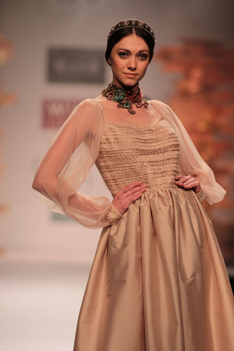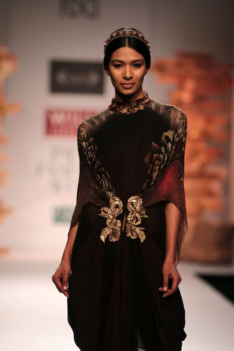 Soltee Label is a Nepalese word meaning relationships. It stands for our rich culture with amalgamation of modern and contemporary art.n The label caters to markets in the Middle East, South Africa, Singapore/ Indonesia, Russia, Krygystan, Kazakistan, Usbekistann nThe AW-2014 Collection is DARK GIVES BALANCE the designer strives to prove the theory that simplicity is the antidote to turbulence, it is all about balance.nThe collection contains a series of floor sweeping dresses, which are perfect for the season. The seductive play with multiple layers gives a sense of double vision blurring the lines between beginning and ending. There is an extensive use of couture based skills to achieve the concepts used in the collection. The color palette moves across nudes, browns to goldsn n nBuyers ContactnSudhir MaliknM: +91-9811105087 nT: +91 0120-4255507nF: +91 0120-4255508nE: soltee2003@gmail.comnW: www.soltee.in n nMedia ContactnSudhir MaliknM: +91 9811105087nT: +91 120-4255507nE: soltee2003@gmail.com