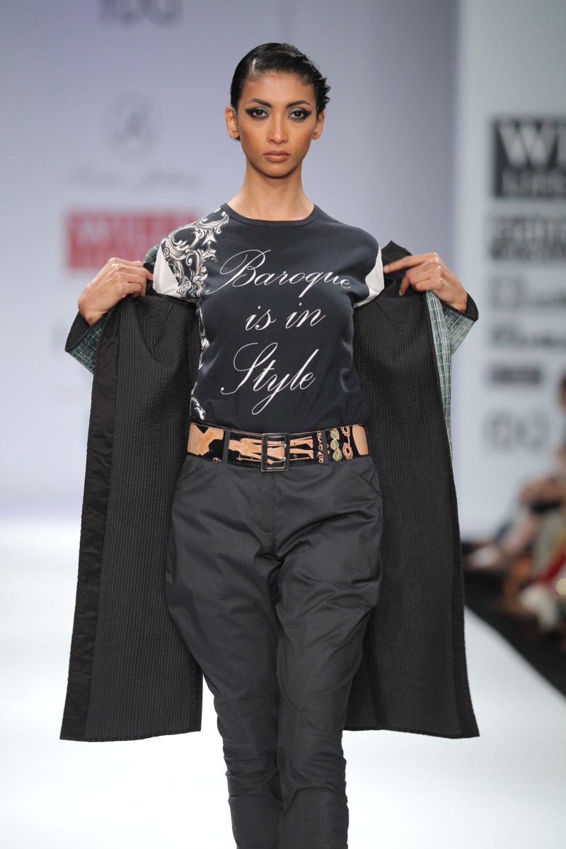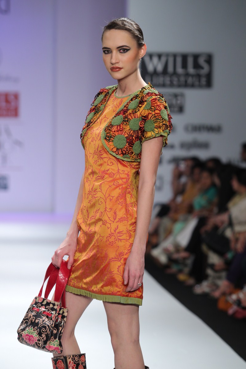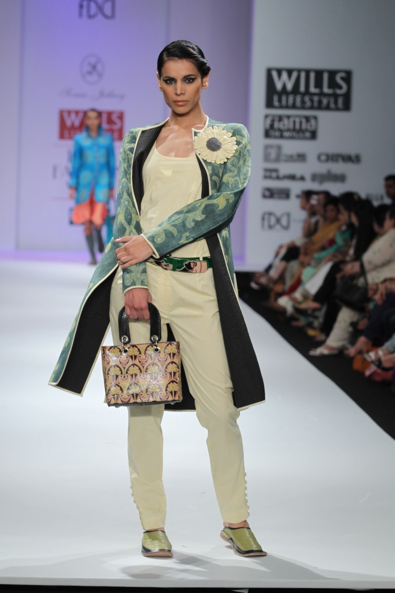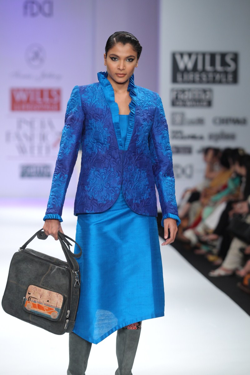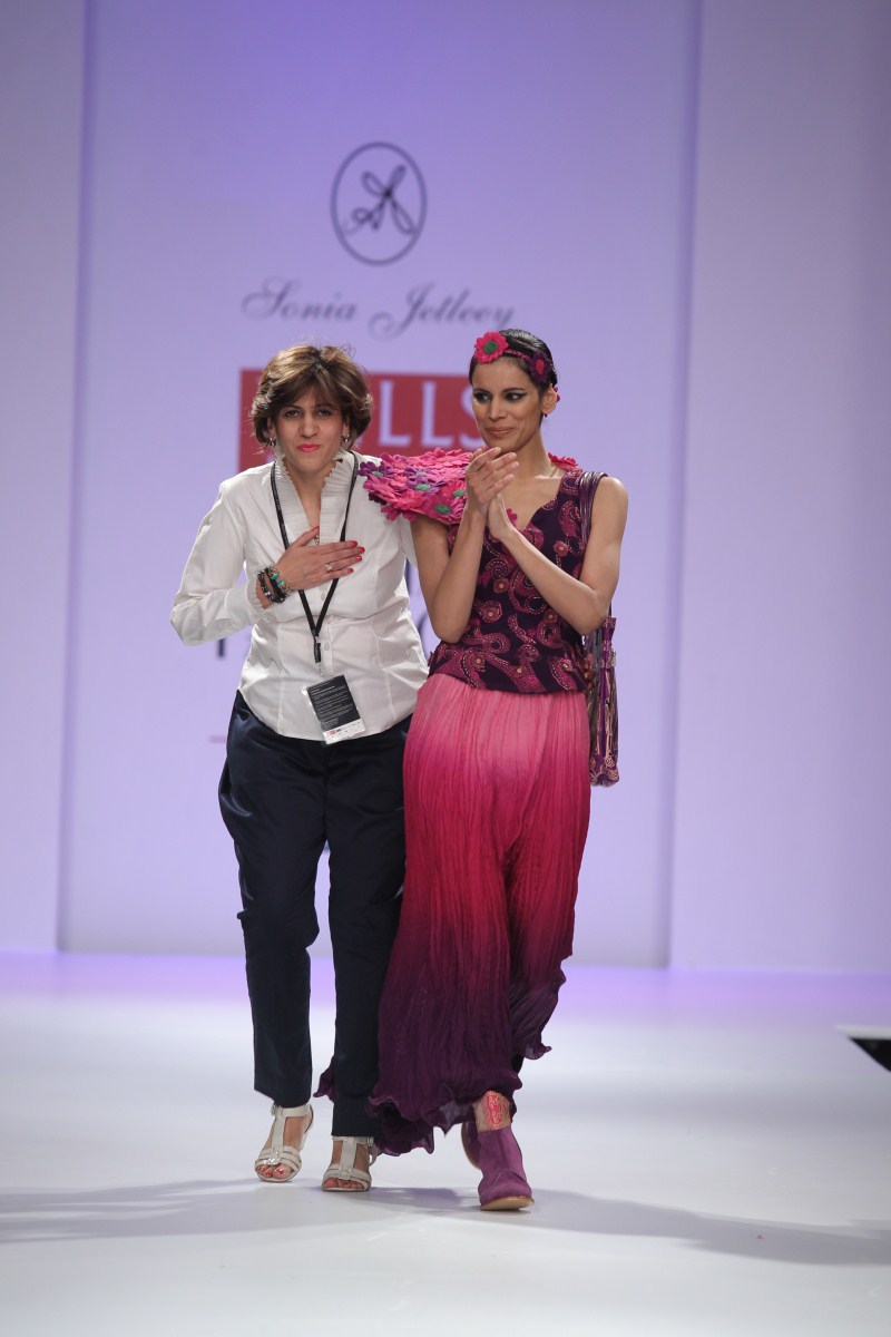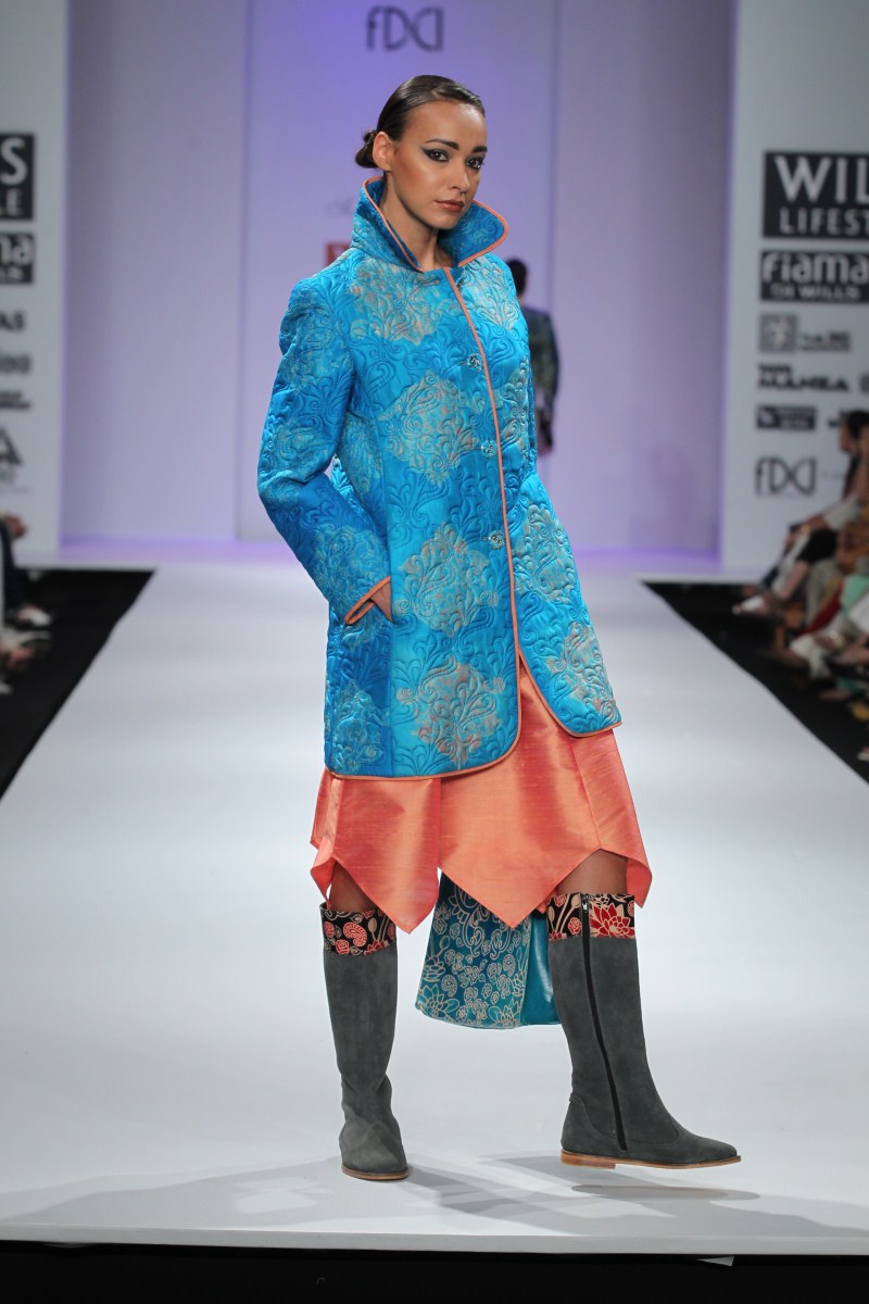 Sonia Jetleey’s Fall Winter 2011-12 collection is essentially a ‘POT-POURRI’ being offered of her ideas and sensibilities to lend a mixed look.n nBaroque styling motifs in printing techniques like discharge, engineered shibori and hand-crafted embroidery techniques lend a unique appeal to the ensembles. The idea of bling is approached with sequin detailing in Baroque motifs in Indian wear.n nThe extraordinary energy in the color palette like Calypso Cordial, Porcelain Blue, Apple Green, Gothic Grape, Chilli Pepper, Molten Lava, Fuscia Red, Beeswax Yellow, Seaport, and Pewter Greasy all meshed with the collection’s classy silhouettes lending real sophistication and polish. There are Quilted Jackets with Jodhpur pants, asymmetric skirts, slim pants, shift dresses, Long skirts with stylized tops, Tunics, Resort Kaftans, sarees, etc.n nOverall an impressive endorsement -A Pot-Pourri being offered for the Fall-Winter 2011-12n n nBUYERS CONTACTnN: Sonia JetleeynM: +91 9810120112nT: +91 11 24332781nE: soniajetleey@gmail.comn nPRESS CONTACTnN: Sonia JetleeynM: +91 9810120112nT: +91 11 24332781