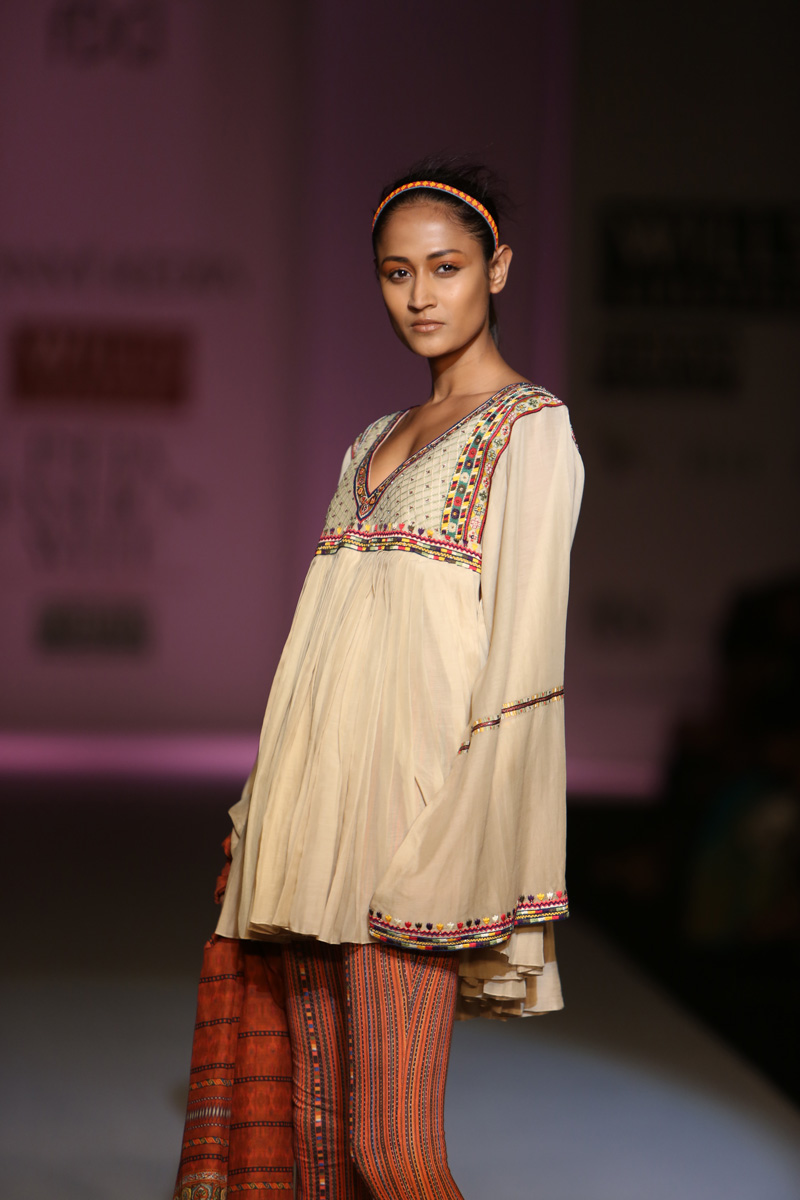 Detail oriented, with colour, craft and texture as her forte, she experiments with different Indian embroideries and vintage textiles creating a global look with a timeless classical appeal in its silhouettes and palettes. In addition to her own label Tanvi has also been designing costumes for films.