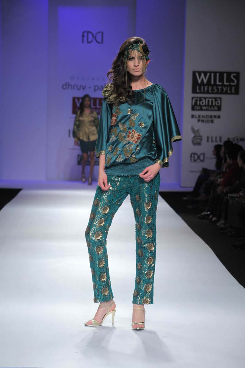 Dhruv-Pallavi started out in 2003, after foraying into the marketnwith their prêt line–Tauras, the designers launched their signaturenline, in 2007. With well pampered dresses to glamorous outfits, tonbeautifully detailed sari, their entire merchandise mix is eclectic.nTheir fabric texture treatments and surface ornamentations tellnan interesting story, making each piece a pleasure to wear.nThe label is housed at premium boutiques across the country likenAza, Fuel, Kimaya, Rudraksh, Mogra etc.nApart from the above the designers have a resort wear line beingnexported to countries like Mauritius, Maldives, Florida, SouthnAfrica etc.