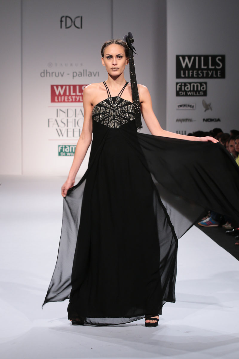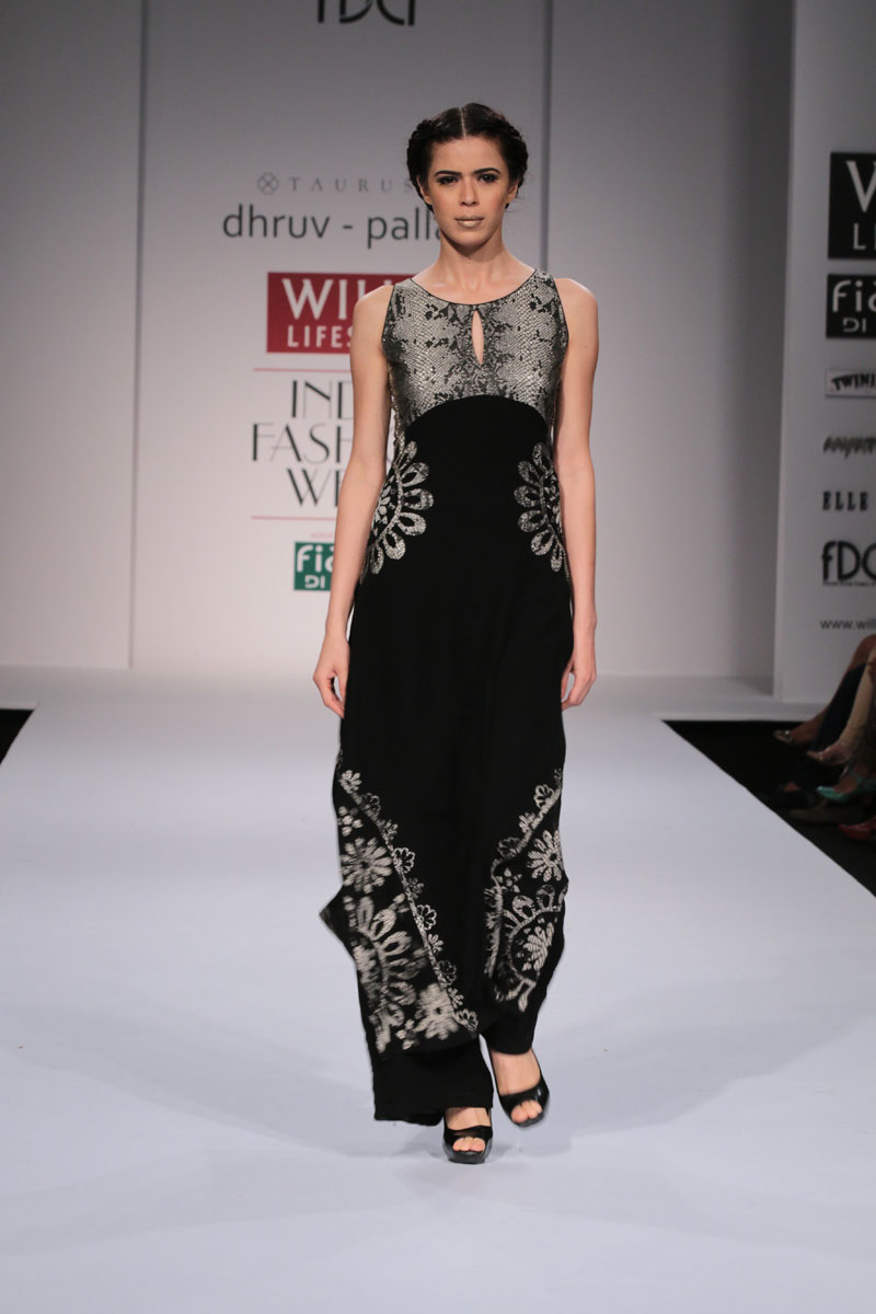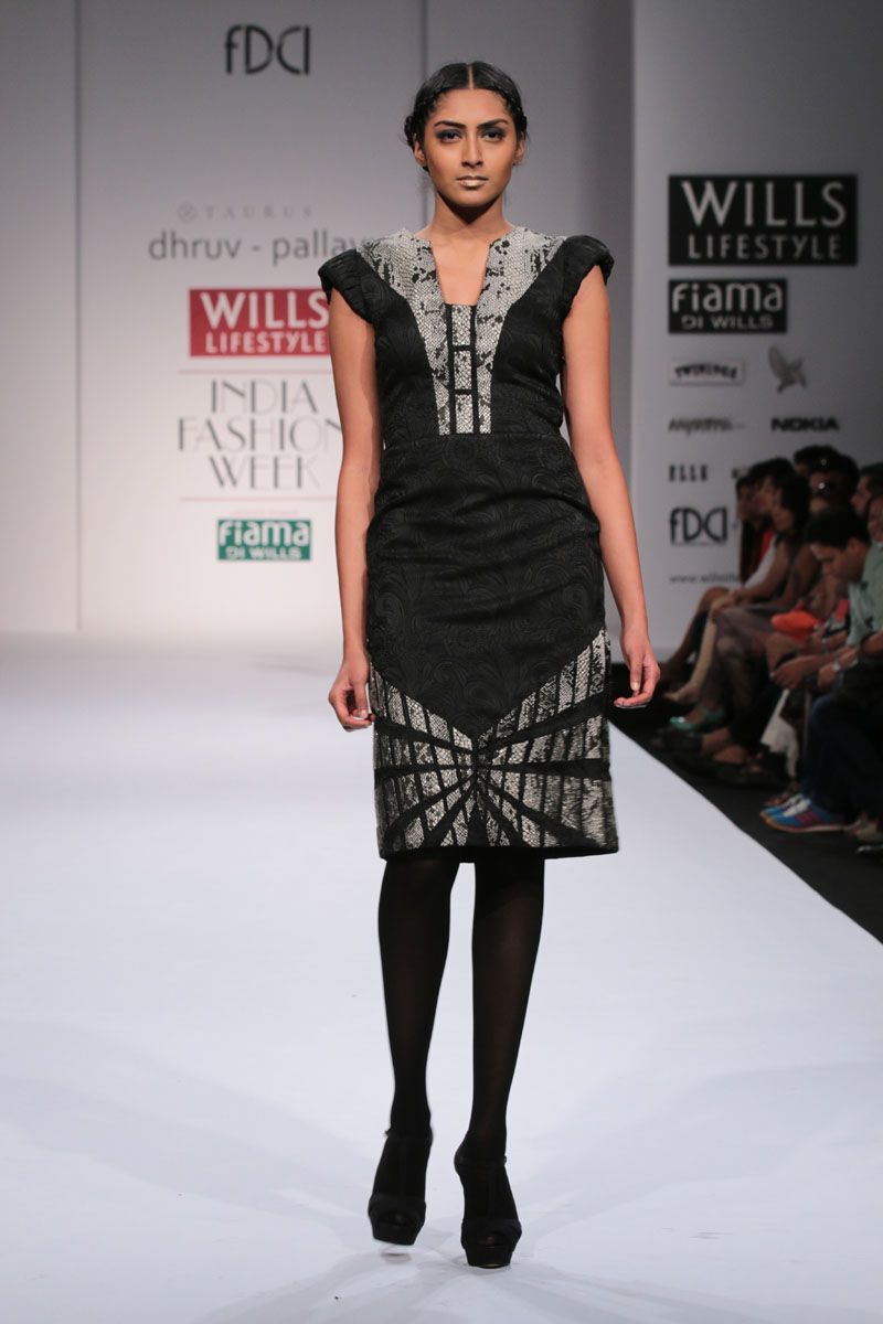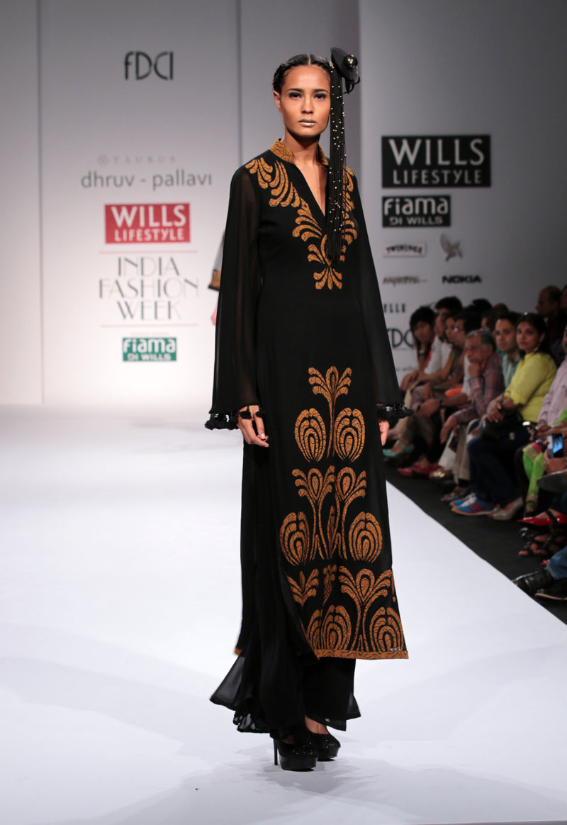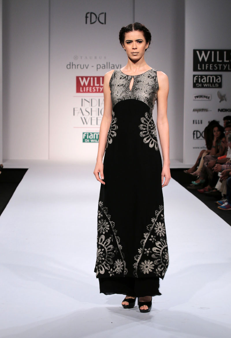 Dhruv-Pallavi started out in 2003, foraying into the market with their prêt line for women – Taurus. They then launched their signature line, in 2007,blending Indian craftsmanship with international concepts, giving it a global appeal. Believing in the philosophy of “one world”their creations attract a broad range of market segment world over. The clean cut out lines,fabric texture treatments and surface ornamentations weave an interesting story…nThe label is housed at premium boutiques across the country like Aza, Fuel, Mogra etc.nApart from the above, they export toUSA, London, Bahamas, Mauritius, Maldives,South Africa etc.n nDhruv-pallavi presents “illusion” for their Autumn Winter 2014 nThe “illusion” comprises of 3 parts:nKaleidoscope- here an optical illusion is created through sequential gradation to form a grid.This is depicted through thread embroidery and applique of “chakras”, the entire motley of pattern is inspired by a kaleidoscope.The silhouettes are mostly structured. These involve blending of woven jacquard fabrics with textured ones to create a depth in the range. Shifts,cape tunics and ethnic wear are part of this segment.nFauna- here the technique of thread embroidery cleverly brings out the “insects& bugs”in the garden, creating an energy flow in the pattern. Tulle nets, georgettes help to enhance the hide n seek effect in the garments. Jumpsuit, straight line dresses and fusion wear are part of this range.nThe arc- essentially this part isa takeoff from the grid collection in terms of the technique of work. The starting point being the arc for the artwork. Applique on textured fabrics is heavily relied upon to create a look that stands out from a distance. Cape tunics, shifts, jackets and suits complete this range.nThe five main highlights of the collection:n• Technique of applique of textured fabrics to create depthn• The colour black combined with other strong coloursn• The combination of different fabrics in one silhouetten• Structure in constructionn• Wearability of the outfitsn nFor this Collection, accessories are not needed with the garments. Keeping it simple by either wearing a single broad bracelet or long earrings is the key.n nBuyer’s ContactnDhruv GuptanM: +91 9811093545nT: +91 0130-2121201nE: dhruv@taurusindia.net, info@taurusindia.netnW:www.facebook.com/dhruvpallavi,www.facebook.com/taurustudio
