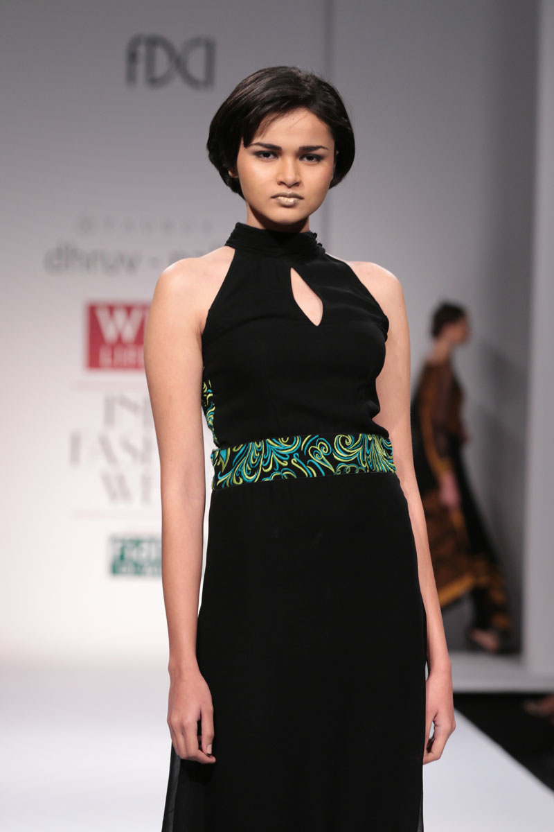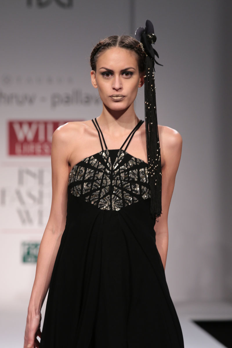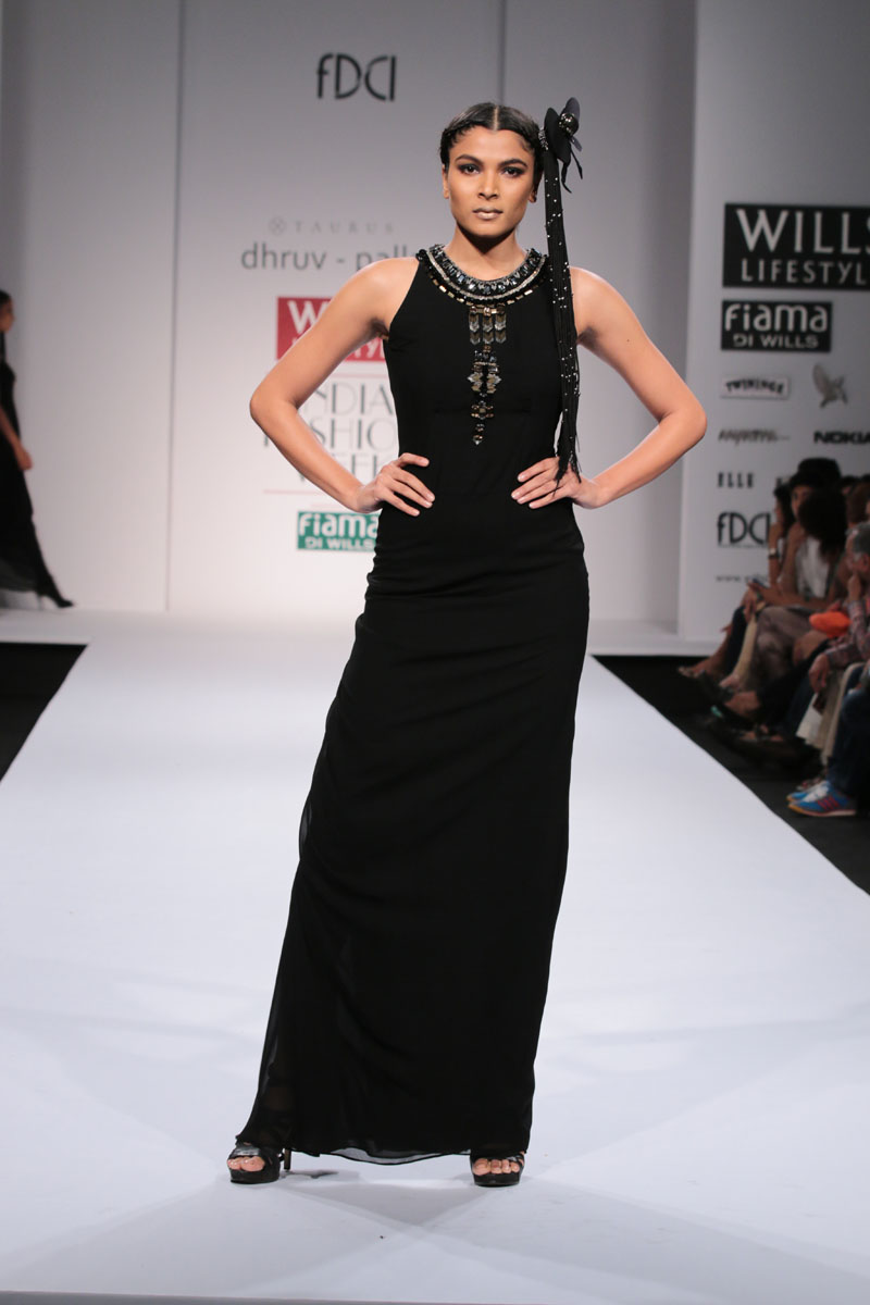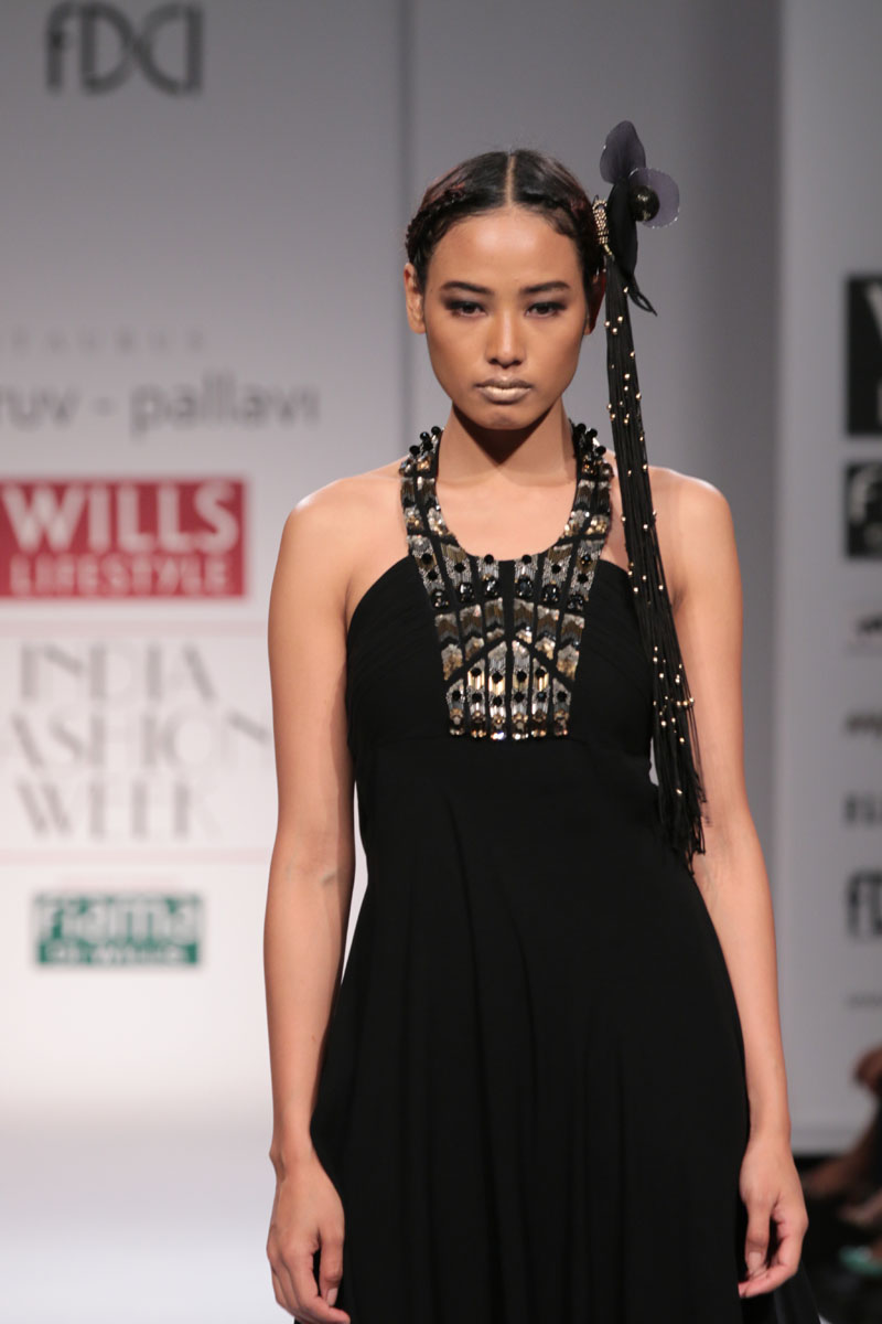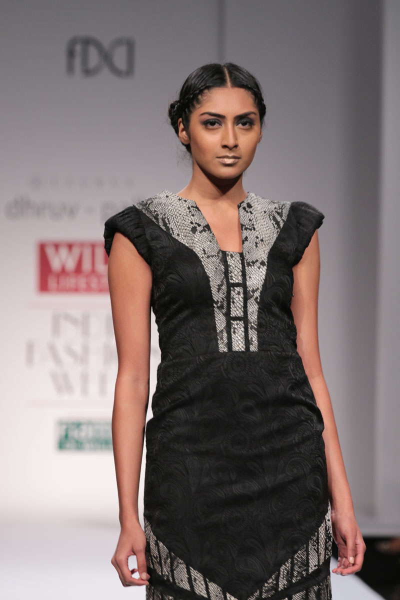 Dhruv-Pallavi started out in 2003, foraying into the market with their prêt line for women – Taurus. They then launched their signature line, in 2007,blending Indian craftsmanship with international concepts, giving it a global appeal. Believing in the philosophy of “one world”their creations attract a broad range of market segment world over. The clean cut out lines,fabric texture treatments and surface ornamentations weave an interesting story…nThe label is housed at premium boutiques across the country like Aza, Fuel, Mogra etc.nApart from the above, they export toUSA, London, Bahamas, Mauritius, Maldives,South Africa etc.n nDhruv-pallavi presents “illusion” for their Autumn Winter 2014 nThe “illusion” comprises of 3 parts:nKaleidoscope- here an optical illusion is created through sequential gradation to form a grid.This is depicted through thread embroidery and applique of “chakras”, the entire motley of pattern is inspired by a kaleidoscope.The silhouettes are mostly structured. These involve blending of woven jacquard fabrics with textured ones to create a depth in the range. Shifts,cape tunics and ethnic wear are part of this segment.nFauna- here the technique of thread embroidery cleverly brings out the “insects& bugs”in the garden, creating an energy flow in the pattern. Tulle nets, georgettes help to enhance the hide n seek effect in the garments. Jumpsuit, straight line dresses and fusion wear are part of this range.nThe arc- essentially this part isa takeoff from the grid collection in terms of the technique of work. The starting point being the arc for the artwork. Applique on textured fabrics is heavily relied upon to create a look that stands out from a distance. Cape tunics, shifts, jackets and suits complete this range.nThe five main highlights of the collection:n• Technique of applique of textured fabrics to create depthn• The colour black combined with other strong coloursn• The combination of different fabrics in one silhouetten• Structure in constructionn• Wearability of the outfitsn nFor this Collection, accessories are not needed with the garments. Keeping it simple by either wearing a single broad bracelet or long earrings is the key.n nBuyer’s ContactnDhruv GuptanM: +91 9811093545nT: +91 0130-2121201nE: dhruv@taurusindia.net, info@taurusindia.netnW:www.facebook.com/dhruvpallavi,www.facebook.com/taurustudio