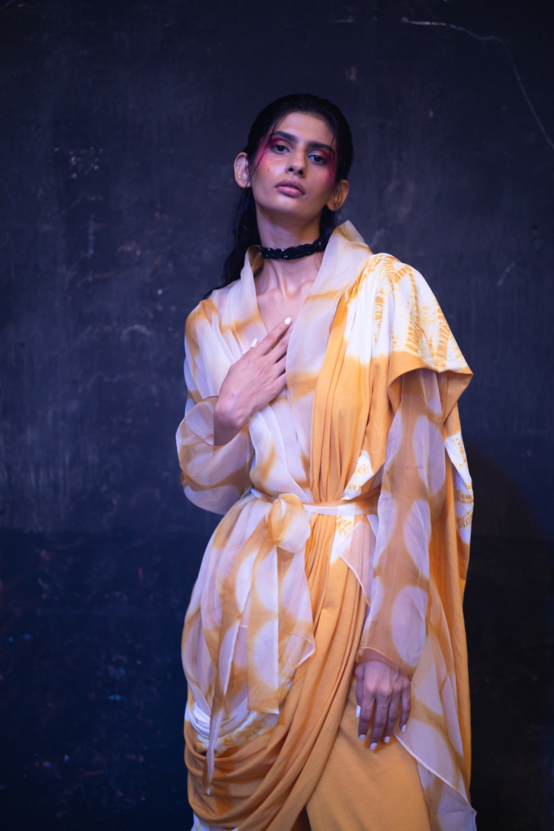 Pushing the boundaries of the traditional crafts like Bandhani and Shibori, the designers offered gender fluid silhouettes that revealed fine finishing and impeccable tailoring.