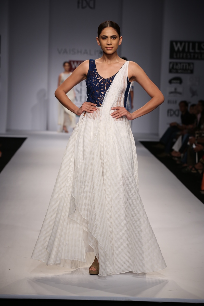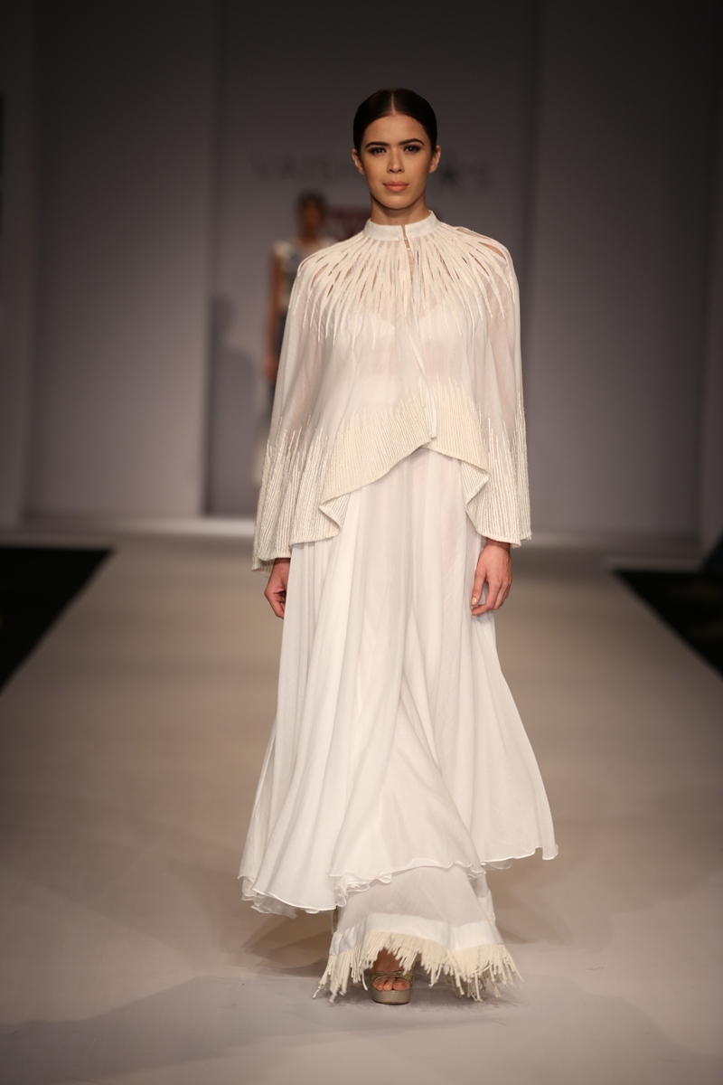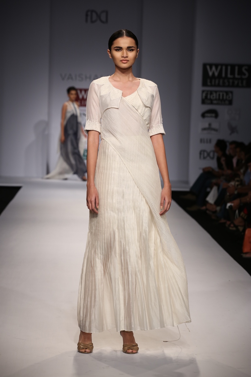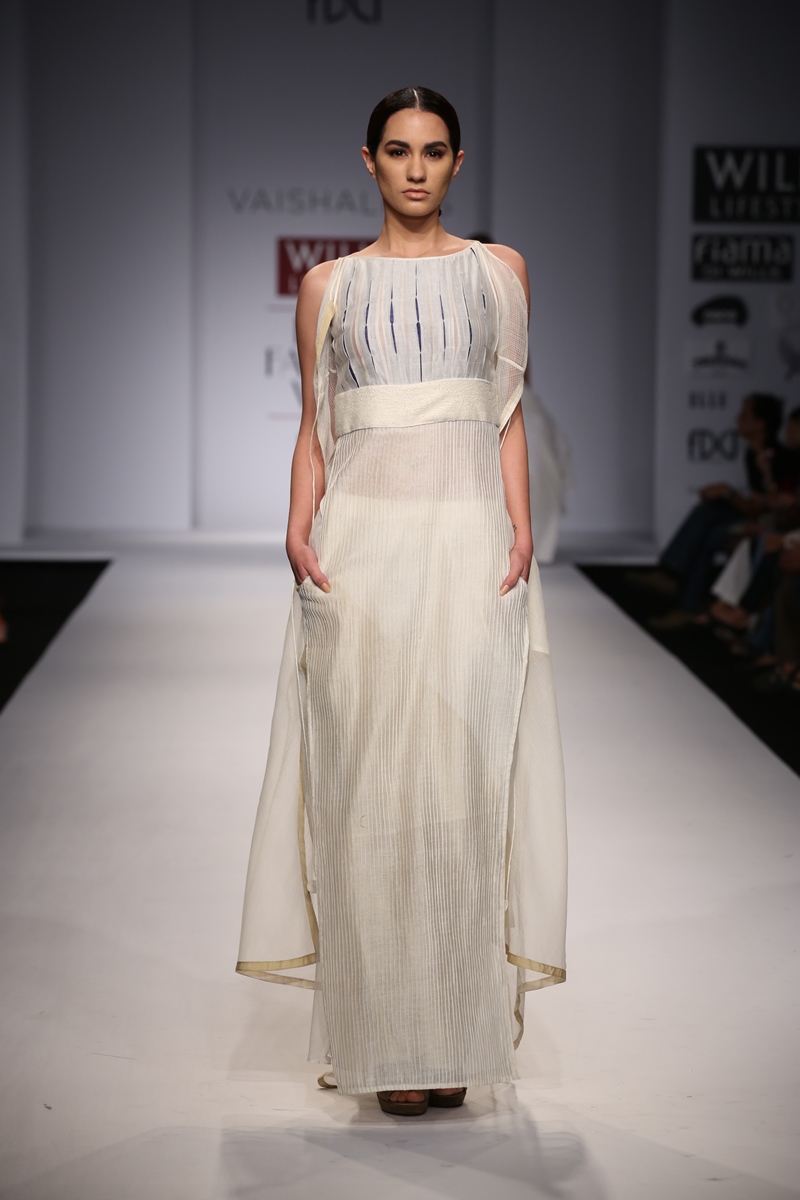 nIdeas, which blend the modernity with the vastness of Indian textiles.nThe label Vaishali S symbolizes rich Indian heritage art and craft. The brand that bears her name is anClothing line that encompasses contemporary and traditional Indian wear, Indo-western and western wear.nThe main markets the designer caters to are India, Middle East and United Kingdom.n nThis SS 2014 collection resembles silence communication between God and Human by means of pray. The colour story progresses from white, off white, blue, grey and black. Carefully chosennHand- spun and hand- woven Kesa Paat of Assam, Khadi and cotton from Calcutta has played antremendous role in the collection.n nBuyers Contact:nVaishali SnMobile : +91-9819192938nTel: 022-26430362nEmail ID: Vaishali.sstudio1@gmail.comnWebsite: www.vaishalis.comn n nMedia Contact: nVaishali SnMobile: +91-9819192938nTel: 022-26430362nEmail ID: Vaishali.sstudio1@gmail.comnWebsite: www.vaishalis.comn