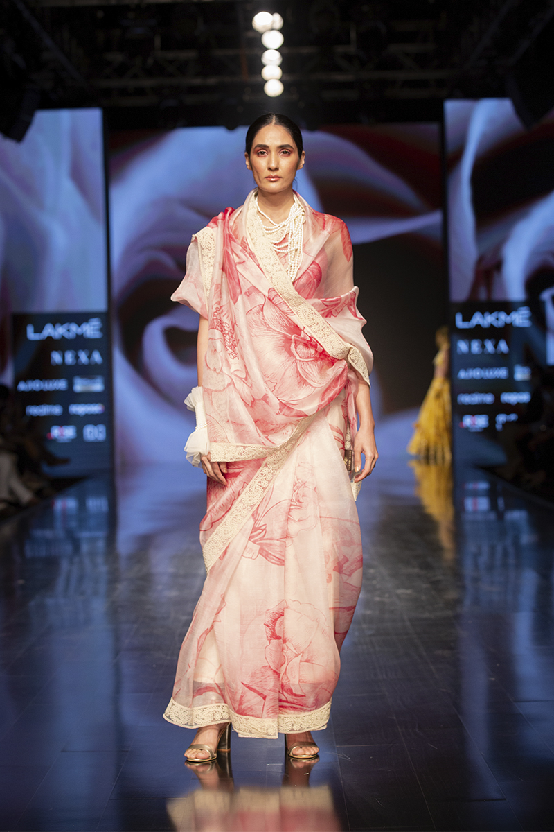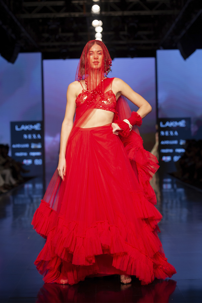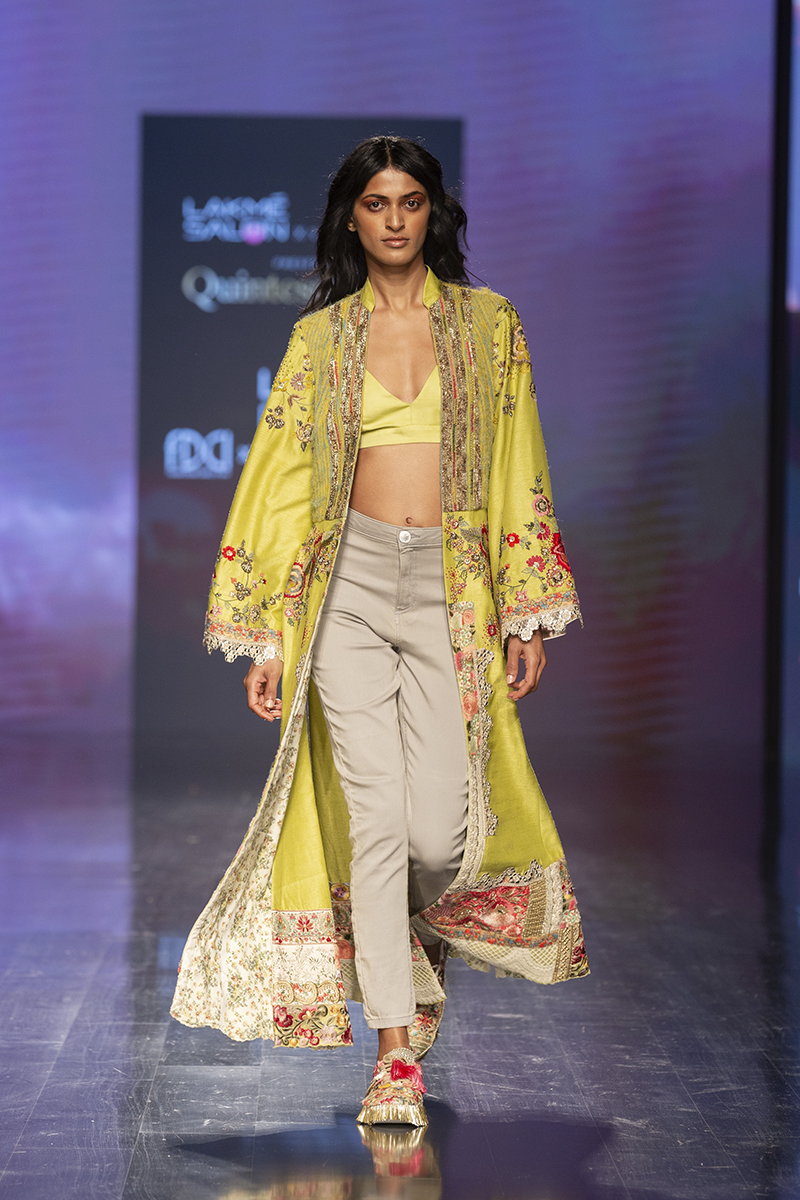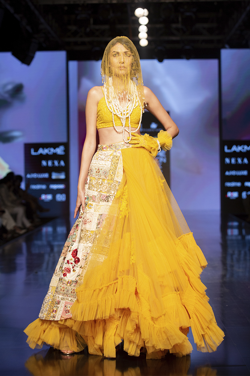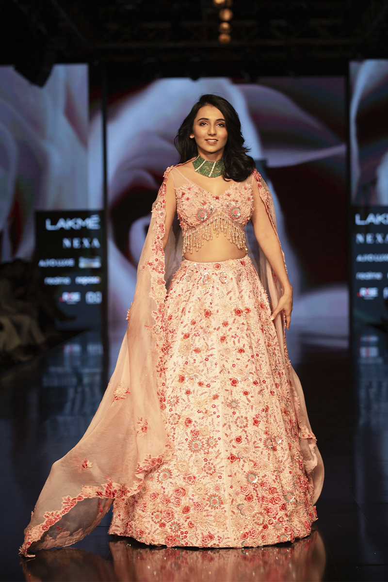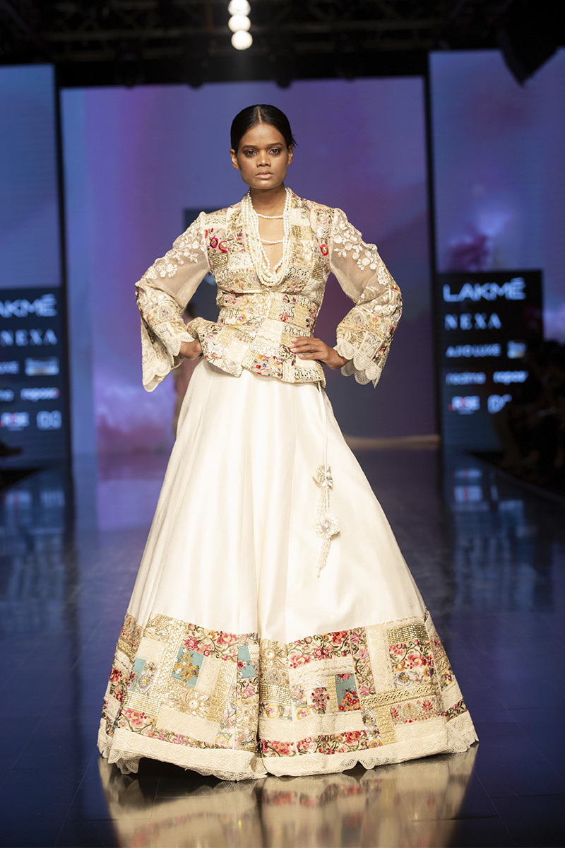His signature is about curvilinear lines and forms with a vivid explosion of colour yet absorbing the softness of delicate shapes and layers. There is an instance of redefining couture by simplifying silhouettes and giving them global appeal. Apart from Indian wedding wear, the collection can also be perceived as international couture with Indian embroideries that appeal to a worldwide audience. Redefining Indian couture, the pieces speak the language of contemporary fashion but are iconic collectibles that can be passed on as heirloom pieces. Every part is about upcycled embroidery. Like the skin has cell memory, a couturier has sewing memory. His hands work to make the same magic with a new spirit, bring forth the romanticism, and recreate the theory of love by patching memories together. Every collection is inspired by real people, design history, and a retake on traditional Indian embroideries speaking the language of global culture.