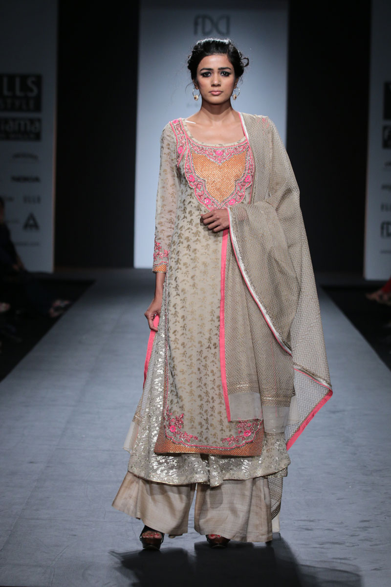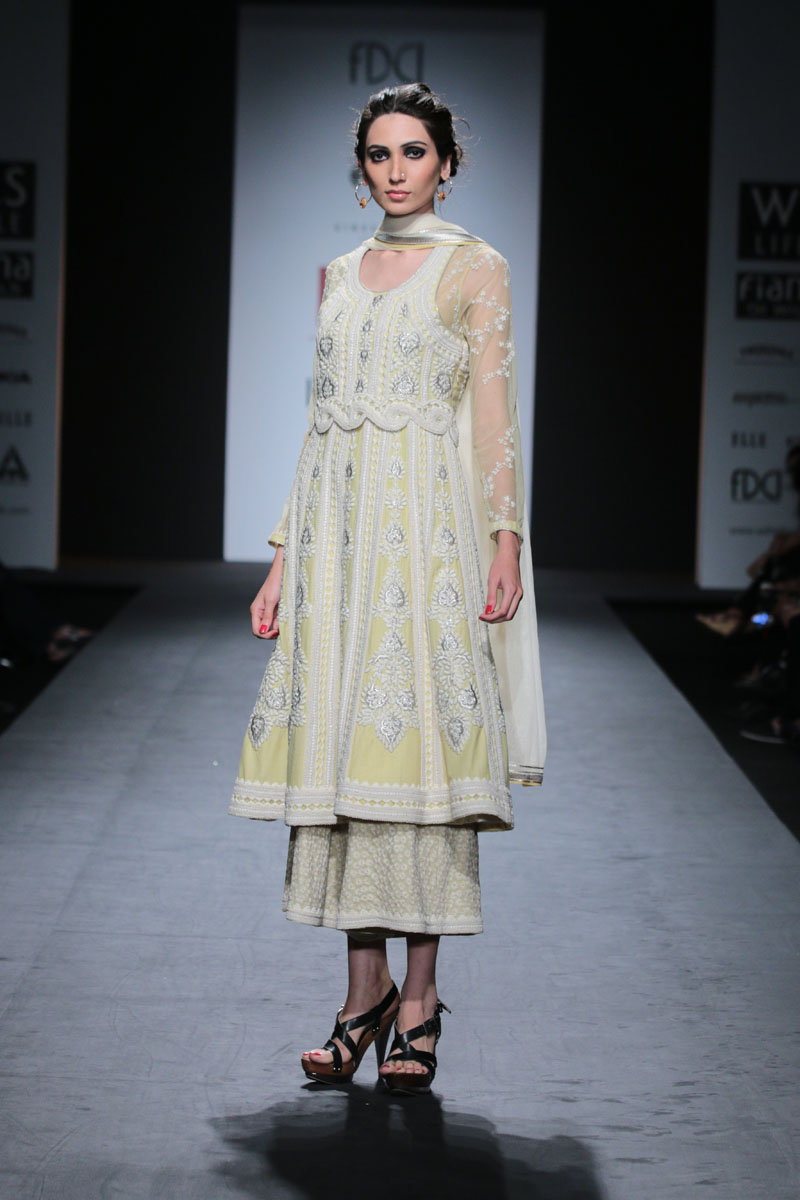 nEponymous label; a feminine wear for a global woman whos traveled far and beyond and yet is rooted in the cultural archetype she belongs to.nThe designer caters to markets in Middle East & USA.n nVineets AW14 collection is all about accepting life for whatever it brings to us and celebrating every moment without prejudice and judgment. The collection underscores the age old wisdom that happiness is in the moment and not in some time yonder. And while happiness might be a state of mind, theres no stopping her from celebrating life by way of donning happy, vibrant and colorful clothes, all of which come together in spirit and form in Utsavn nTrue to his aesthetics, Vineet designs for this season too in his trademark color palette and choice of chicest handloom fabrics. Embroideries are treated unconventionally in the sense that they are used to create textured fabrics and are not mere embellishment techniques. Old world charm is whipped fluently with contemporary detailing on silhouettes to render a yet another riveting rendition of about 25 ensembles.n nBuyers ContactnK K TiwarinT: +91 1244371141nF: +91 1244371141nE: info@vineetbahl.com nW: www.vineetbahl.com n nMedia ContactnVivek DubeynT: +91 1244371141nF: +91 1244371141nE: info@vineetbahl.com