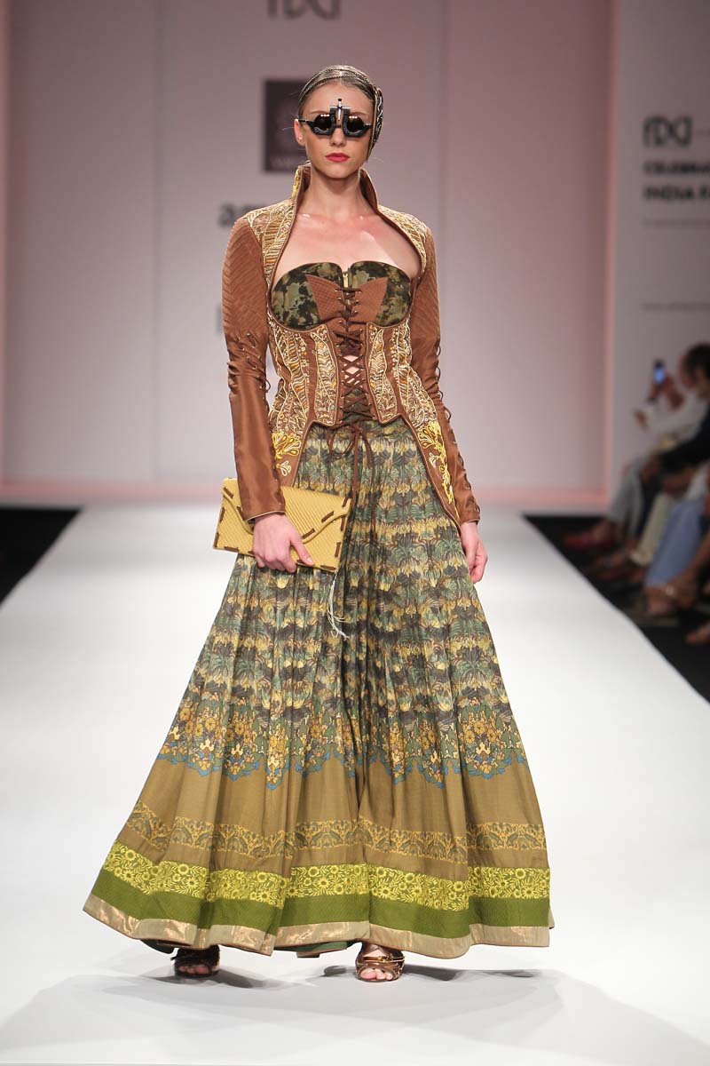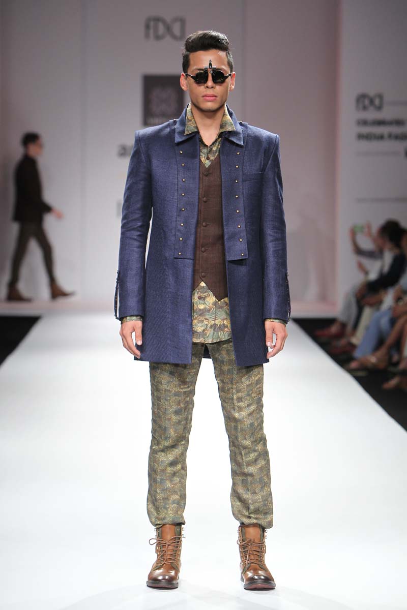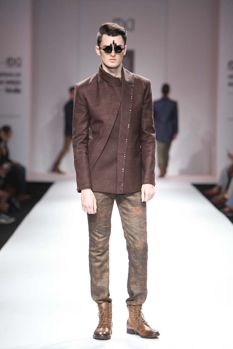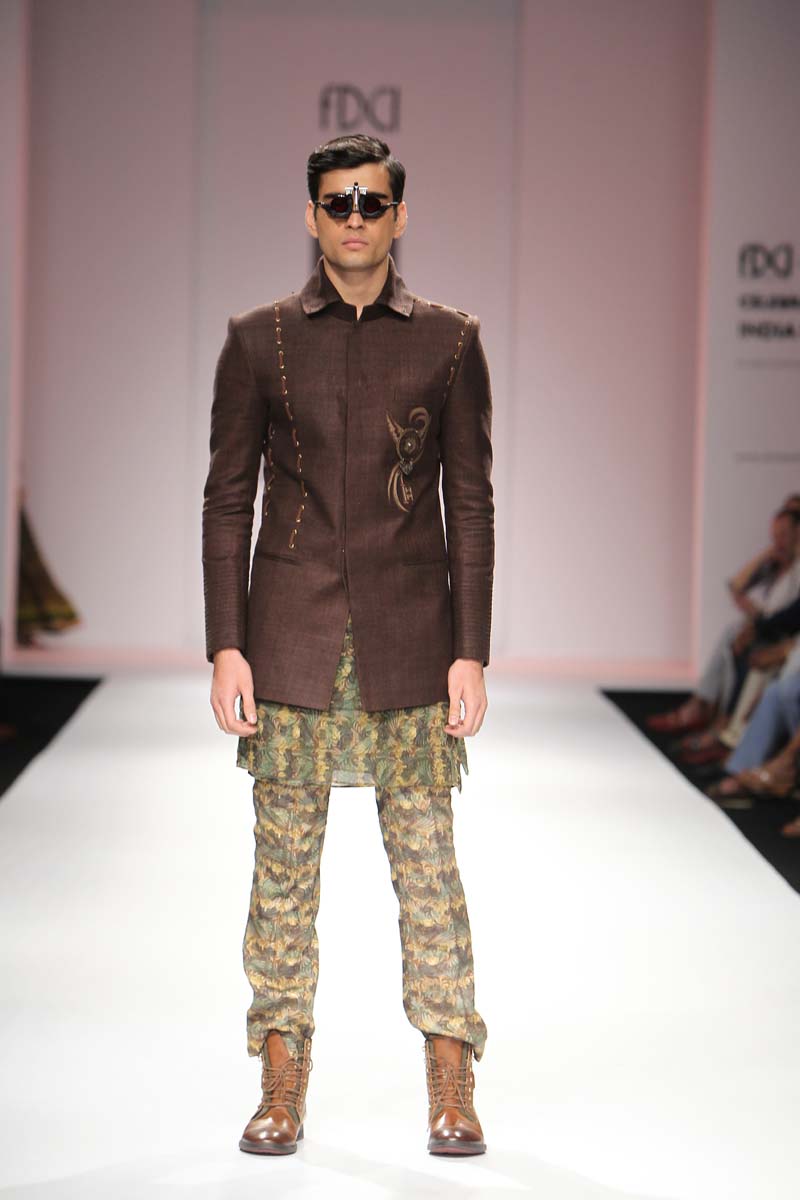 VIRTUES by Viral, Ashish & Vikrant is a premium designer label for men and women retailed at across major designer stores across the country. The brand is primarily based out of Ahmedabad, India.nWHAT DOES YOUR BRAND STAND FOR: Elegance, Quality and for women and men who love fashion with comfort and ease.nThe label caters to stores in Delhi, Mumbai, Chennai, Bangalore and Middle East.n nThe Autumn Winter’15 collection witnesses the spirit of steampunk meets military with earthy tones of greens and brown. The bold, crystallise and metallic influence is visible in long and flowy silhouettes. Soft and shubtle embroideries of zardosi ,mirror and resham thread is used of satin , georgette chanderi and tussar is visible. It is an attempt to give new dimension to steampunk fashion in Indian aesthetics’ .Camouflage and military is predominant. The collection is marked by a blending of steam punk romance with military aristocracy.n nBuyer’s ContactnAshish ParikhnM: +91 98250 69622nT: +91 79 26303086nF: +91 79 26890640nE: studiovirtues@gmail.comnW: www.studiovirtues.comn nMedia Contact nAshish ParikhnM: +91 98250 69622nT: +91 79 26303086nF: +91 79 26890640nE: studiovirtues@gmail.com