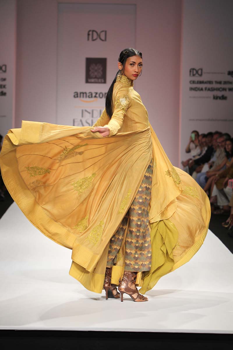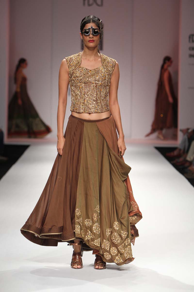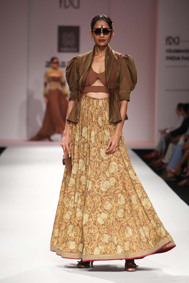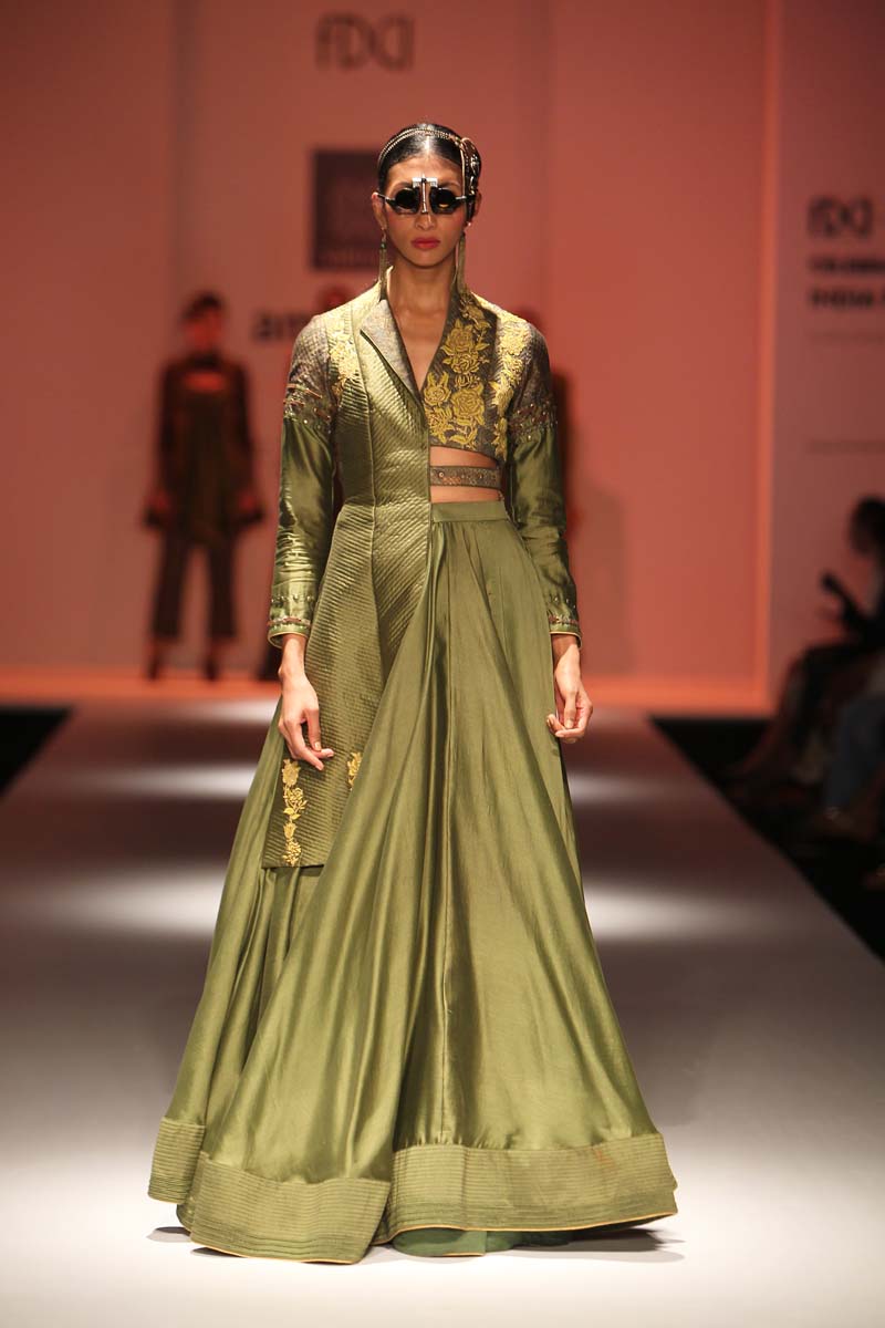 VIRTUES by Viral, Ashish & Vikrant is a premium designer label for men and women retailed at across major designer stores across the country. The brand is primarily based out of Ahmedabad, India.nWHAT DOES YOUR BRAND STAND FOR: Elegance, Quality and for women and men who love fashion with comfort and ease.nThe label caters to stores in Delhi, Mumbai, Chennai, Bangalore and Middle East.n nThe Autumn Winter’15 collection witnesses the spirit of steampunk meets military with earthy tones of greens and brown. The bold, crystallise and metallic influence is visible in long and flowy silhouettes. Soft and shubtle embroideries of zardosi ,mirror and resham thread is used of satin , georgette chanderi and tussar is visible. It is an attempt to give new dimension to steampunk fashion in Indian aesthetics’ .Camouflage and military is predominant. The collection is marked by a blending of steam punk romance with military aristocracy.n nBuyer’s ContactnAshish ParikhnM: +91 98250 69622nT: +91 79 26303086nF: +91 79 26890640nE: studiovirtues@gmail.comnW: www.studiovirtues.comn nMedia Contact nAshish ParikhnM: +91 98250 69622nT: +91 79 26303086nF: +91 79 26890640nE: studiovirtues@gmail.com