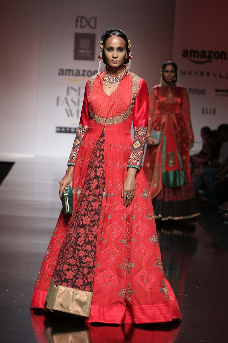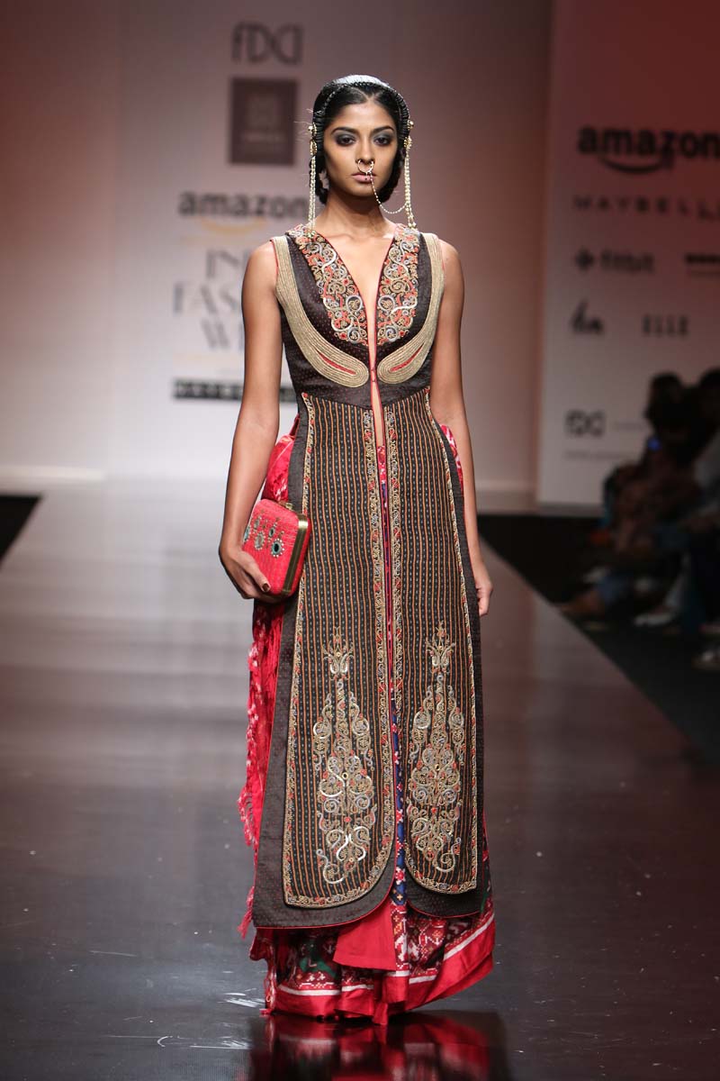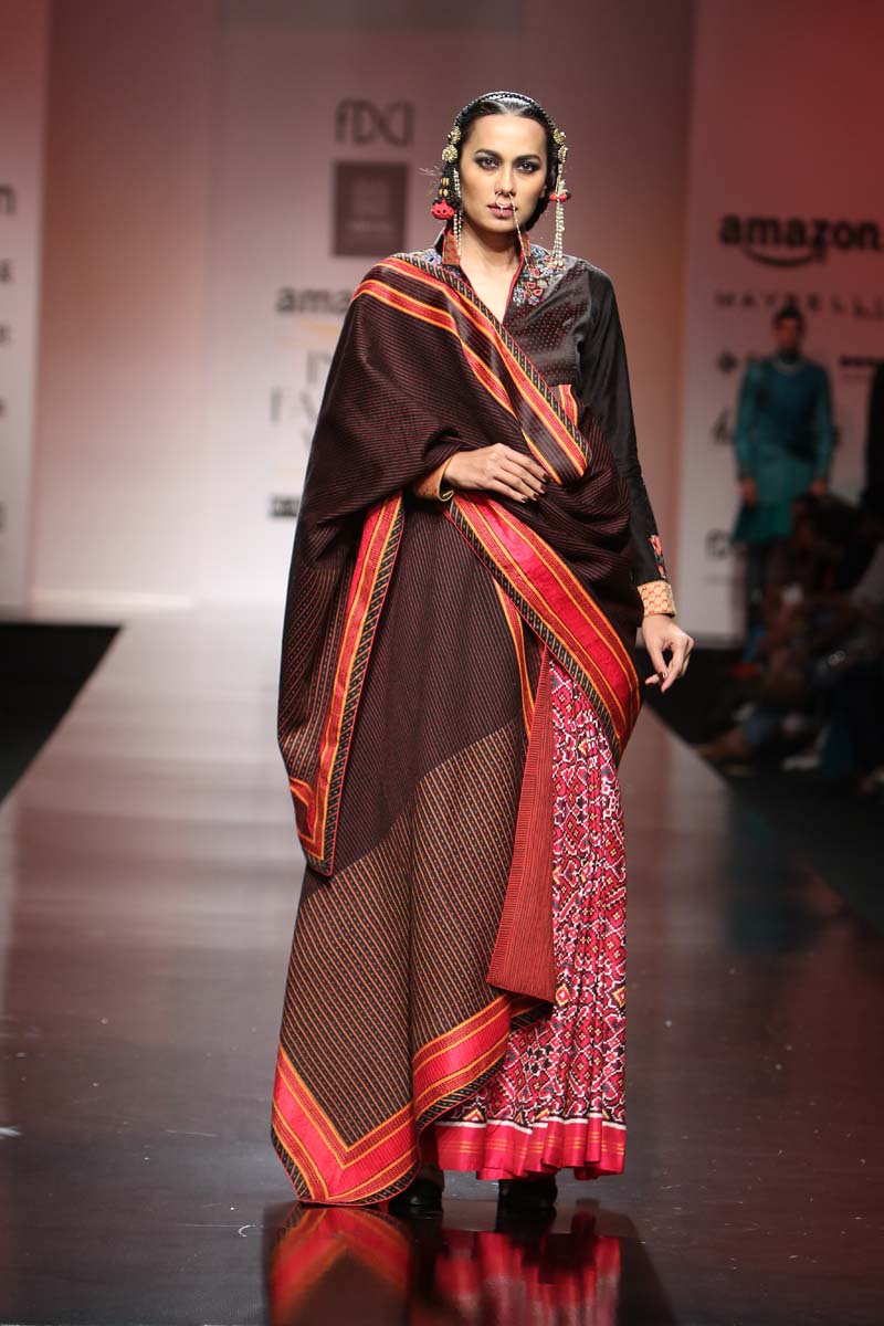 The AW16 collection depicts a new age woman: strong, confident & independent with a twist of craft revival ”MASHRU/MISRU” which means “allowed/acceptance”. The craft of weaving Mashru was an invention of Mughals in Gujarat region, with a specific weave. Where face of the fabric is silk and back is cotton . Which can also connect with the inner and outer strength of a WOMAN .