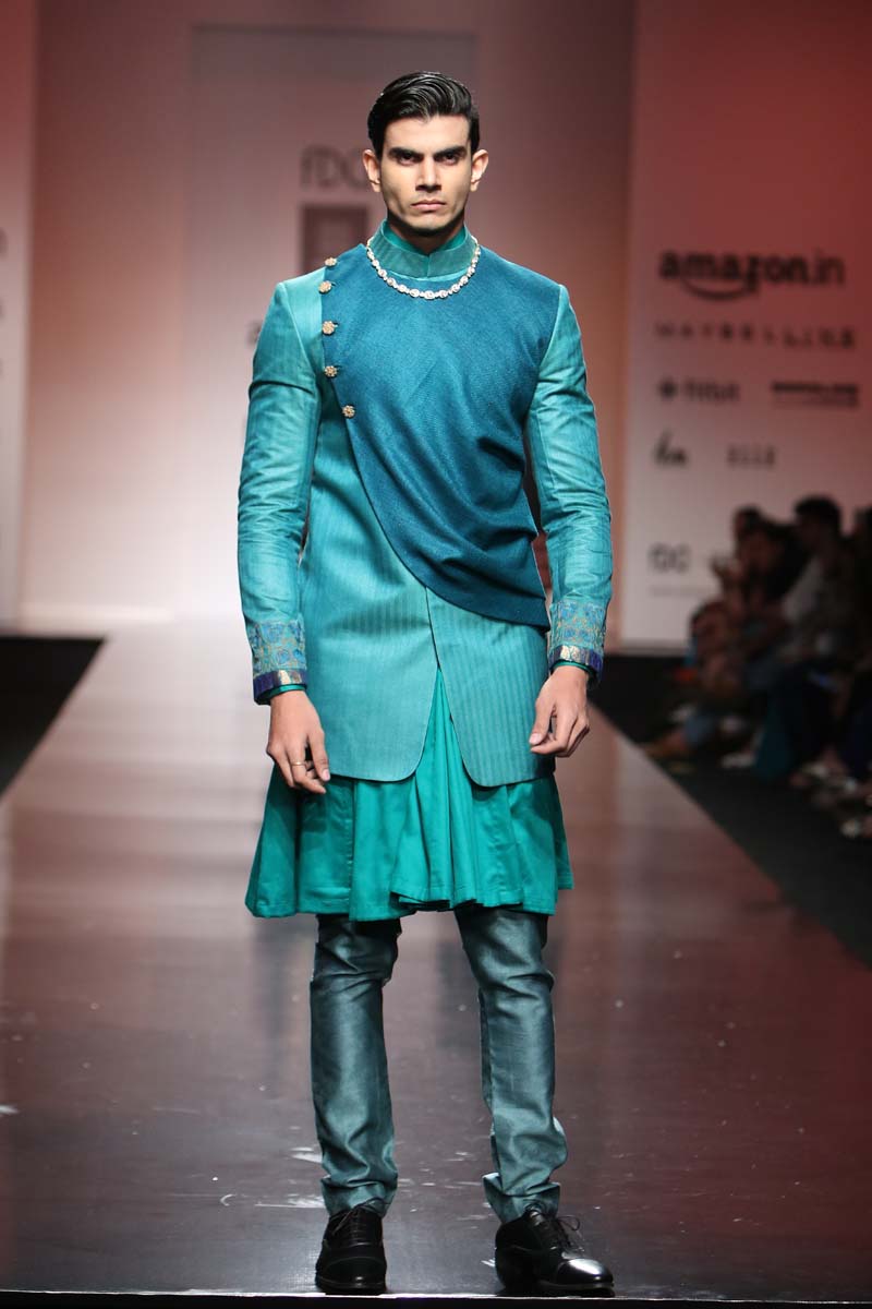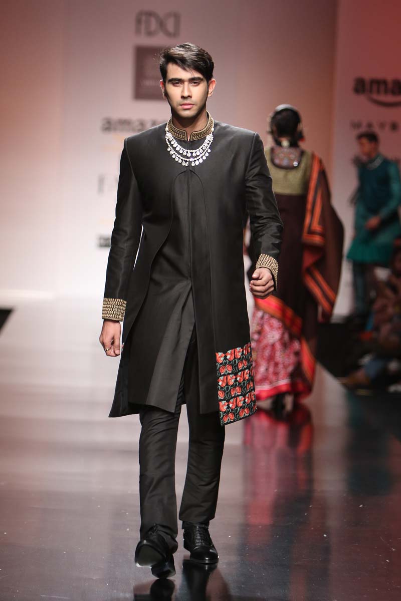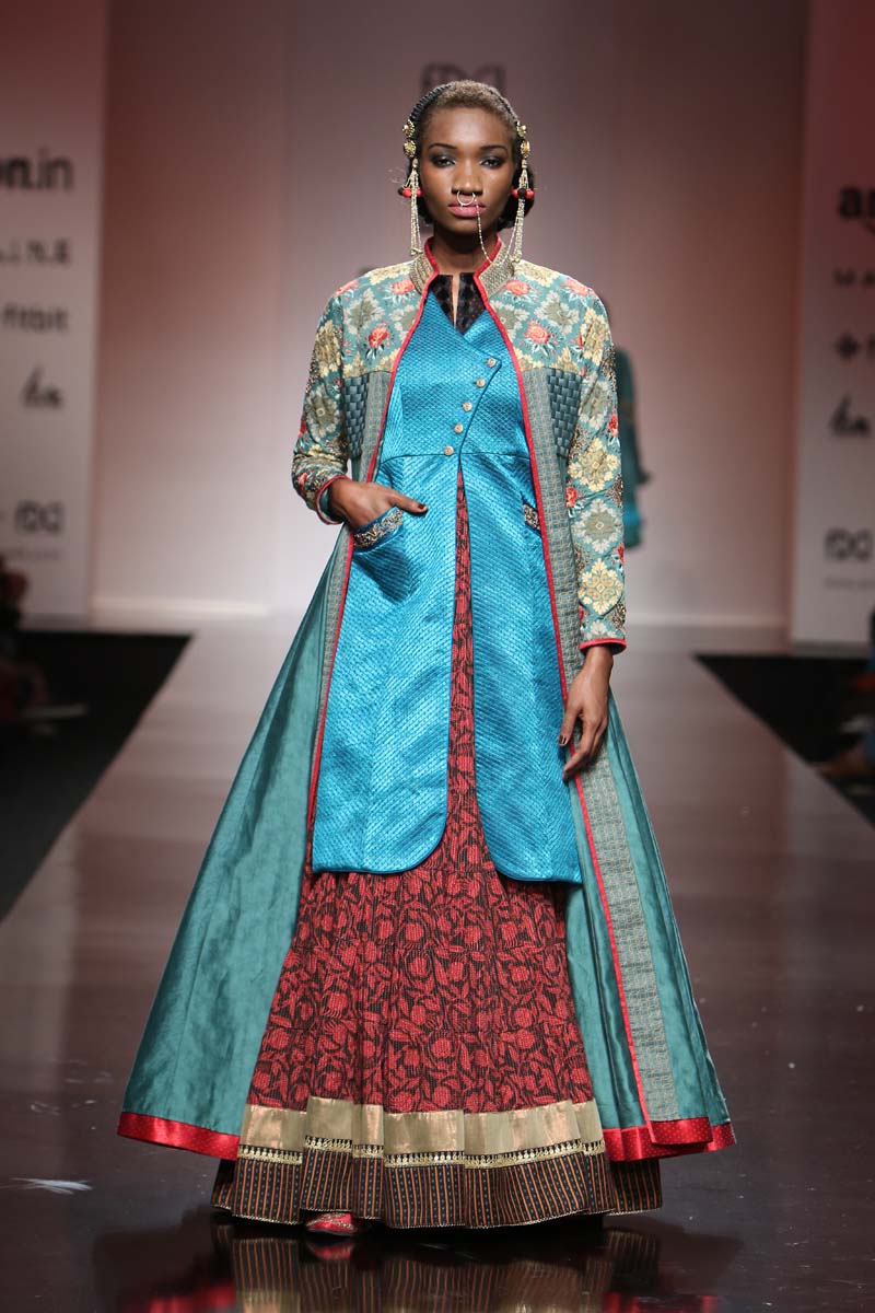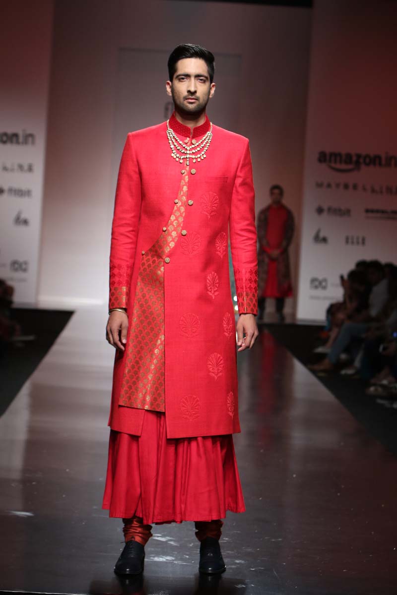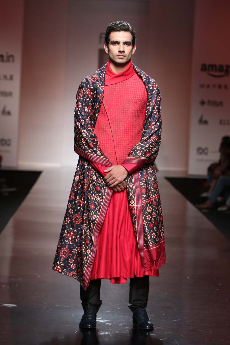 The predominant silhouettes will be Robes and Kedia Jackets with a twist of reds, jade & black as basics.