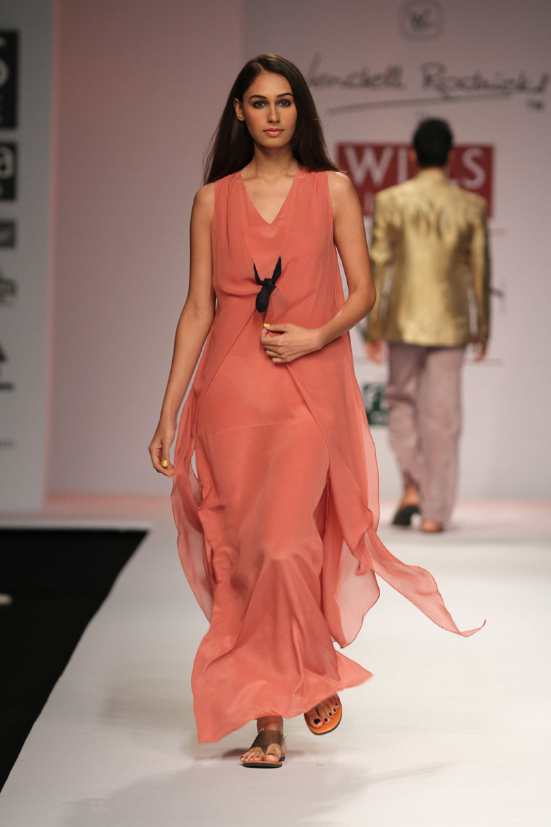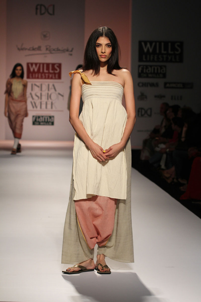 Wendell Rodricks began his career in fashion after a successful tenure in hotel management. Trained in Los Angeles and Paris, he returned to India in 1988. After a brief span of two years, designing and styling for reputed companies such as Garden Vareli, cosmetic giant Lakme and diamond corporate De Beers, Wendell Rodricks established his own label in 1990.The Wendell Rodricks signature style is unique in India, blending ancient Indian geometry with a relaxed Goan attitude. Using natural Indian fabrics, cut in a linear line, the silhouette is sheer, layered, draped and fluid. Emphasis is on concrete themes, experimental color combinations, exotic fiber weaves, structural simplicity based on geometric Indian shapes and hand-painted details. The garments are worn by a growing clientele from all walks of life that share a similar minimal, spiritual aesthetic.