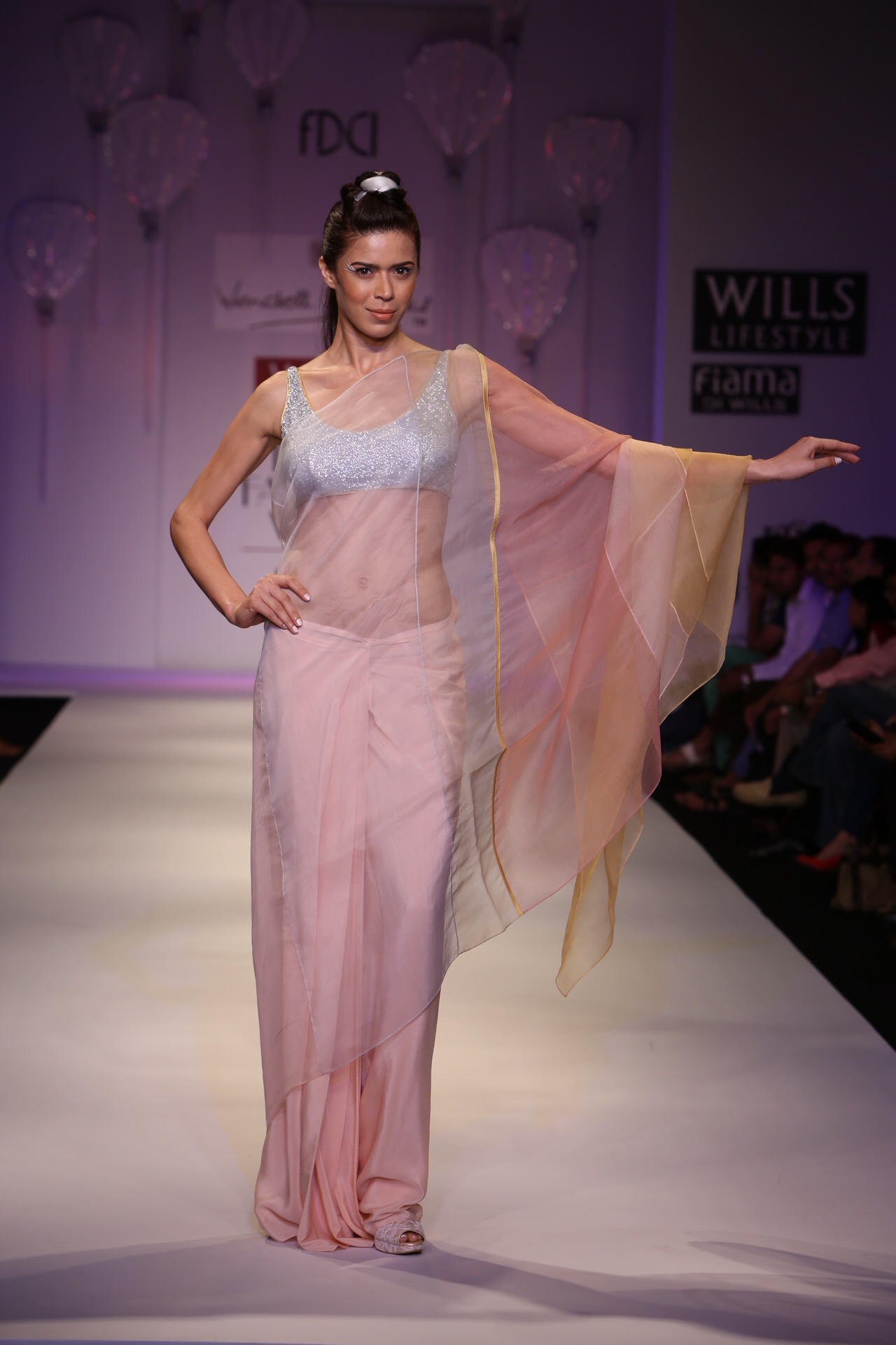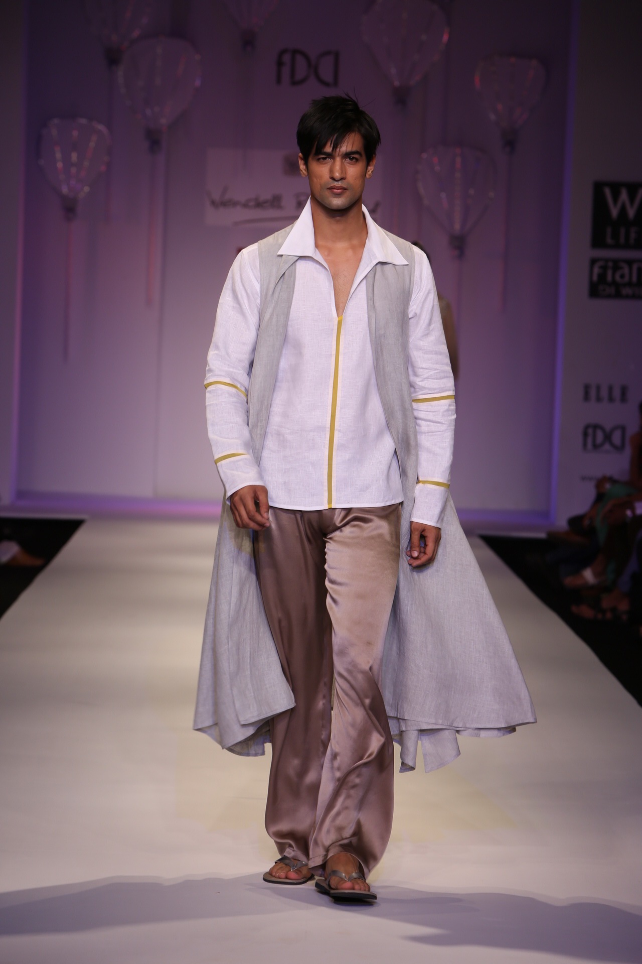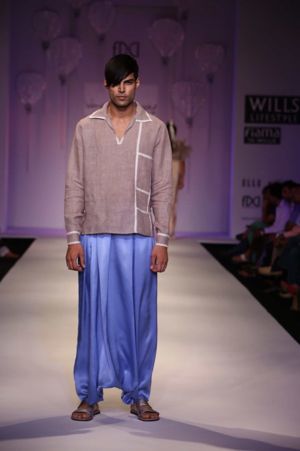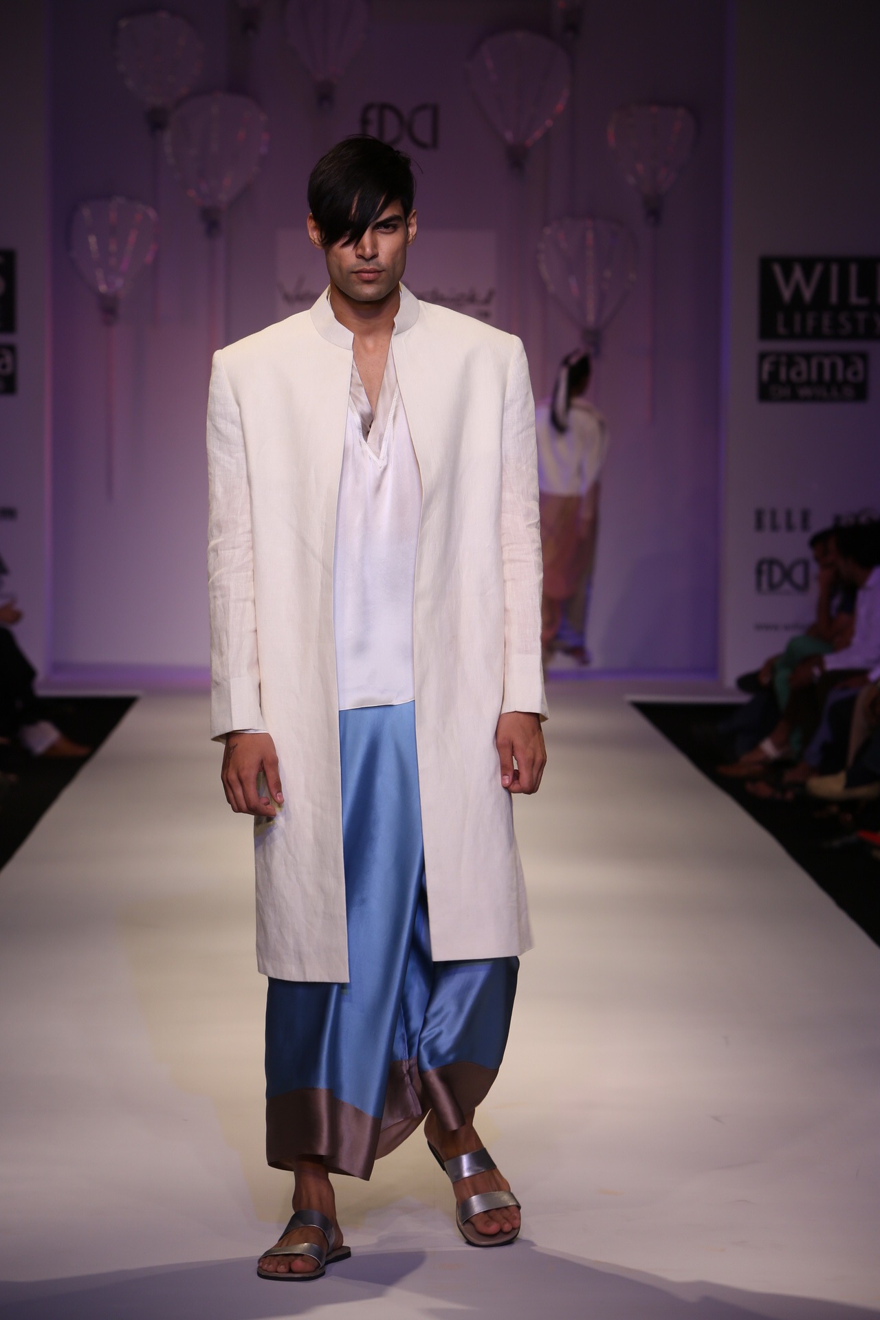 His SS 13 collection is titled ‘Ocean Orient’ and is about an imaginary 17th Century sea voyage that leaves Goa and travels to Shanghai via Macao. The collection uses a soothing melody of pastels that seduce the viewer to a distant time and dreamscape.