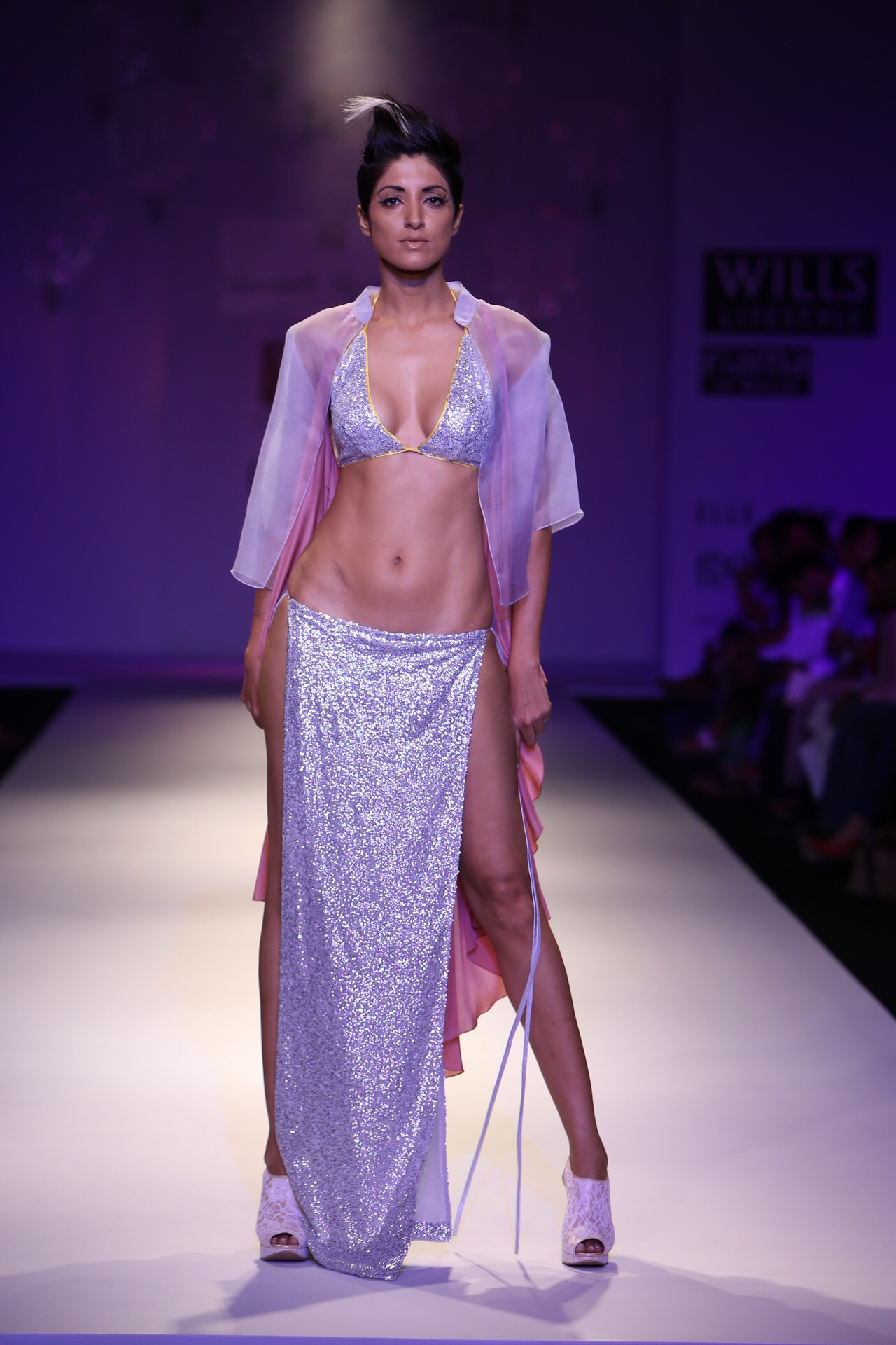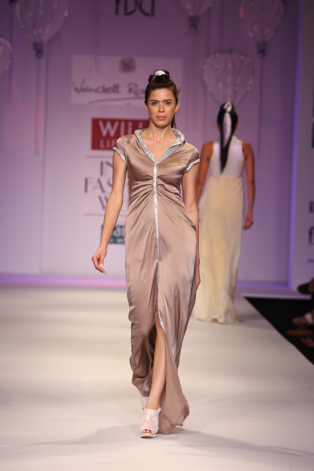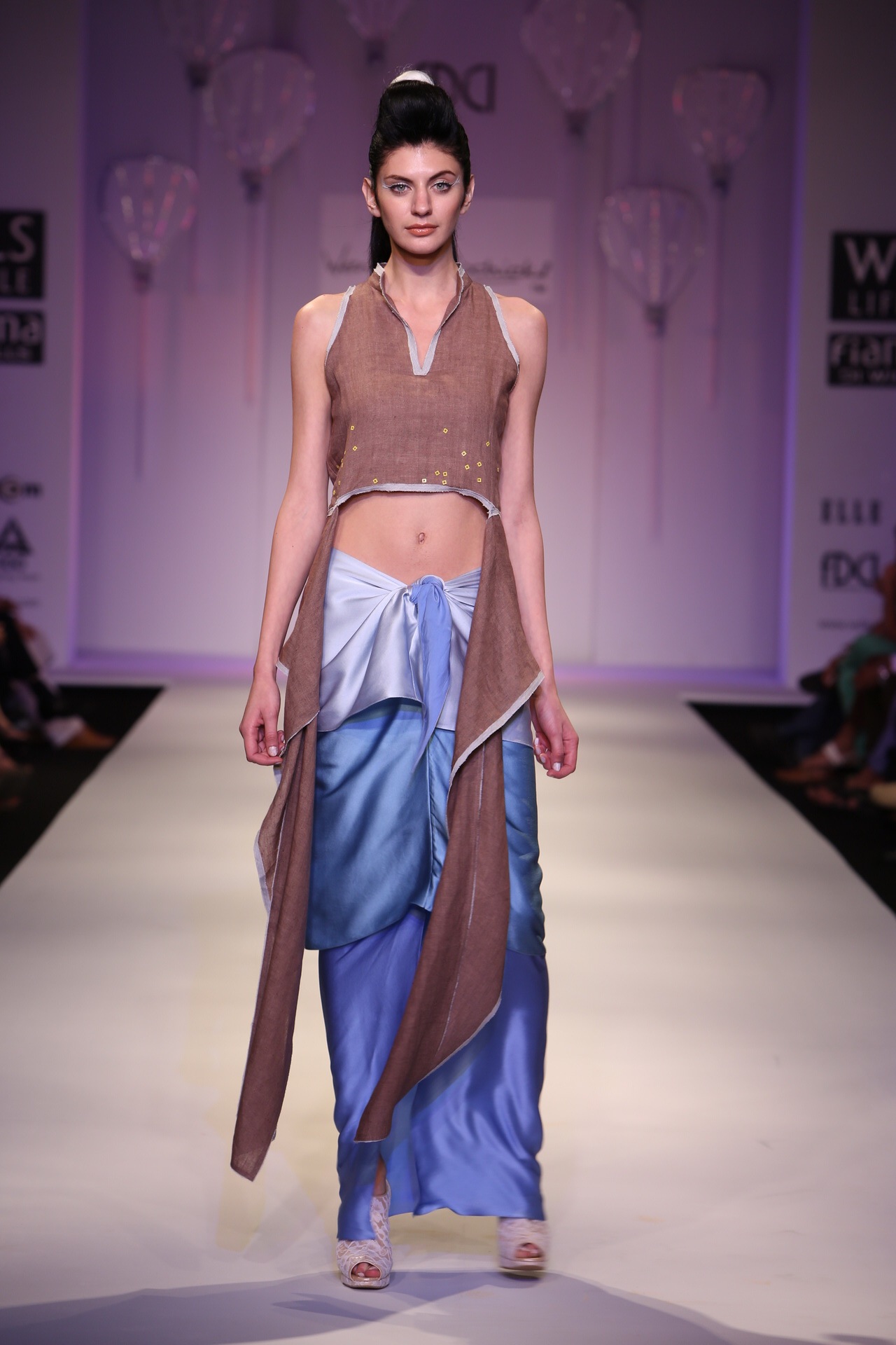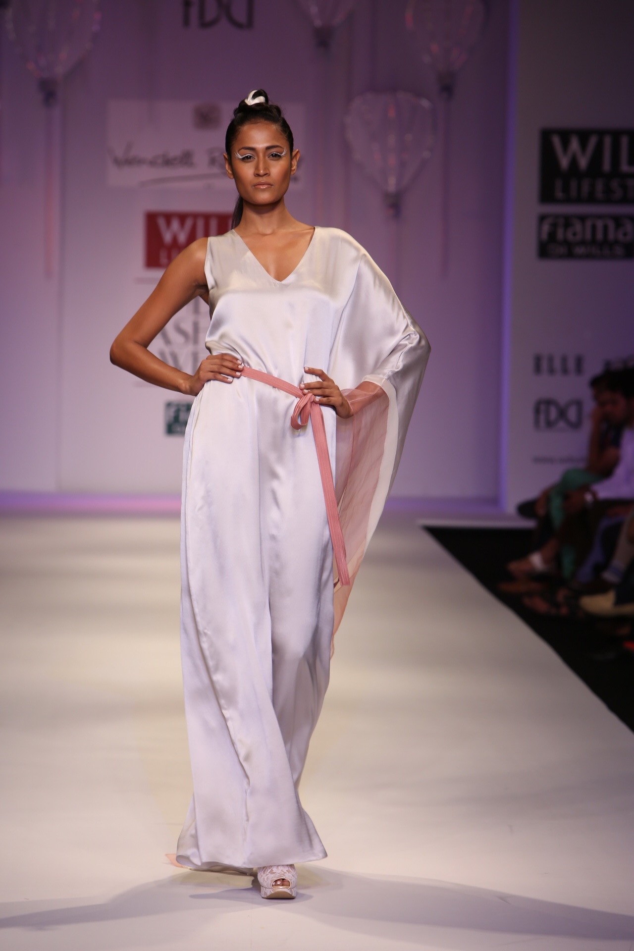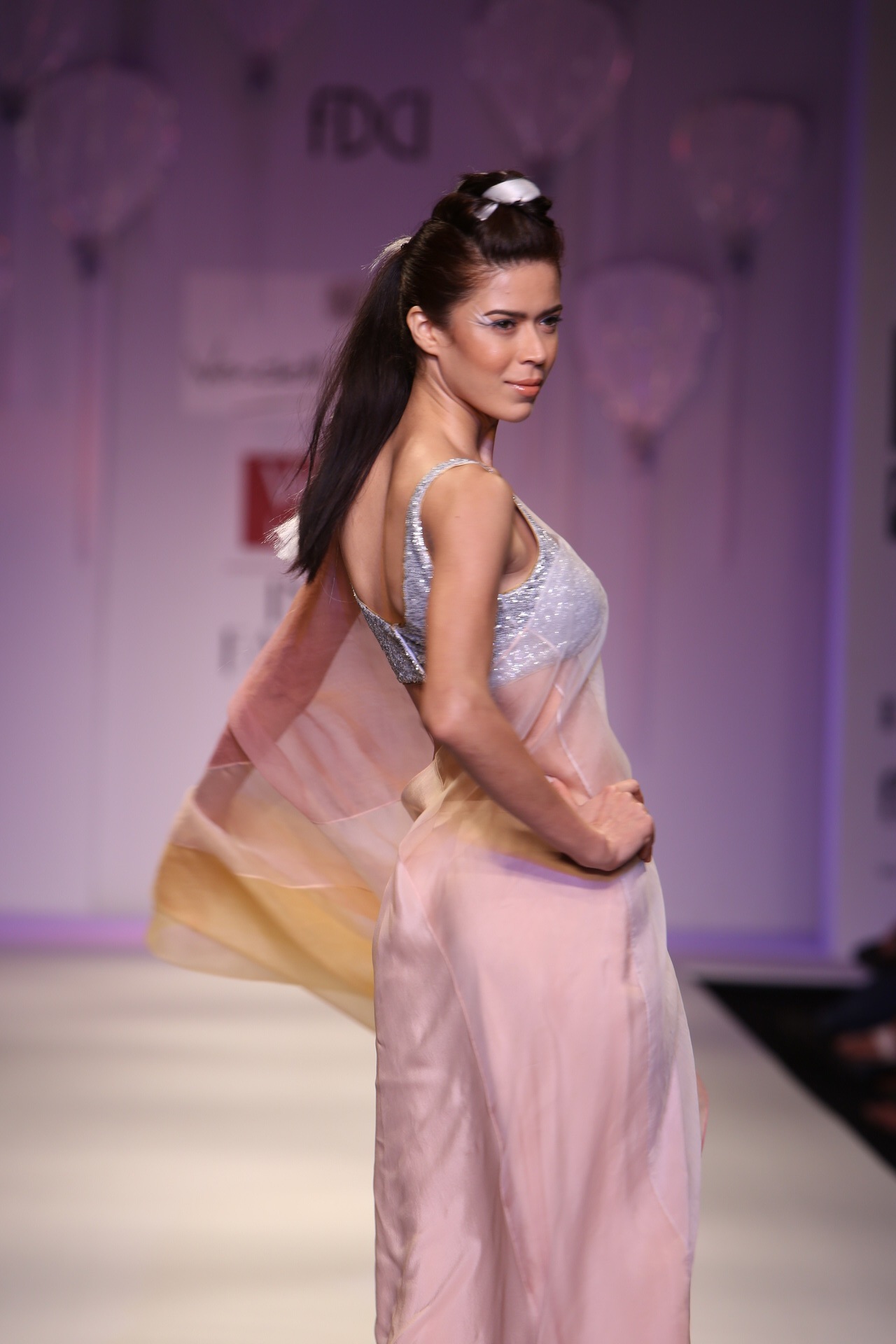 His SS 13 collection is titled ‘Ocean Orient’ and is about an imaginary 17th Century sea voyage that leaves Goa and travels to Shanghai via Macao. The collection uses a soothing melody of pastels that seduce the viewer to a distant time and dreamscape.