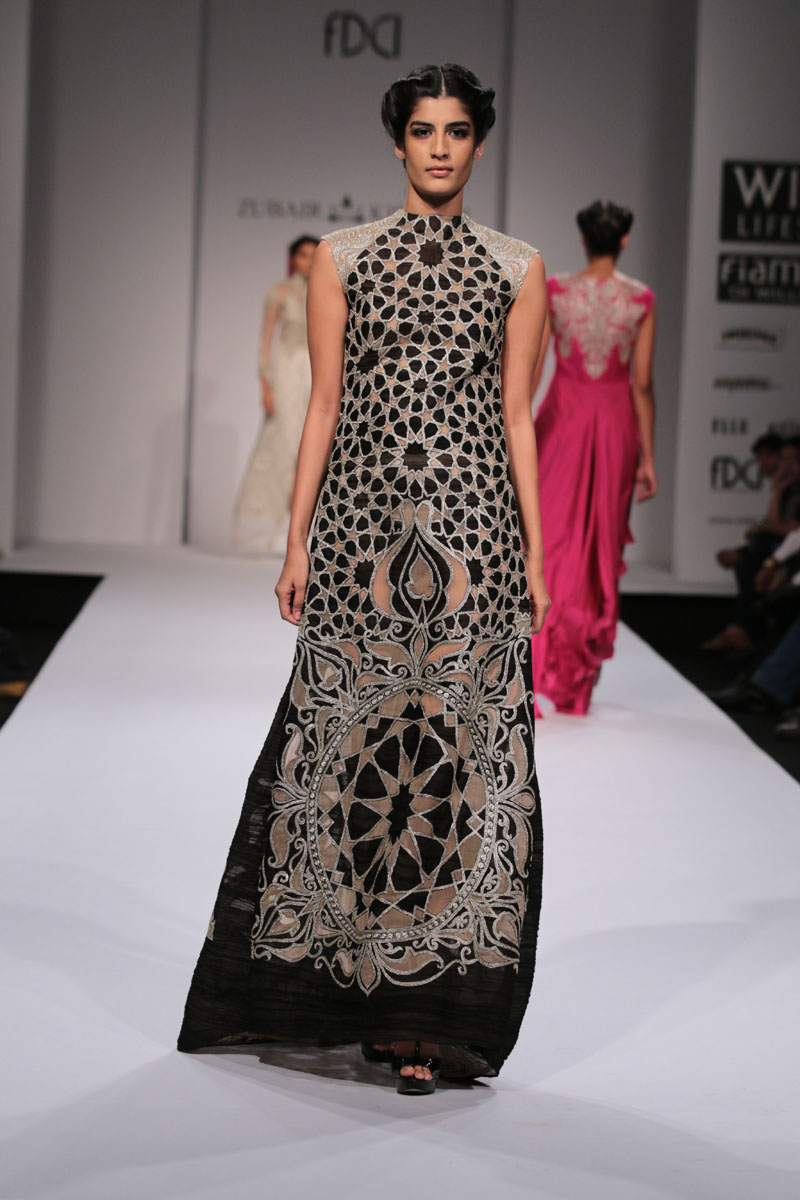 AW 14-15 he launches his label ZUBAIR KIRMANI -KASHMIR with focus on exotic Kashmiri craft Tilla .His core aim in this process is also to generate avenues of direct and indirect employment for the talented local youth. He aims towards adding value and showcasing, not only the brand “ZUBAIR KIRMANI-KASHMIR” globally, but also the eco friendly, artistic handcrafted local Kashmiri products. The basic endeavor of the label will be to incorporate the intricacies, the aesthetics, the beauty and the grace of “KASHMIR