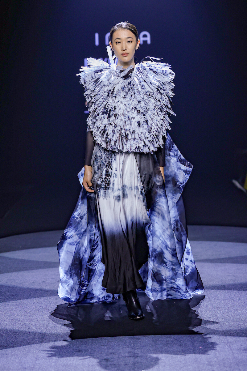 A big believer in “authenticity always works”, even though his Shibori is “made my own way, it looks real to me,” he explains. Dots, cutting in semi circles, is what fascinates him, especially what Carol Gracis wore. It is not size specific, cut on a bias, and takes the shape of the wearer’s body. “I am a textile addict, so Chanderi, linen and silk, organza is what works for me,” he says.
