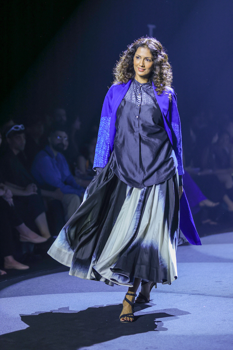 Interestingly, he admits, Inca his brand is an exercise in “self-indulgence”, he does one size clothing, this time he added a bit of structure. “I love reversible things, like my jackets, traditional Leheriya got new colours, broke the lines, added vintage textiles, mixed it up. Then we added animal prints with hand blocks, which added depth. I do not like flat clothing,” he adds. His show had 90s supermodels—Carol, Indrani, Nyonika, Sheetal, all the beautiful women he wanted to dress when he began his career, today he got that opportunity.