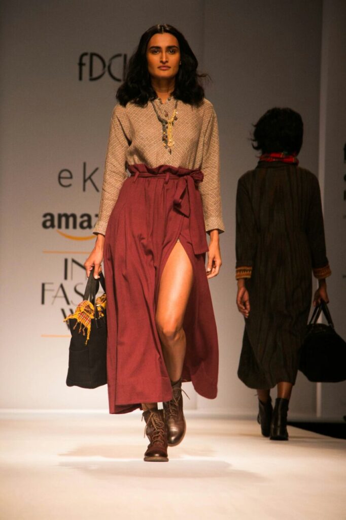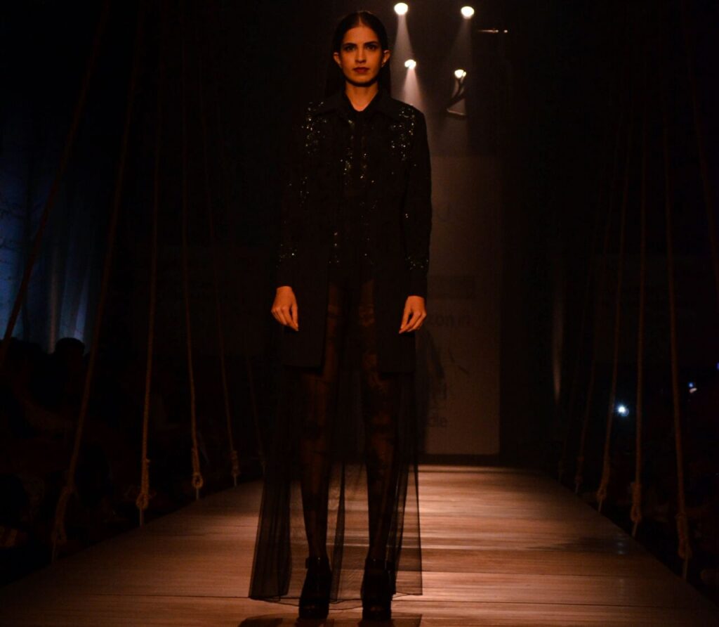 Nidhi Ahujas quiet fortitude gets a vent in her deft pattern cutting and robust knowledge that she attained at NIFT; her free thinking ways, love for textures and innovative techniques is what gives impetus to Pankaj and Nidhis autumn-winter line Rouge Minerale By Asmita Aggarwal