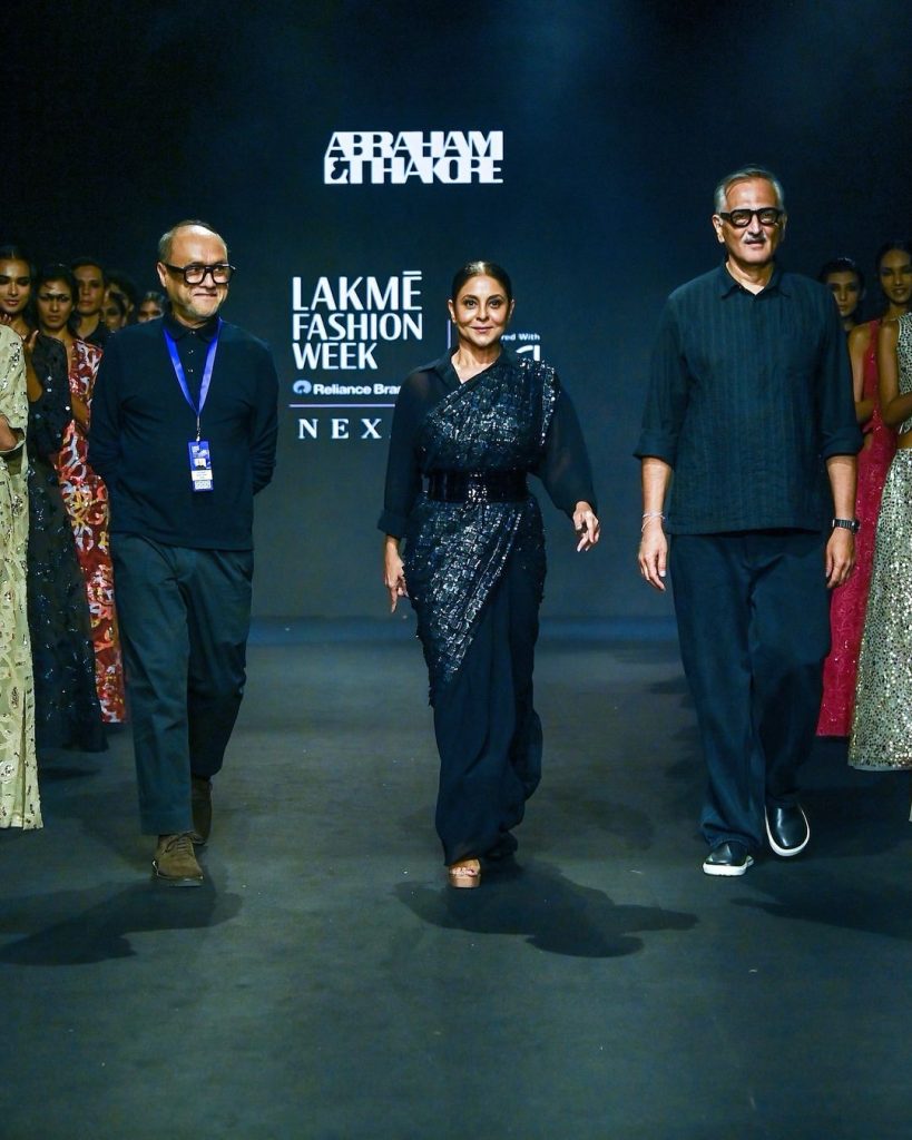 Discarded cassette tapes, toffee wrappers, bin bags are now RTW and make for new-age embellishment, as the trio Thakore, Abraham and Nigli tell us “What we buy and how we buy” is of brevity at their LFWXFDCI show. By Asmita Aggarwal Shefali Shah is a thinking actress, chooses her roles, is known for plain-speak and this authenticity of thought has won her a legion of followers. Just like A and T she is a natural, thus a perfect show stopper at the LFWxFDCI showcasing on Day 2. Three seems to be the lucky number for David Abraham, Rakesh Thakore and Kevin Nigli even though the third member is often a silent partner. The NID, Ahmedabad educated designers have seen the trials and tribulations of an industry from its infancy, maybe that makes them more resolute to doing what they do. Their leitmotif began with pursuing textile and has this season moved on to celebrating discarded materials—very Japanese in their thinking—using broken, damaged pieces to create something brand new. “The idea of using traditional craft, techniques or reinventing materials in new and unexpected ways that are both modern and now has been the concept this year,” says Thakore. Unspooled cassette tapes are woven into organza, chip wrappers are now knee-length dresses with laser-cut sequins which you will never know is from X-rays and believe it or not cement sacks are refashioned as evening gowns. That’s not all gunny bags, toffee wrappers, bin bags, kitchen foil and rice sacks can now be worn for your next lunch date! While working with discarded materials key is employing innovative techniques to give them a new avatar, but it can be limiting as the raw material is not chosen but procured. “We have used various found materials from cement sacks, X-rays, old cassette tapes and plastic shopping bags. The challenge was getting them cut into shapes that could be used for embroidery or to embroider onto fabric,” says Abraham. David Abraham as creative director decides the general theme for the season, Rakesh Thakore works on colour palettes and woven fabric. Kevin Nigli oversees merchandising and production. “While we generally agree on most things, if there is a difference in opinion then popular vote counts! It has been 30 years almost so it has worked with each one finding their spaces,” smiles Nigli. After three decades in the business of fashion has it changed for the better? They believe it has grown enormously from a single boutique like Ensemble to many multi brand outlets today. “From a handful of designers to a vast fashion community, from traditional bridal wear to a huge choice of ready-to-wear… and from a miniscule market share to a large consumer segment that is aware and wants to consume fashion,” says Thakore. Sustainability is today an “abused” word and do consumers really understand it, even though there is rampant greenwashing. They agree, “sustainability is over used, the very concept of fashion is not sustainable in the fact, it demands constant change every season.” What is important, they say is to consume mindfully, “what we buy and how we buy. If we want to be sustainable then we need to invest in clothes with a longer shelf life, be willing to pay more or things that have value, can last,” adds Abraham. Often called the masters of minimalism, more lovers of everything natural, ingrained in our culture and ideology, they believe in minimalism in that less is more, “that you can speak without having to shout, that the extra sequin may not be that necessary.” They love anything done by hand, especially block printing and Ikat, their signature. “We have explored that over the years and constantly try to push the boundaries on these. In a world of mass consumerism, true luxury is small quantities done with the power of the human hand. It celebrates its inconsistencies as something beautiful rather than a fault,” says Thakore. Their biggest weakness they confide, they did not also learn business management, which is a whole different thing to the purely creative process, ultimately no matter how beautiful something is it must be marketed and sold eventually. “The fleeting trend buyer, hopefully he will grow up and become a customer eventually,” they say in unison.