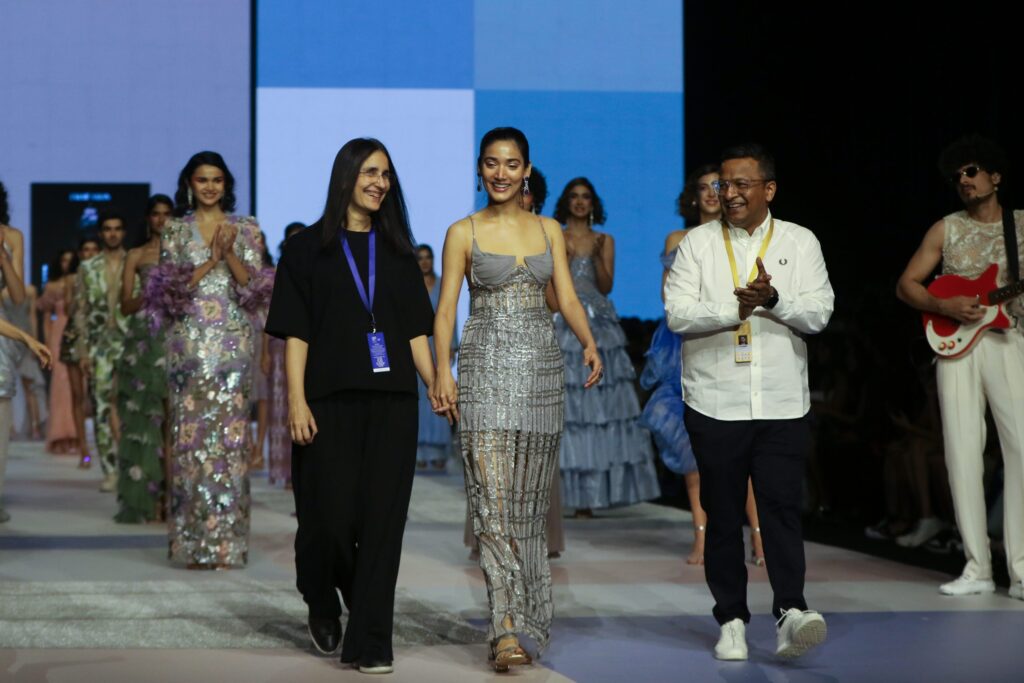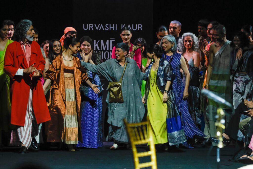 Urvashi Kaur had all the makings of a hit showa bevy of intellectuals from Ratna Pathak Shah to Rasika Duggal as well as relaxed clothing armed with natty wraps, coppery saris, easy tie ups that announced the arrival of a comfortable spring, as she completed 15 years in the business of fashion! By Asmita Aggarwal Maybe the biggest support system for Urvashi Kaur has been her artist mom, who is always seen silently sitting or watching the show. But this time, the ex-army chief General J J Singhs wife Anupama was on the ramp, dressed by her daughter, in a long carefree bandhani dress, with vibrant shades of magenta to match her vivacious personality, as she smiled and clapped for her on the runway at the LFW X FDCI 2024 showcasing. Kaur decided to be back with a bang, and celebrate her 15th year in the style business with everyone who maybe stood by her on this tenacious journey of ups and downs. As her septum ring took centerstage along with the barefoot musician, who enthralled us with his flute to ghungroos, and of course dreadlocks, Kaur was telling us all that relaxed is the new cool. And the new cool is also Ratna Pathak Shah, the actress who choses intellect over box office slavery much like her other showstoppers from Manto actress Rasika Duggal to Masaan star Shweta Tewari and even the lovely Tilottama Shone, they all wore her free-spirited checks and tiered dresses that caressed the runway. In all terms, the show was inclusive tall, short, oversized, bearded, bald, bespectacled, turbaned, Kaur didnt leave anyone out of this myriad mix, as her dhotis graced women and men both creating a unisex wardrobe, frankly the future of fashion. The play of exaggerated collars, double collars, wrap pants, tie ups, asymmetrical dresses, risqué bustiers as well as metallic everything from pants to coats and cover ups, her love for copper and gold was evident this season. Sari and pants, in neon, layered dresses, play of hems, models reading books, content creators, stylists like Gautam Kalra making their way on the runway along with a turbaned model carrying a Lulu Guinness-esque Lip bag, who famously exclaimed, My red lips are my signature, my trademark, sparked the lip clutch craze. The play of stripes was extraordinary by Kaur, and Ratna Pathak doing the twirl for us was fun too, so was Shwetas brocade ink blue coat, however, the message was chill—be yourself, embrace your flaws, dress in subtle shine. The fabric bags, along with comedian Mallika Dua were artsy and so was Kaur in her grey dhoti with a buttoned down shirt as she did a little jig for us to tell us, I am happy to see what I achievedI made women super comfortable!