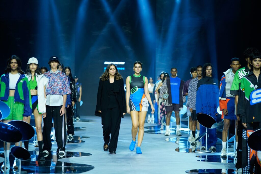 Remember The Jetsons, and the 90s trend Vaporwave? Kanika Goyal brings that shiny high gloss vibe to the line she has designed for the American brand Skechers. By Asmita Aggarwal After four years at NIFT Delhi and then Parsons New York, where she studied for two years, Kanika Goyal was ready in 2015 to launch her label. And she says with a giggle, I am a very happy person, so clothes are a good medium to share my joy with others. Kanika runs two label, KGL (Kanika Goyal Label) a bit exclusive and Kilogram aimed at the mass market, now she has embarked on a new aesthetic, to be the only designer to be hired by Skechers, the California-based comfy sneaker company to design a line of apparel for India. The show is theirs, she corrects me, adding, and the creative direction is mine. Almost 16 articles and 31 looks were launched at the LFW X FDCI 2024 showcasing in Mumbai, for spring summer, taking you back to the era of the nubile Britney Spears crooning Kiss me baby one more time, of the 90s when the pop star was a sensation and could be seen on every billboard. It was the pre-internet era, I would say it was rather bold, for Sketchers it is more of a fun take on the 90s fashion, a Y2K appeal. Thus, you see the pop art, checkerboard patterns, logo mania and lots of colour blocking, says Goyal, as she reveals she started with athleisure when she first launched her label almost nine years ago. She has paid a tribute to Vaporwave aesthetic outfits, which are futuristic, think chrome, shiny robots, flying cars, and metallic shoes, as if you are The Jetsons (George, his homemaker wife Jane, and their children, Judy, and Elroy, have a robotic maid, Rosie and a talking dog, Astro). These sometimes random trends which are said to be back in 2024, are an offshoot of the electronic music scene, visually it is all over the place— it has elements of techno, retro and futuristic. Think VHS tapes, gaming graphics, pixelation, school logos and The Simpsons. I call it nostalgia with an effective colour blast, says Kanika who has added glitches, cyberpunk themes, geometric lines and peppered it with eye-catching neons. The key to what she has done for Sketchers is mixed comfort with style, as generally the shoe is considered a boon for a certain older generation, but Kanikas intervention is making it cool for GenZ. The apparel is relaxed, oversized, and she added parkas, bralets, dresses, cropped jackets, trench coats, T-shirts with a more youth centric approach, with separates so you mix and match. Fashion is cyclical and even though I love architecture, and the 70s, I feel this collection has really brought me back to the 90s which are making their presence felt everywhere—movies, to fashion, she confides adding that these sporty ensembles can take you from day to night. Tangerines, emeralds, aquas were merged with metallics in high gloss, to give the entire collection a high sheen look, a kind of over-the-top appeal. You can wear it on vacations, even though it is performance wear, it has a distinct lifestyle element to it, she confesses adding that her approach to this has been individualistic, in some ways an extension to what her brand stands forcool graphics and a chill vibe.