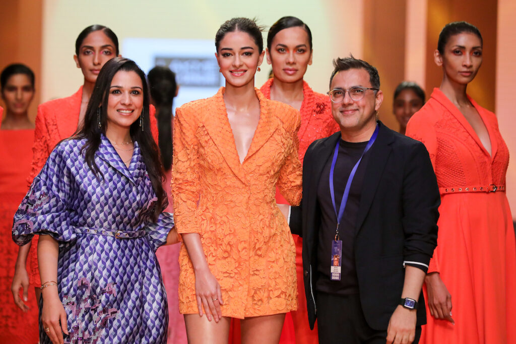 Applique is rendered on boxy kimono shapes reminiscent of Japan, a recurring leitmotif in Pankaj and Nidhis collection. While Paras and Sonam Modi combine their signature stripes with Chikankari, channeling less is more! By Asmita Aggarwal