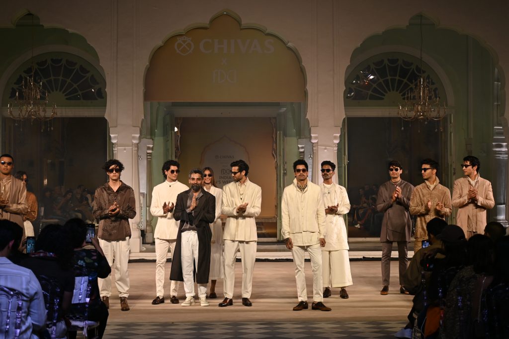 Arjan Dugal’s line ‘Vintage 2030’ combines modern design engineering with traditional Japanese motifs, as zardosi and florals become the hero at Chivas Luxe Collective Perfumes presents FDCI India Men’s Weekend 2025 at Diggi Palace, Jaipur. By Asmita Aggarwal He kind of worked both sides of the fashion spectrum — his father’s export house, his mother’s love for textiles and indigenous crafts. Maybe that’s what makes Arjan Dugal so confident about his menswear line he launched ten years ago. Son of the country’s leading supermodel of the 90s Simar Dugal, who died battling cancer, Arjan was just 28. After studying economics and finance in Dallas, US, and a remote fashion course from Parson’s School of Fashion, he decided to foray into this unpredictable world. His father’s work made him adept at stitching, pattern cutting with the best ateliers in Spain and Italy. He designed for Tommy Hilfiger, Ted Baker, Pepe Jeans, Pedro to Claudia Strater. The imposing frescos painted sunshine yellow, the chandeliers almost 200 years old once maybe lit with candles in 1860 when it was built. The stained glass windows, Persian carpets, bevy of boys, with golden hair clips and bulging biceps (not beer biceps thankfully), came in skirts, as the maharaja of yesteryear’s black and white portrait hung above watching the show unfold. Arjan’s love music and pops of red playing peek a boo from ankle length pants, were cool. So were the brocade breeches! He was trying to tell us through his charming reds — you can wear all white and yet add fun, and make it light. For a reality check, he worked as a store keeper for his mom, checking colour fastness to sizing in her Indian wear line. October 2014, he took a giant leap of faith, went solo, this year he completed 10 years in the business. The beauty of the Arjan Dugal label is his ability to combine design engineering with subtle crafts. His mom’s love for Jamavar, Baghs, Kalamkaris to Phulkaris, as she was a collector, he places along with sequins, and his beloved dori embroidery. Add to this mix a smattering of Persian influences, including zardozi. His father who earlier headed Apollo Leather, before he began the export house, taught him how to work with horse tail hair, silicon tapes, dextrously employ embroidery on leather, as well as foiling, and with this he always makes textiles the showstoppers. Being an avid golfer, Argan, felt dressing well became his idiom, thus his first line was from Ajrakhpur, combined with Mashru, a capsule collection. Kind of a bridge between luxe designer wear and FabIndia — that was his ideology. His experiments with Chintz, linen, Chanderi and silks on menswear helped him understand that new-age men like experimentation, but in pieces, not as a whole. “I felt as I am a millennial no one in my generation really appreciates the beauty of textiles, I wanted to give them an interesting mix—ajrakh with leather in a tailored look. Not the usual red pocket square, bandhgala and breeches,” he smiles. As women are more aware, spoilt for choice, they want their husbands to follow suit, as they can’t be ‘mismatched’. India is a country of festivals and celebrations — from Durga pooja to Chhaat and Karwa Chauth, shopping is always festive. “I follow the 80 X 20 principle, while crafting an ensemble – first will be an austere self-on-self and the rest a striking contrast,” he says. Printed lining is his USP, plus built in pocket squares, which you can see in his couture line for men at the Chivas Luxe Collective Perfumes presents FDCI India Men’s Weekend 2025 at Diggi Palace, Jaipur. “Kora work on organza, brocade underlay, hand stitched seams, insides and piping give each ensemble a unique look. We work a lot with organza, emblazoned with Dori embroidery,” he adds, saying his mother’s memory is of him being more of a sibling less of a child. As she was just 23 when she had him, he would accompany her to various fashion shows. Of course, this equation changed, when they diagnosed her with the illness, in her last three years, he became the caretaker. “I realised I must cope with the pair of cards that life deals you, can’t choose or plus and minus. I found my soulmate in a lawyer, who stood by me in my toughest days,” he admits. ‘Vintage 2030’ is his line, where zardozi and florals play with Japanese motifs on organza. “I have taken elements from the past, given them an entirely new treatment. Our logo is the gramophone, as it resonated with me. I have a sleek designed one at home, where I play my vinyl records, plug it in and you get the same vivacity of sound as the 50s one,” he confirms. Curiosity made him seek crafts from other cultures whether it was Shibori or Uzbeki ikat which was fascinating as it is woven from silk velvet threads. “My mom said to me ‘Arjan you are my legacy’, those words still ring in my heart,” he concludes.