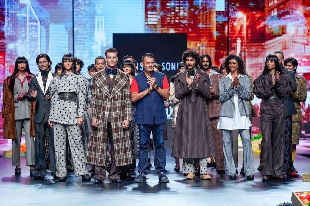 Think disco, bell bottoms, Manhattans Studio 54 and Ashish Sonis play with the oversized, androgynous look -strong shoulders and suiting materials as his forte tailoring, takes centerstage. By Asmita Aggarwal
