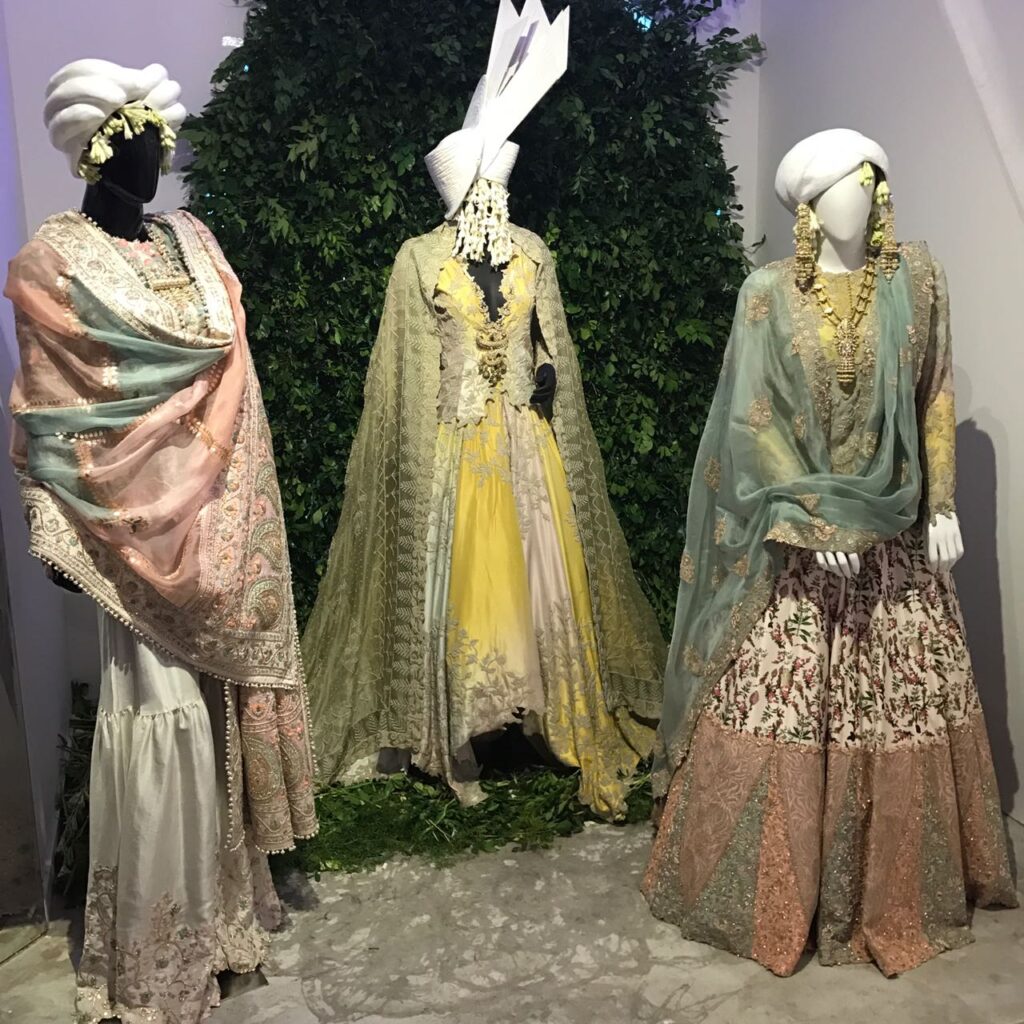 Reynu Tandon kept it rather traditional and stuck to cholis and pearl chokers as gotta-patti peacocks indulged a rain dance on Chanderi lehengas By Asmita Aggarwal