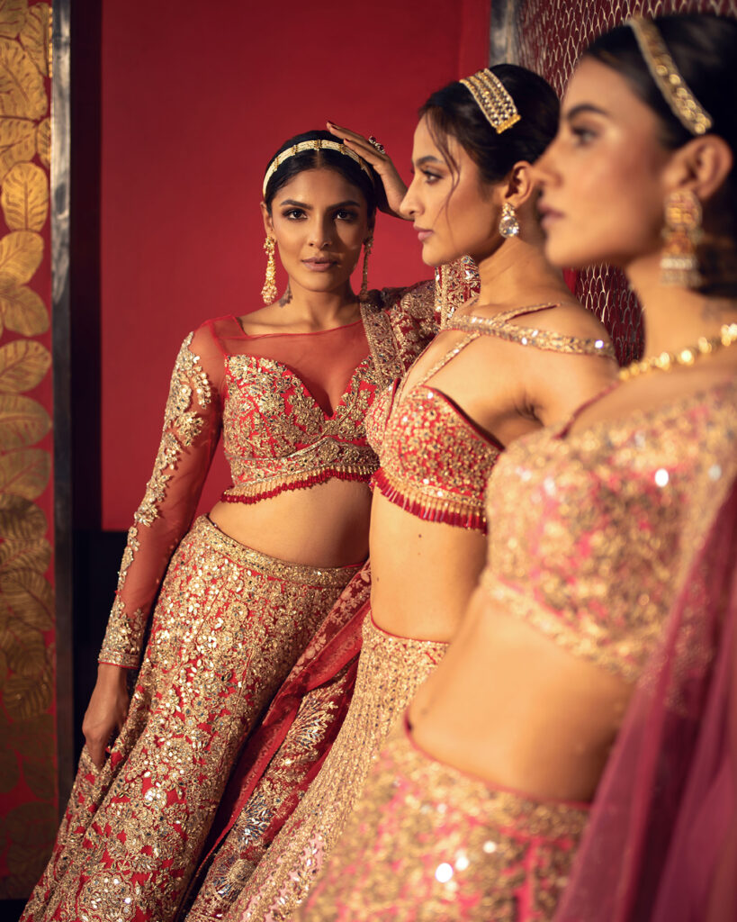 Suneet Varmas couture straddles two diverse worlds- the conventional where you want floral embroideries soaked in colour and the modern where you wear your long skirt with an off shoulder blouse By Asmita Aggarwal