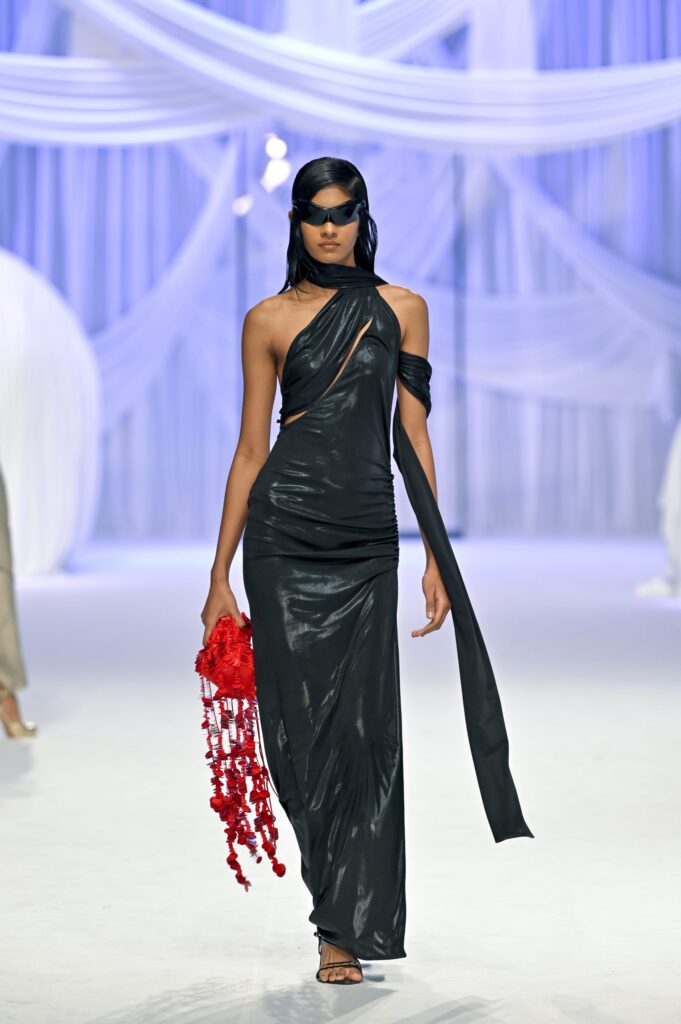 From jersey to satin Shweta Kapoors saris tell us you can walk the talk with this slithering drape, as she adds an 80s touch to it, this season. By Asmita Aggarwal
