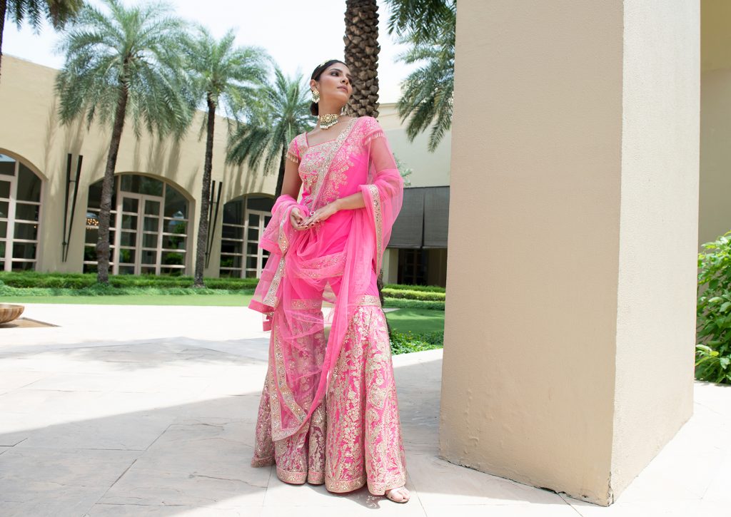 Baby pink shararas, scalloped backs, and shaded embroideries, may see a fleeting appearance but what has been the biggest trend this year is the brides desire to abandon the heavy double dupatta (one to sit on her shoulder and the other to cover her head) and instead opt for the much lighter and convenient veil as well as the long embroidered trail that reminds you of the glamour of Priyanka Chopras palace wedding.