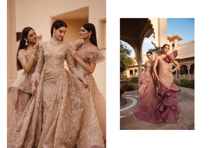 Fairy tales he believes still exist and remain an eternal favourite theme, but what has altered is additions and subtractions to the existing gown. We now give the option to change your gown or lehenga into a simpler outfit by offering detachable bustles. Many may disagree, but I really believe in the next ten years, long trails will be the big thing, which is also what I have done this year, he concludes.