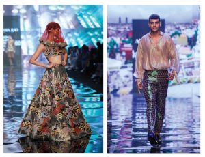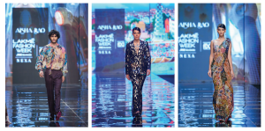 The 22 looks she showcased at the FDCIXLFW titled Trencadis represents Catalan modernism, chips of discarded ceramic plates, tiles that were used to enliven buildings. She observed how each structure the famed visionary Antoni Gaudi made was leaning literally and metaphorically towards nature, where nothing is linear. Nothing is art if it doesnt come from nature, Gaudi famously said, which mirrored Rao’s thoughts. We have translated these arches in buildings, ribs used as staircases, curves in the corridors, bends and mends in nature into our festive collection, the vibe is Spanish, to be specific Catalonian. The prints of the plates, motifs and colour which has been the essence of the brand, capture the chasmic mood of the place, she explains.