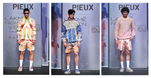 Pieux or pure in French is his attempt to appeal to a global audience, a brand launched in 2021 October, with sustainability at its core. Circular in nature and eco-friendly in ethos, upcycled and recycled materials are used—-plastic bottles, cotton, carpet waste to craft bags, footwear and garments. I learnt pattern making and stitching in college and really found it tough— I thought maybe I was not cut out for this field. Today, I value that experience as I know what it takes to make a garment from ground zero, says Pratyush.